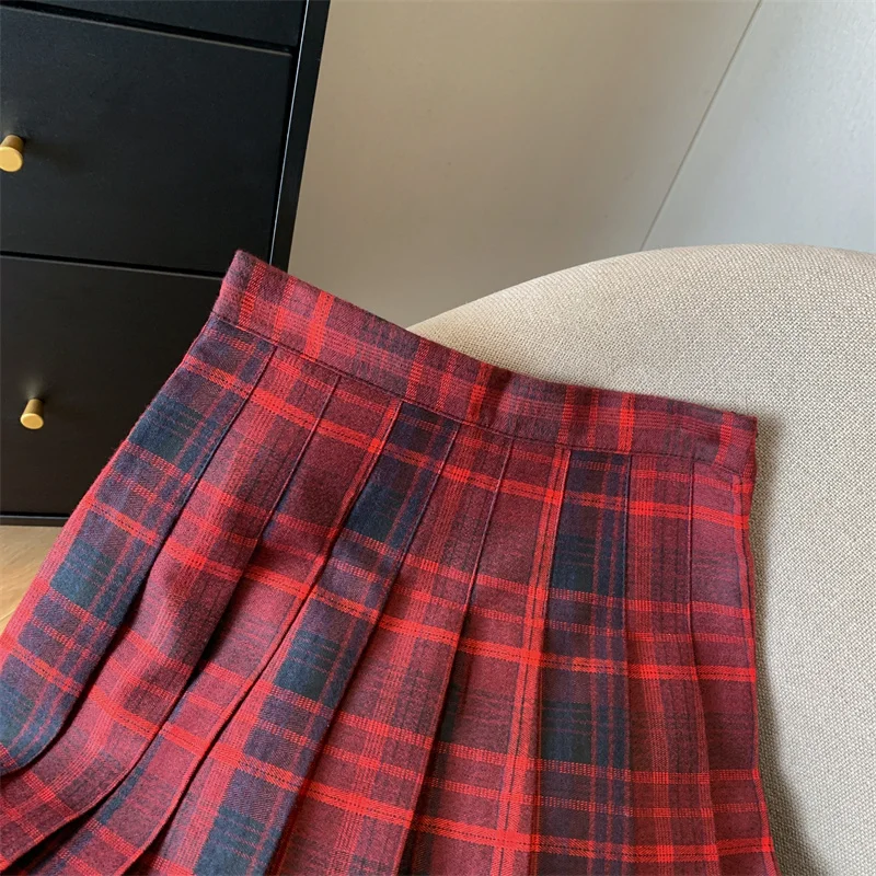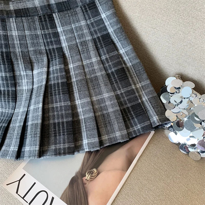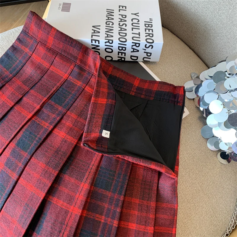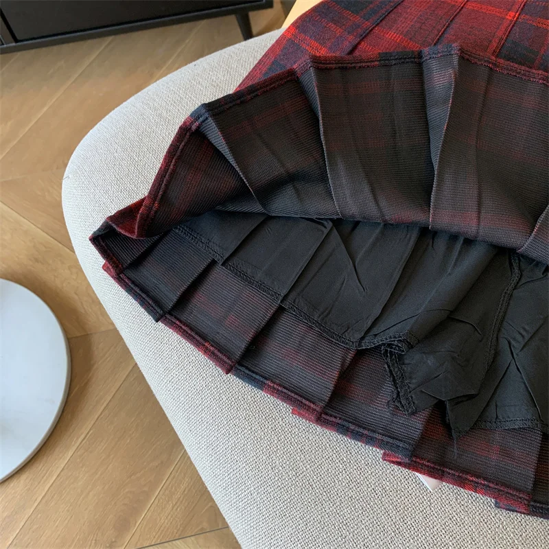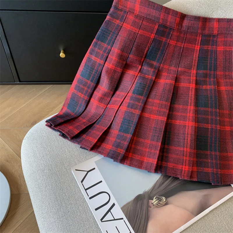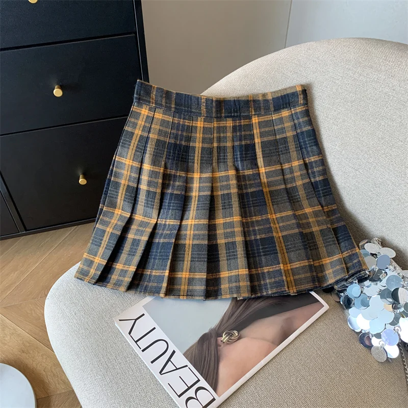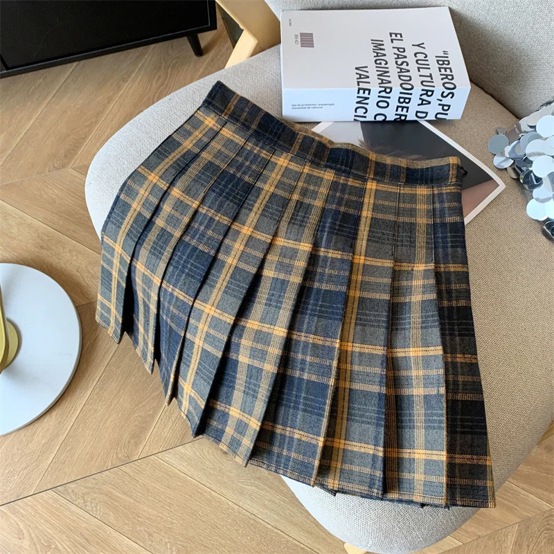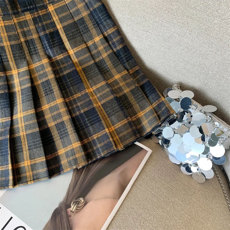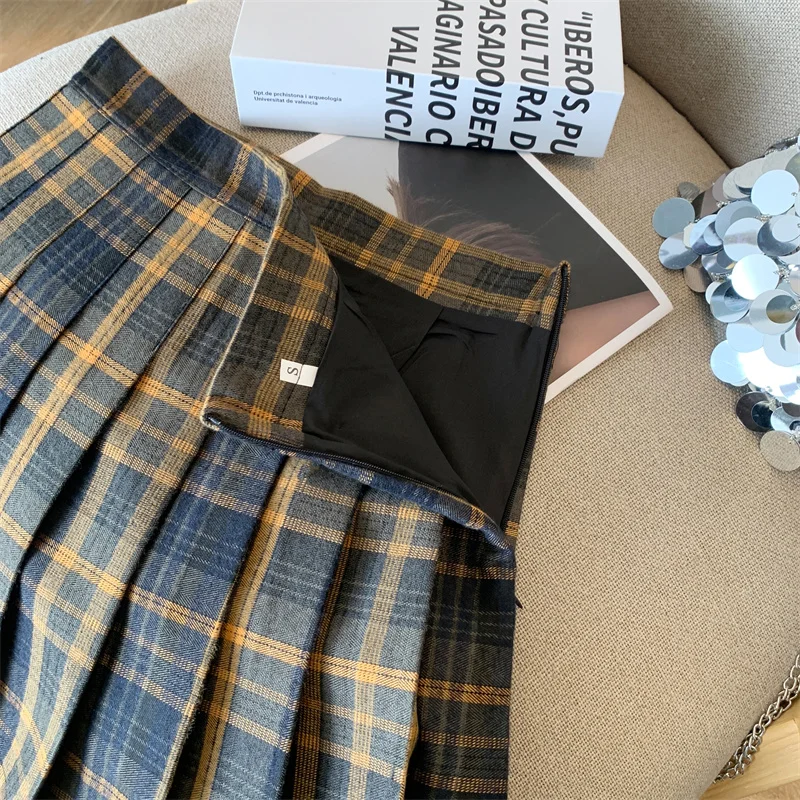 2024 New Women Fashion Vintage Academy Style Plaid Patchwork Pleated Short Skirt Sweet A-line High Waist Mini Skirts Versatile