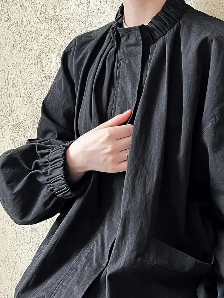 L Length: 63 Bust: 150 Shoulder: 62 Sleeve: 56 Hem: 112-136