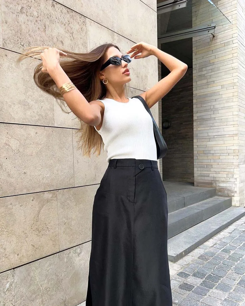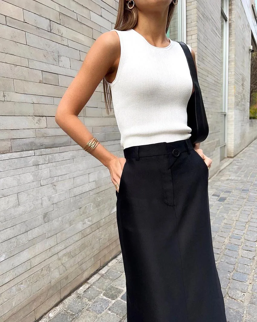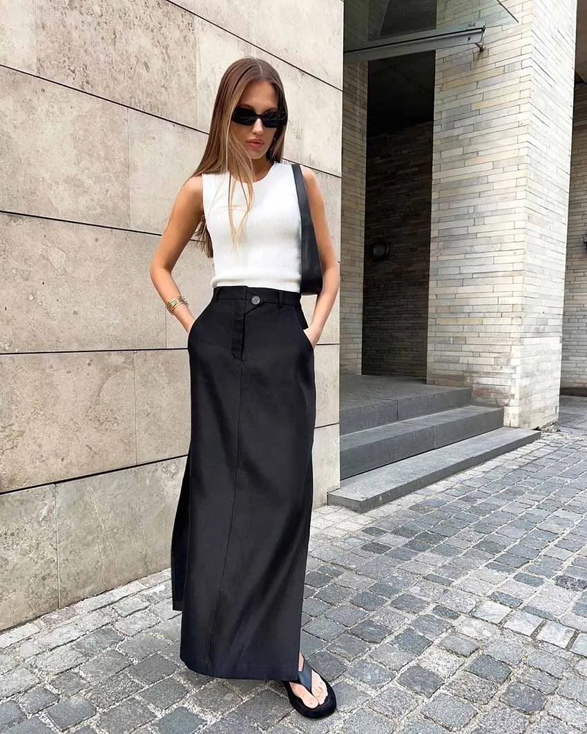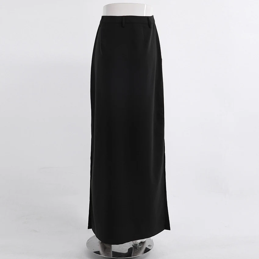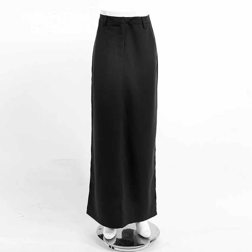Black Loose Long Skirts Women A-Line Zip Skirts Ladies Elegant Summer Skirts Female With Pocket Ankle-Length Skirts