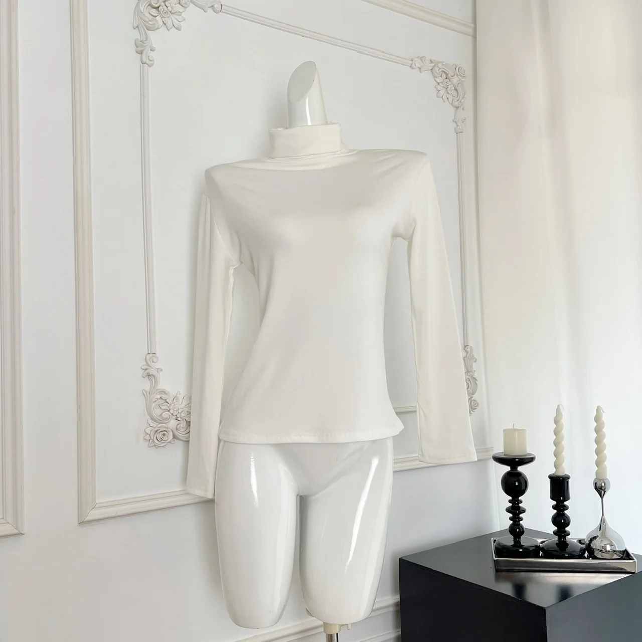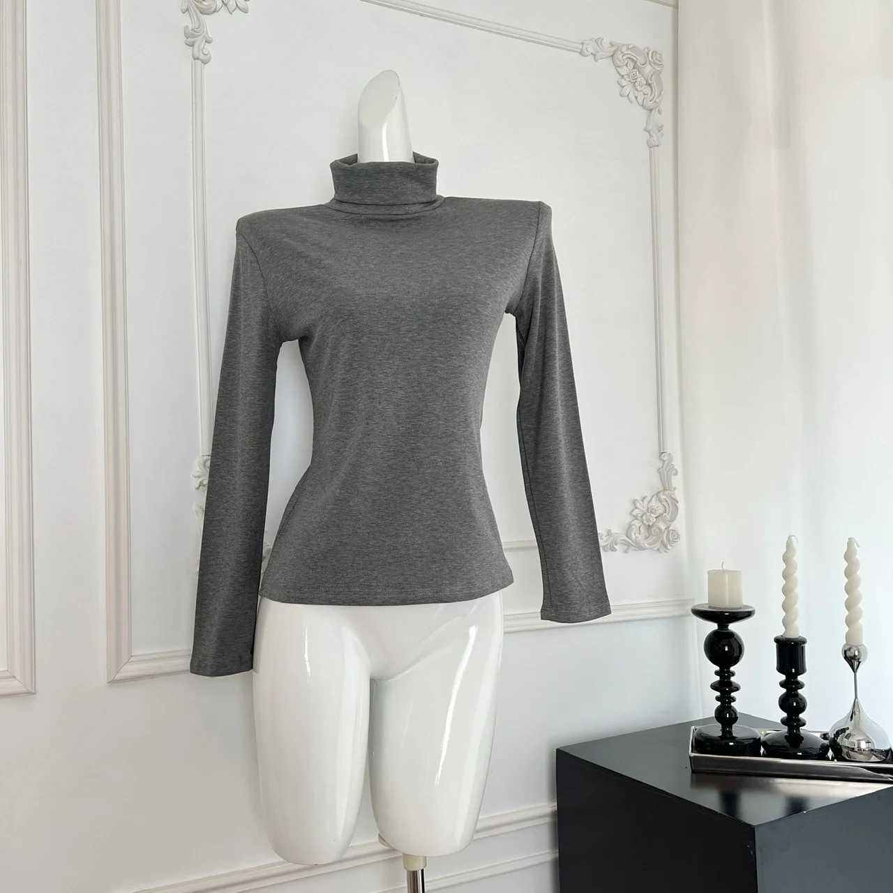 Black White Elegant Velvet Sweater Women Grey High Neck Long Sleeve Basic Knit Tops 2024 Autumn Winter Simplicity Versatile Chic