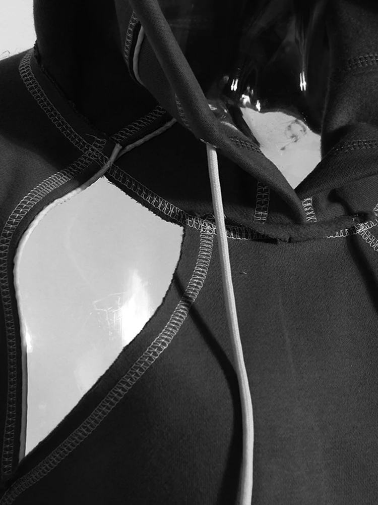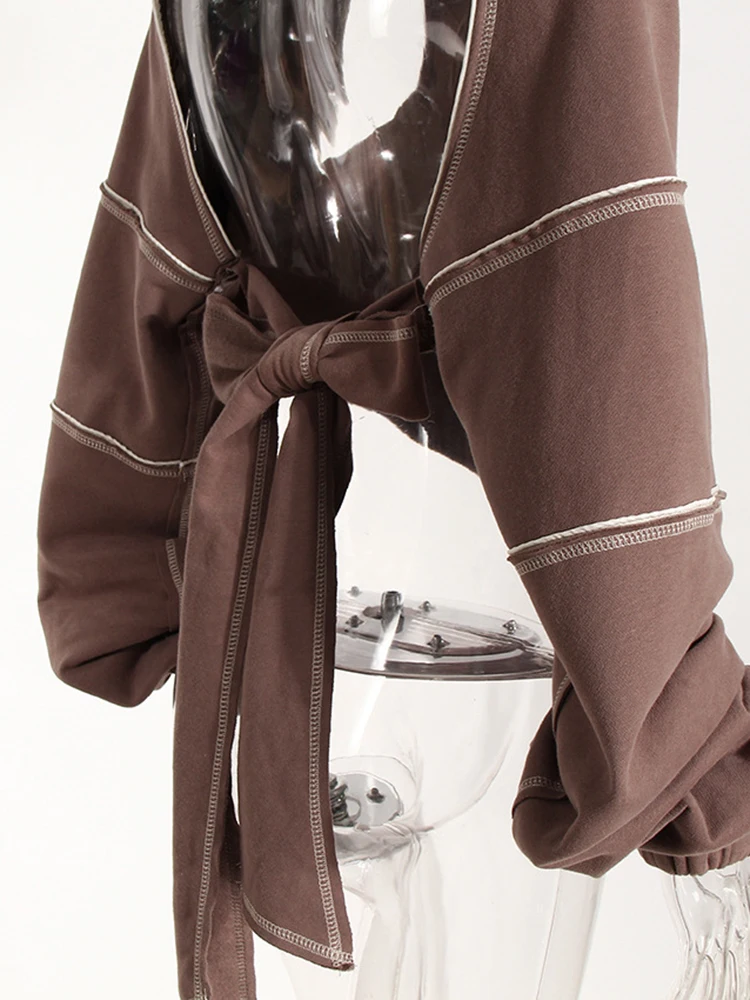 Brown Back Bow Irregular Cut-out Sweatshirt New Hooded Long Sleeve Women Big Size Fashion Tide Spring Autumn 2025 1DF1820