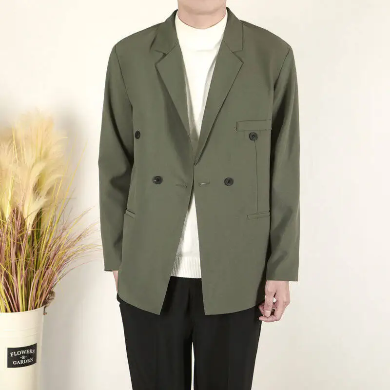 Business Casual Men's Suit Jackets Double Breasted Korean Style Menswear Loose Solid Color New Male Blazers Spring 9W1227