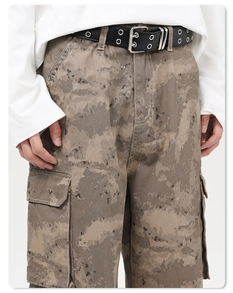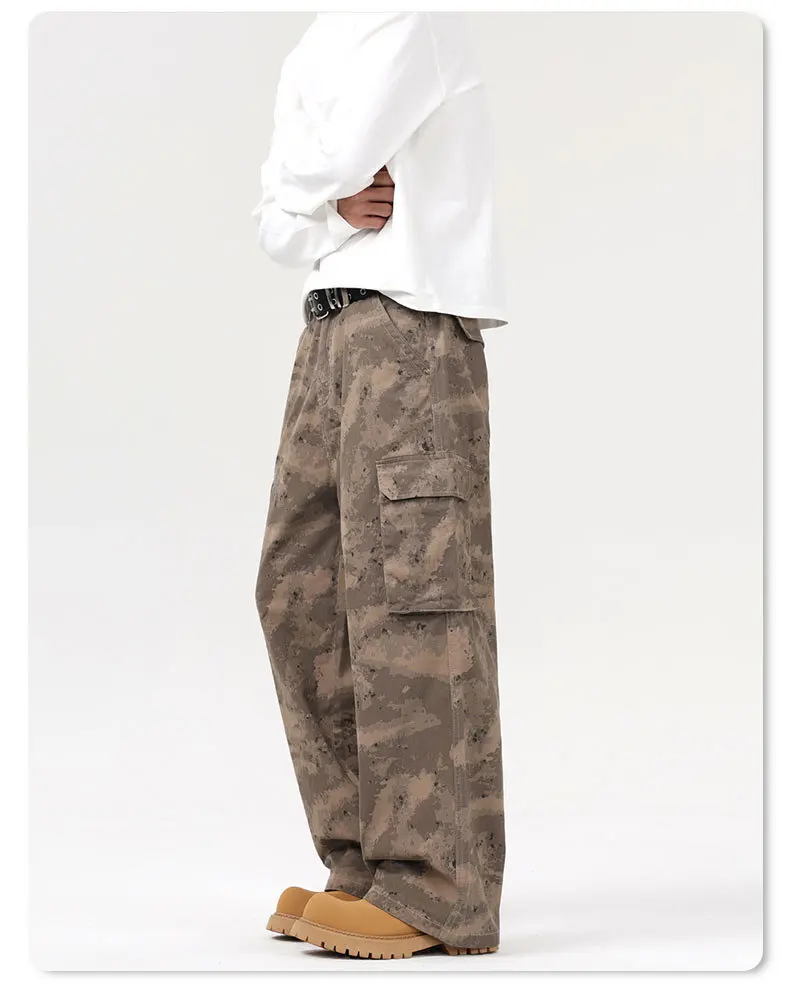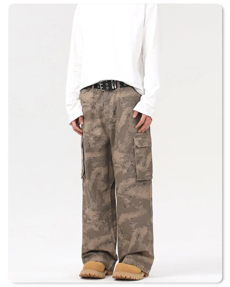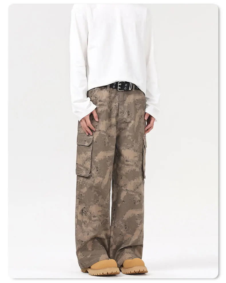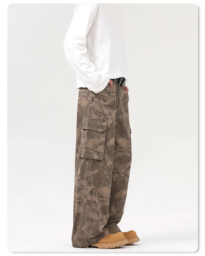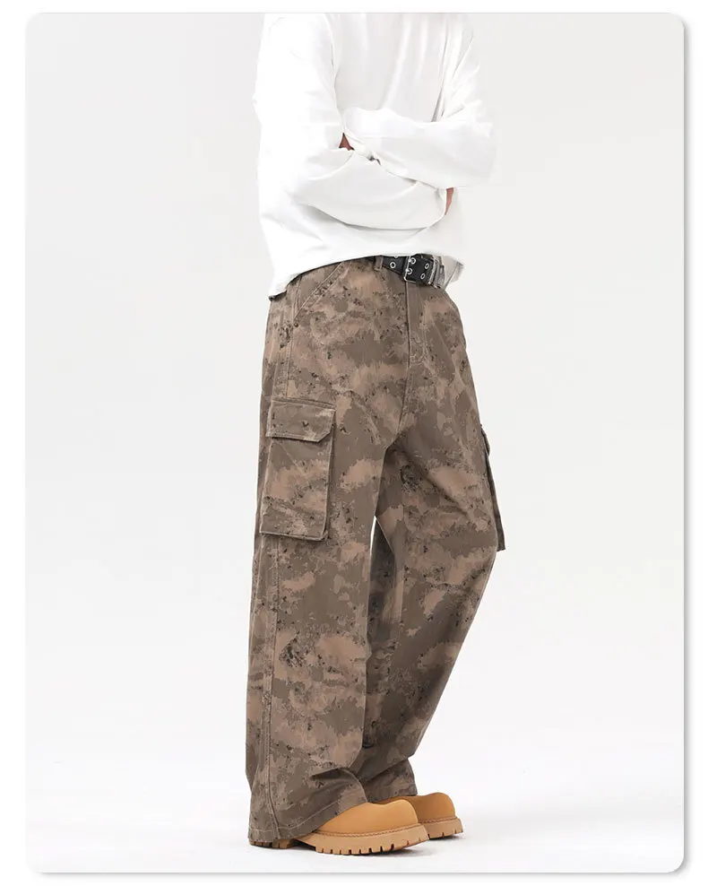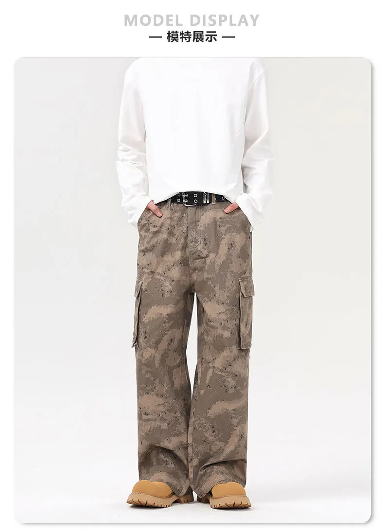 Camouflage Men's Jeans New American Baggy Straight Male Trousers Multi Pockets Cargo Denim Pants Summer Botooms 2025 9W1559