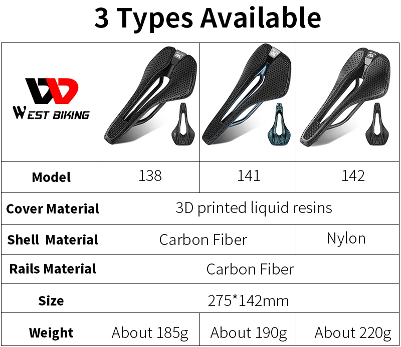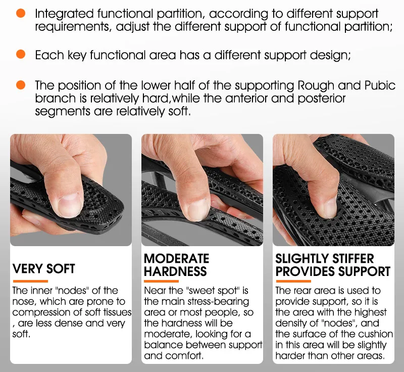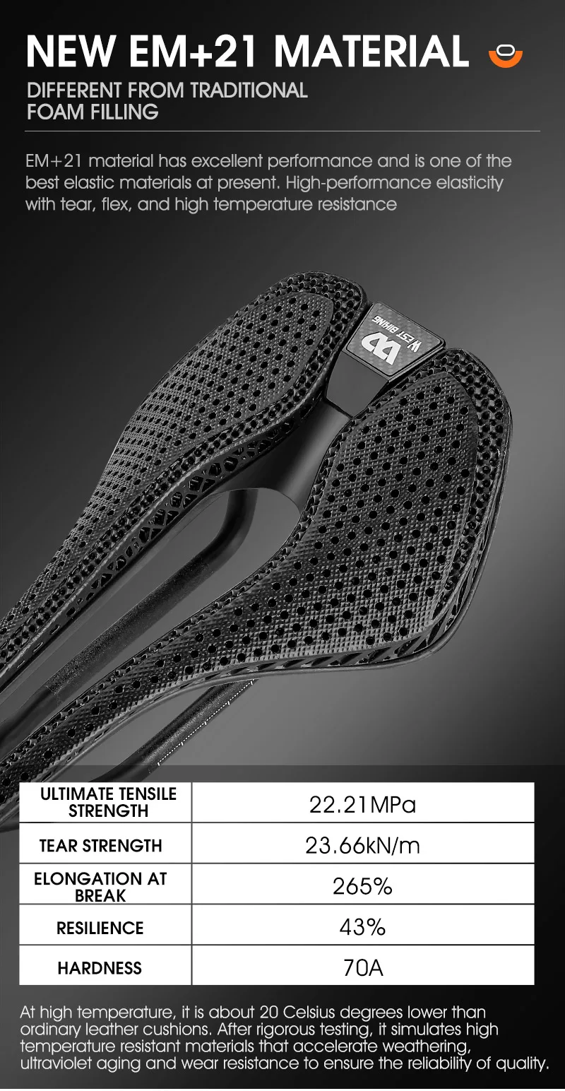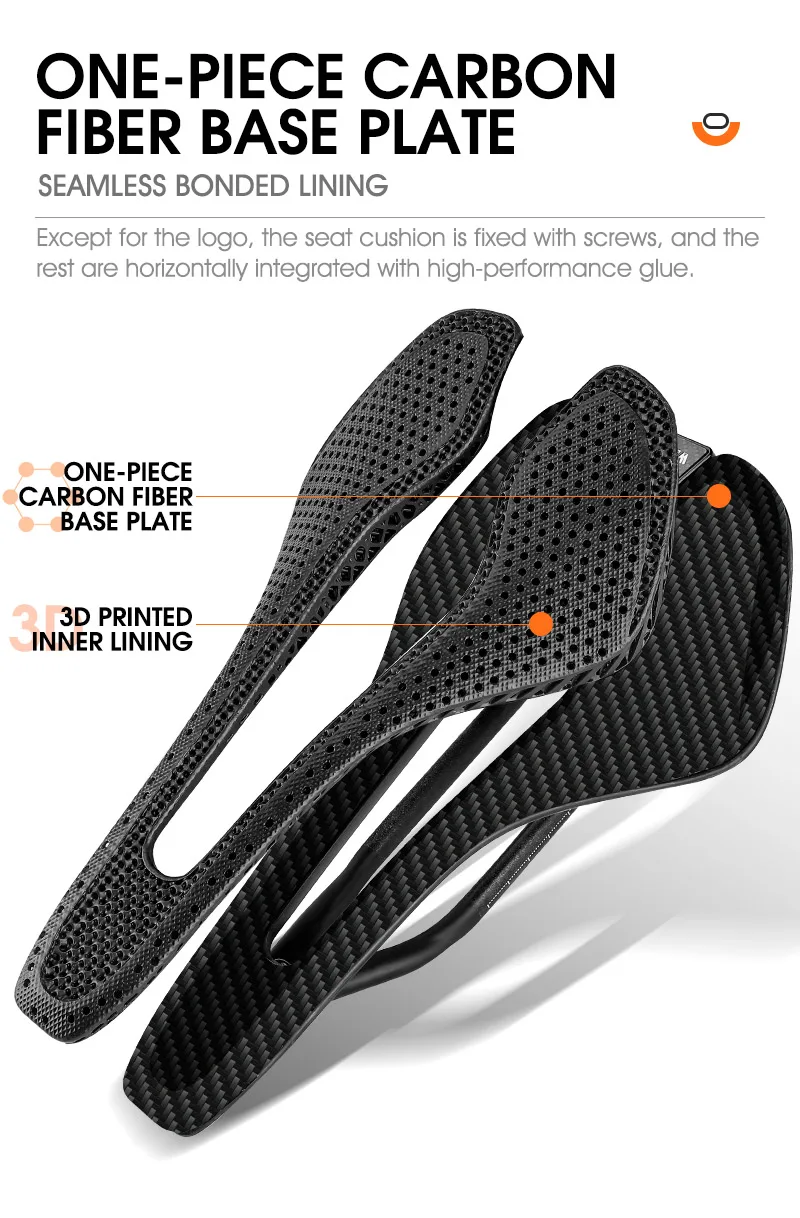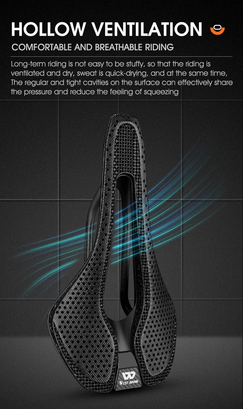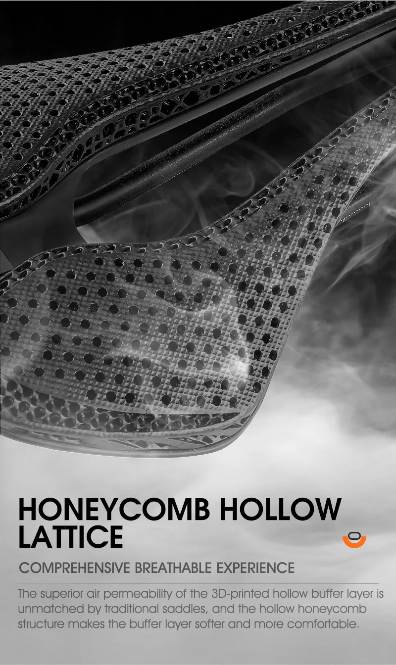 Exclusive patented 3D printing technology, Combined with ultra-light carbon fiber material, the weight is very light, almost no weight increase of the bike, so you can ride without additional burden. The design of zoned honeycomb shock absorption, gives you the most comfortable experience.