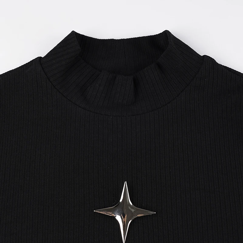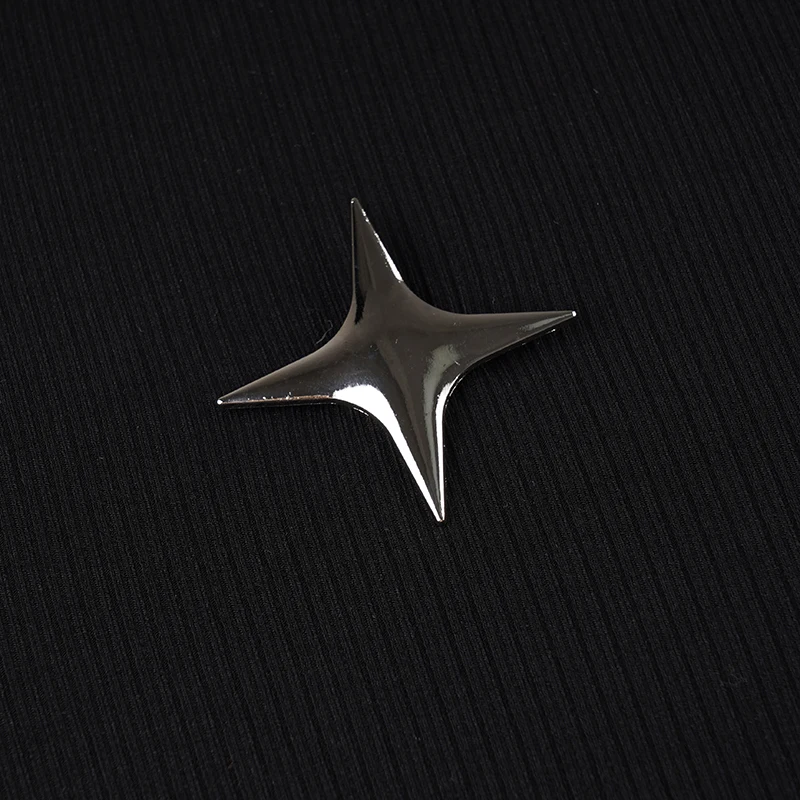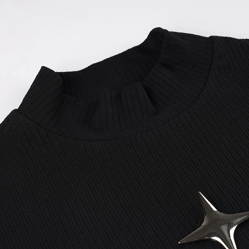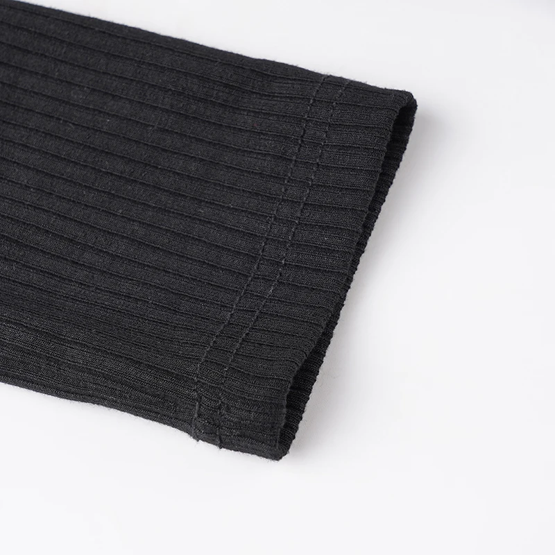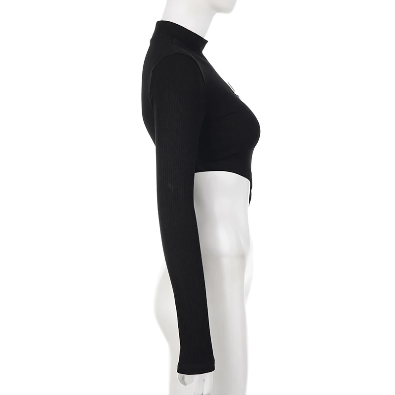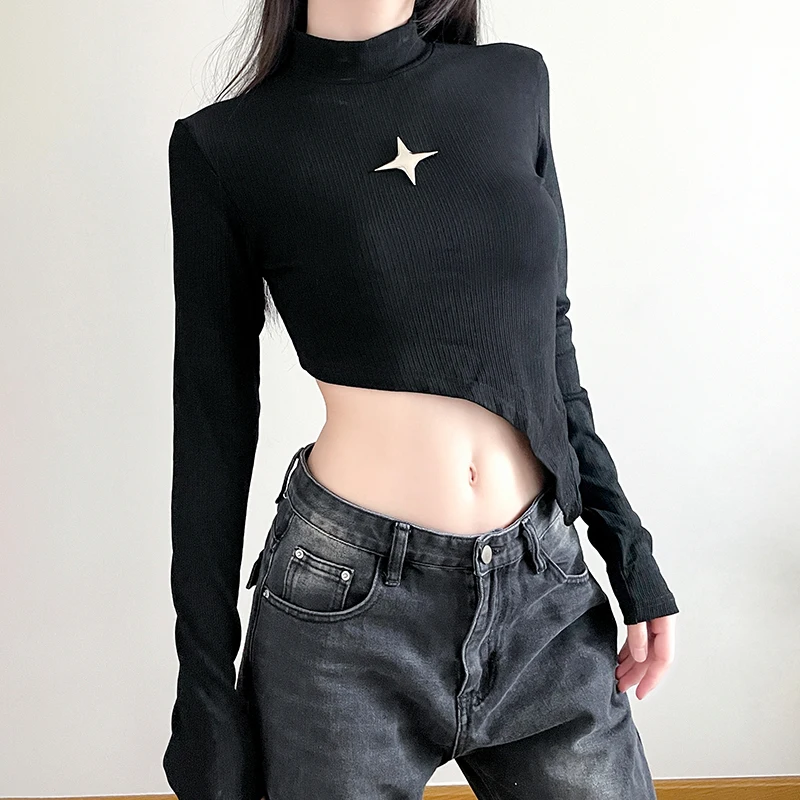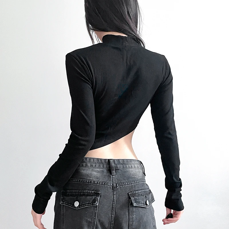 Casual Black Cotton Slim Women T-shirt Top Asymmetrical Long Sleeve Korean Tee Shirts Metal Basic Spring Autumn Shirt