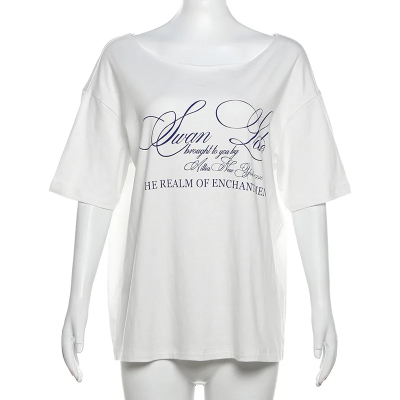 Casual Relax Woman T-shirt Letter 2025 Women Hot New Versatile Street Atmosphere Style Fashionable Chick Summertime Tops