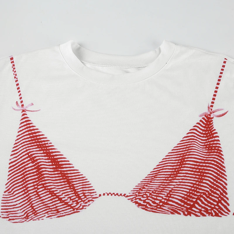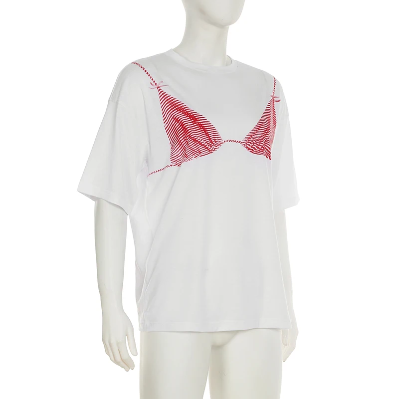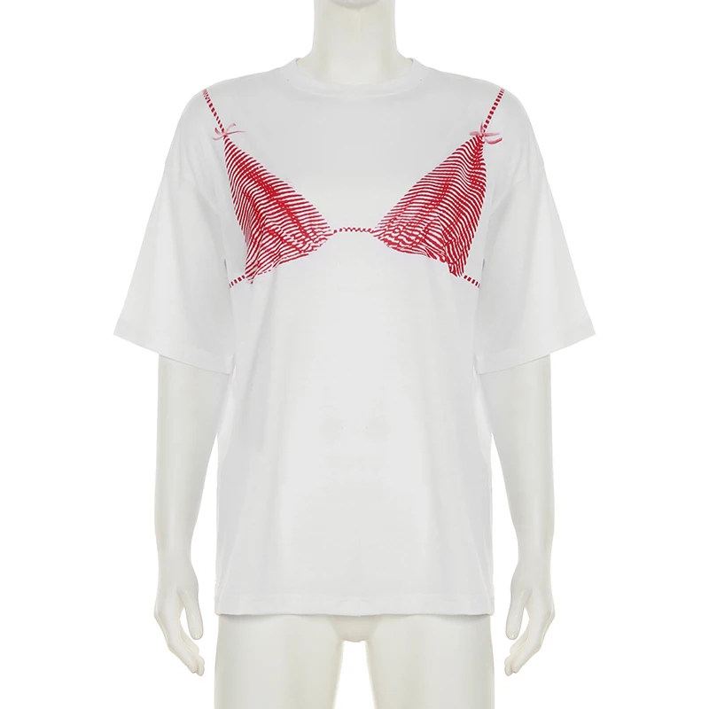 Casual Underwear Pattern Printed Short Sleeve T-shirts Women White Loose Round Neck Top Tees Summer All Match Clothes