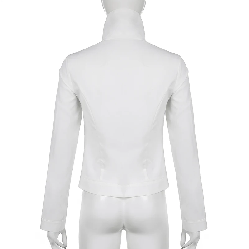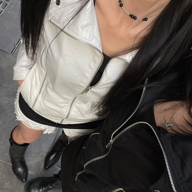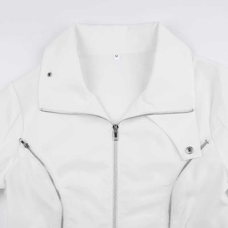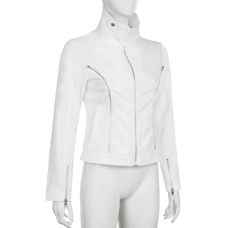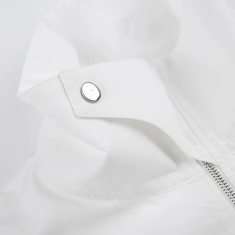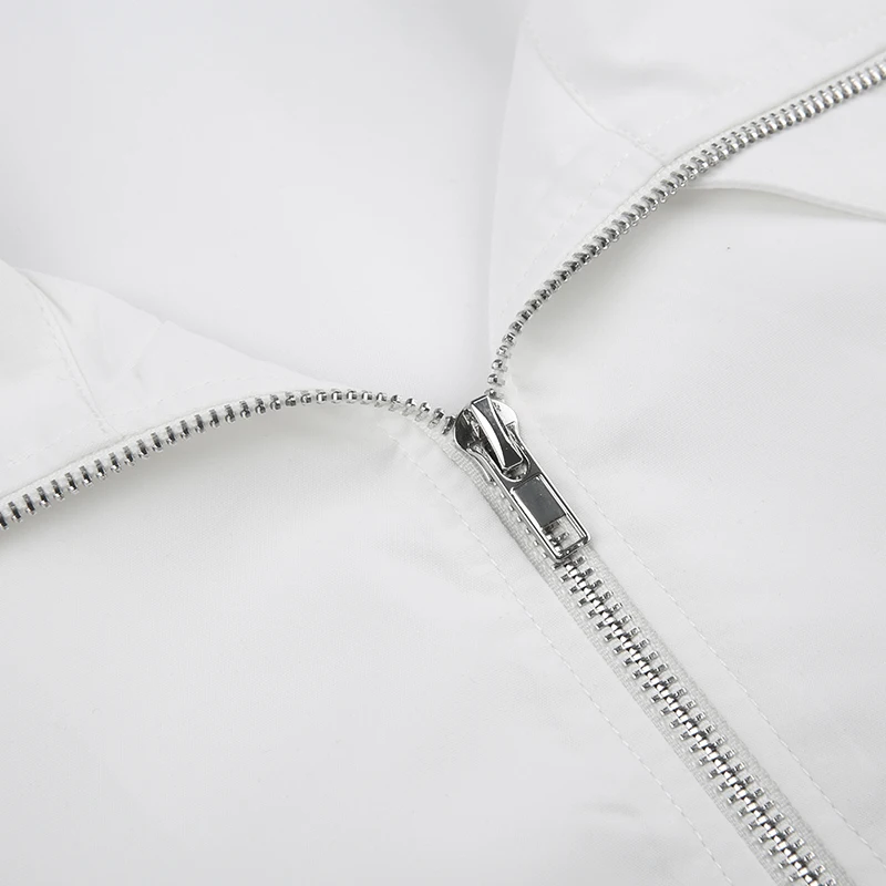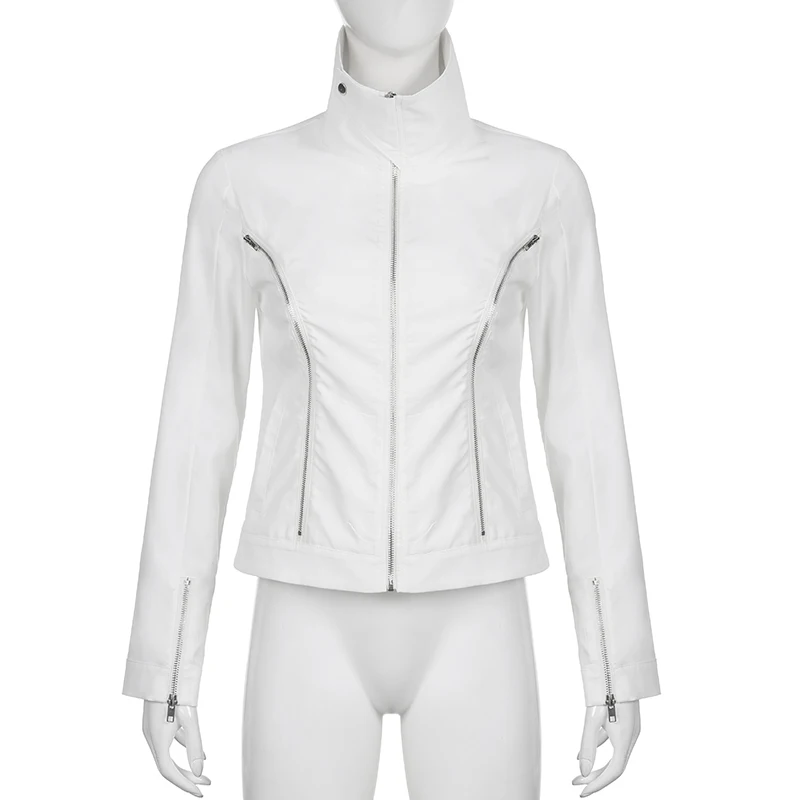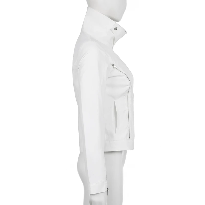 Casual White Basic Zipper Spring Autumn Women Jacket Coat Streetwear Korean Style Turn-Down Collar Jackets Outerwear