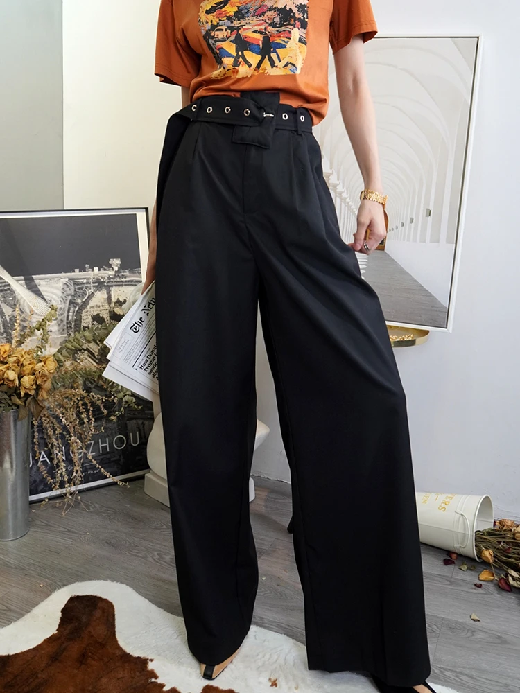Casual Wide Leg Pants For Women High Waist Solid Minimalist Streetwear Trousers Female Fashion Clothing Style