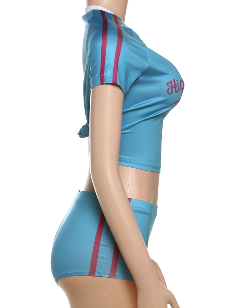 Cheerleadin 2Piece Set Women Tracksuit Y2K Letter Print Shorts Crop Tops+Shorts Casual Activity Sporty Streetwear Outfits