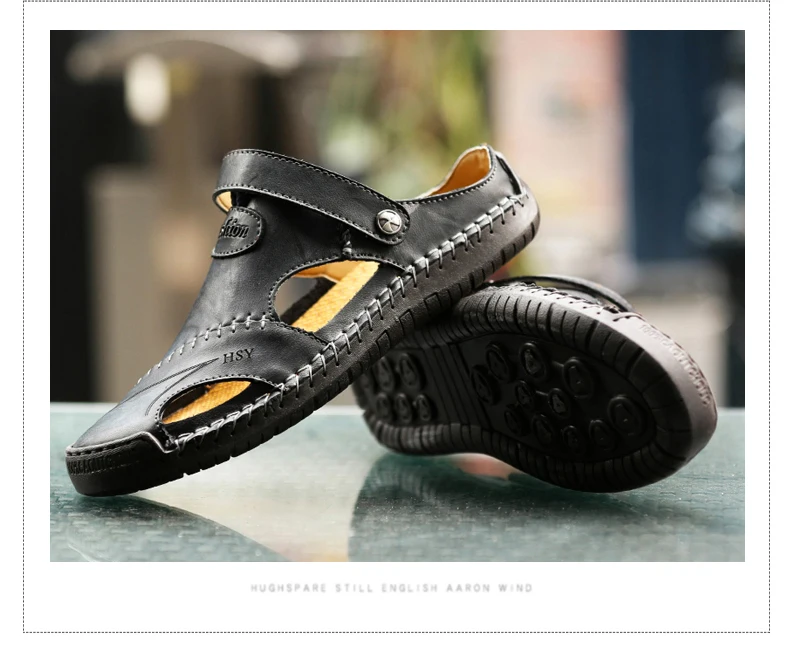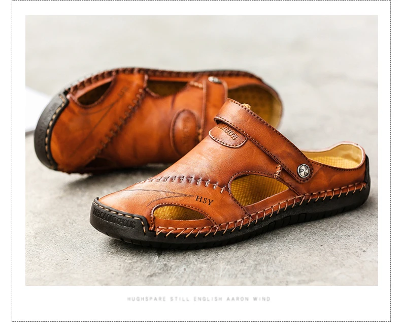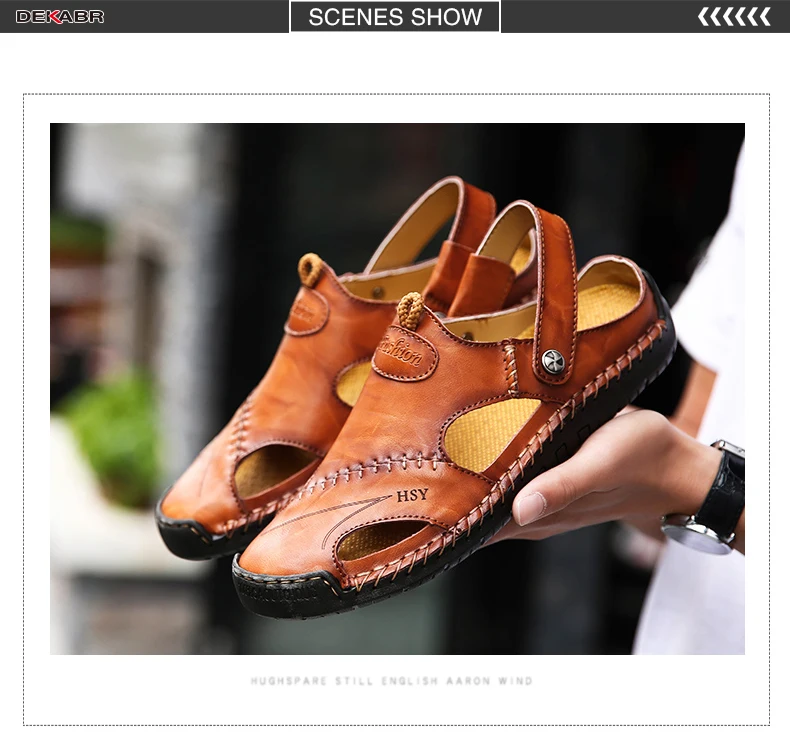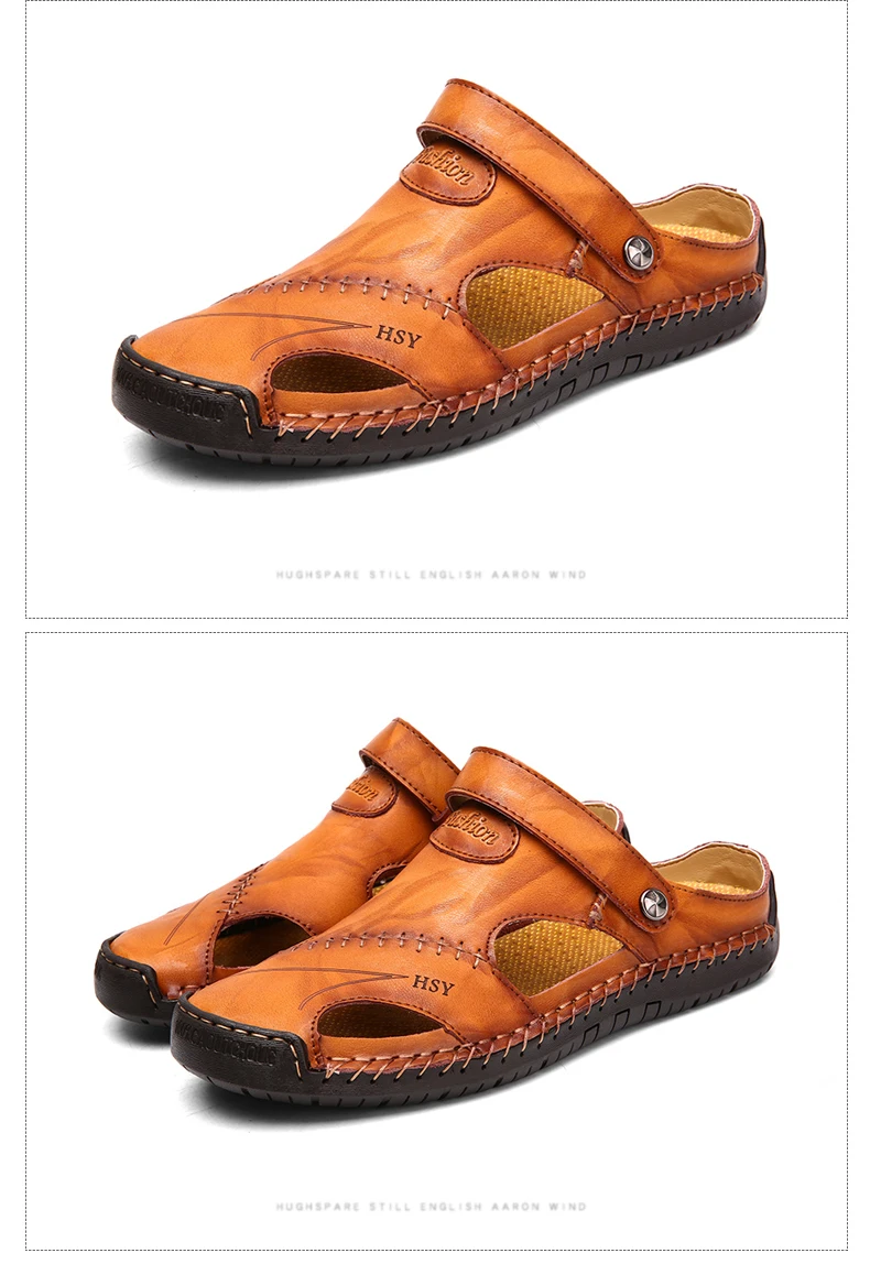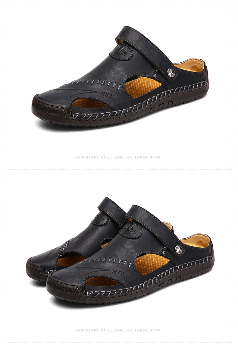 Classic Mens Sandals Summer Genuine Leather Male Beach Sandals Soft Comfortable Outdoor Beach Slippers Slip-ON Sandals