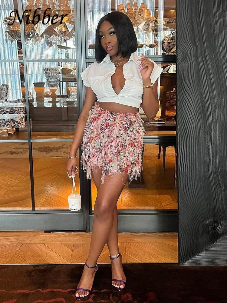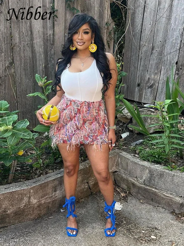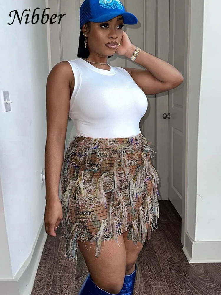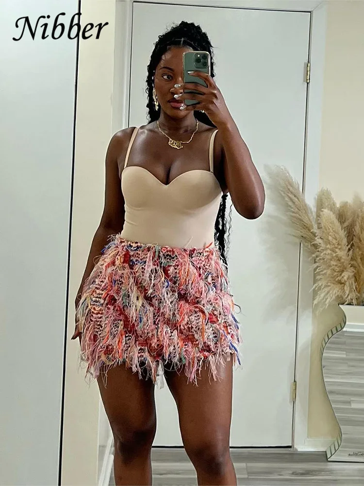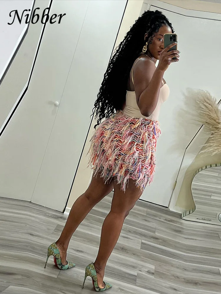 Colorful Tassel Skirts Peach Hip Women Thin Knit Wild Sexy Midnight Summer Trend Stretch Skinny Party Streetwear Bodycon