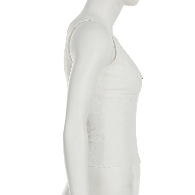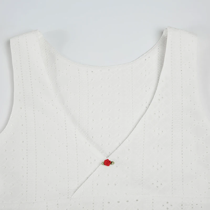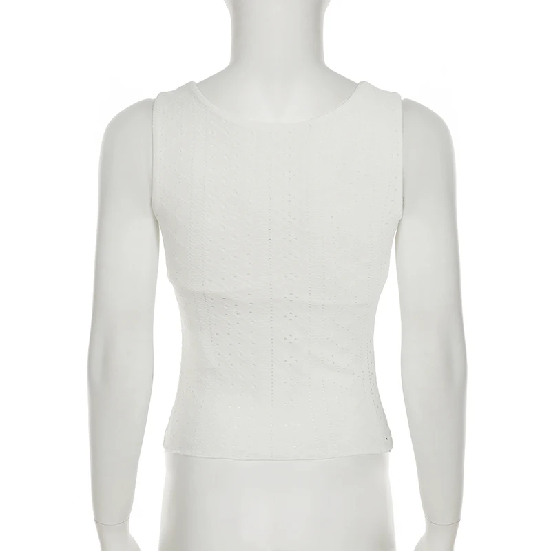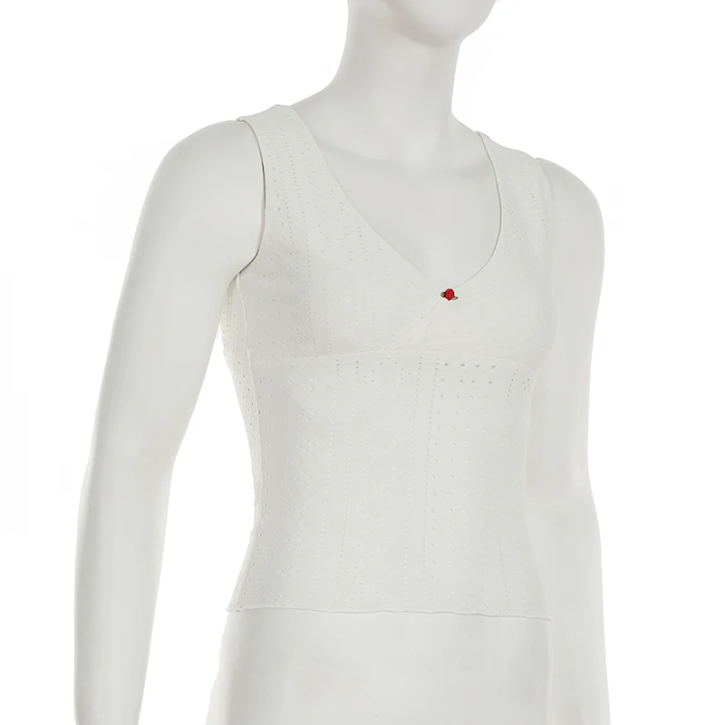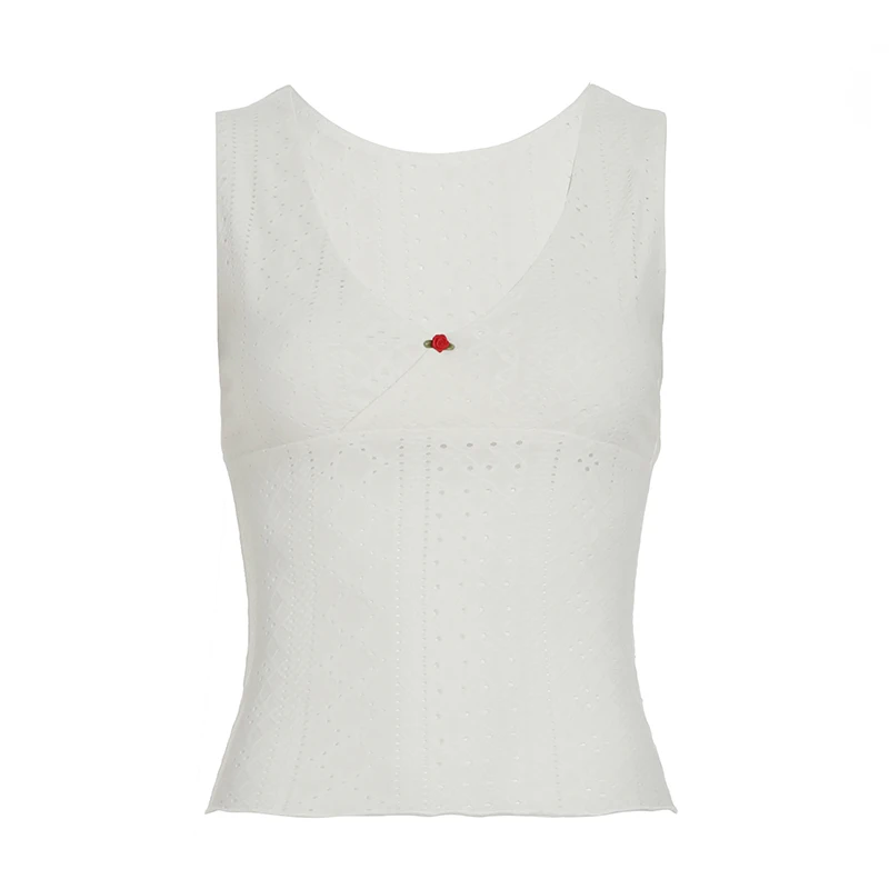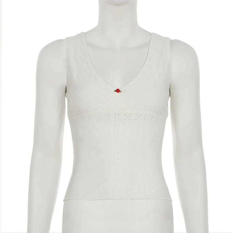 Cutecore Frill Trim With Appliques Mini Tank Tops Women Summer V-Neck Slimming Sexy Vest Chic Hollow Out Clothes New
