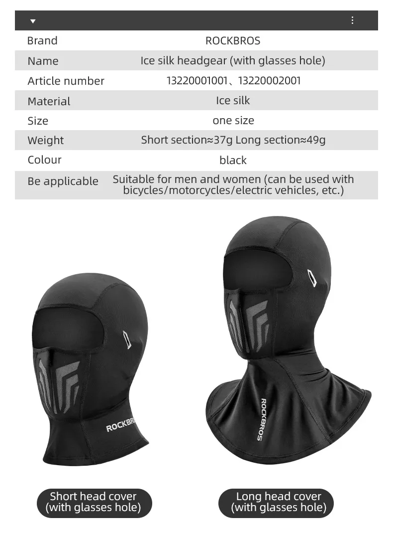 Name: lce silk headgear (with glasses hole)