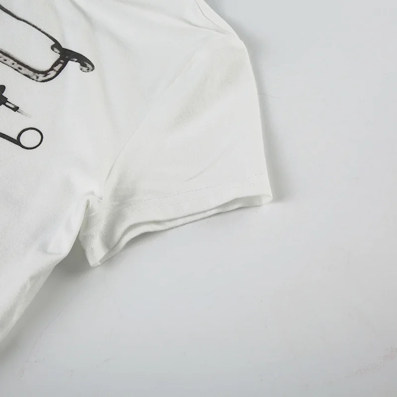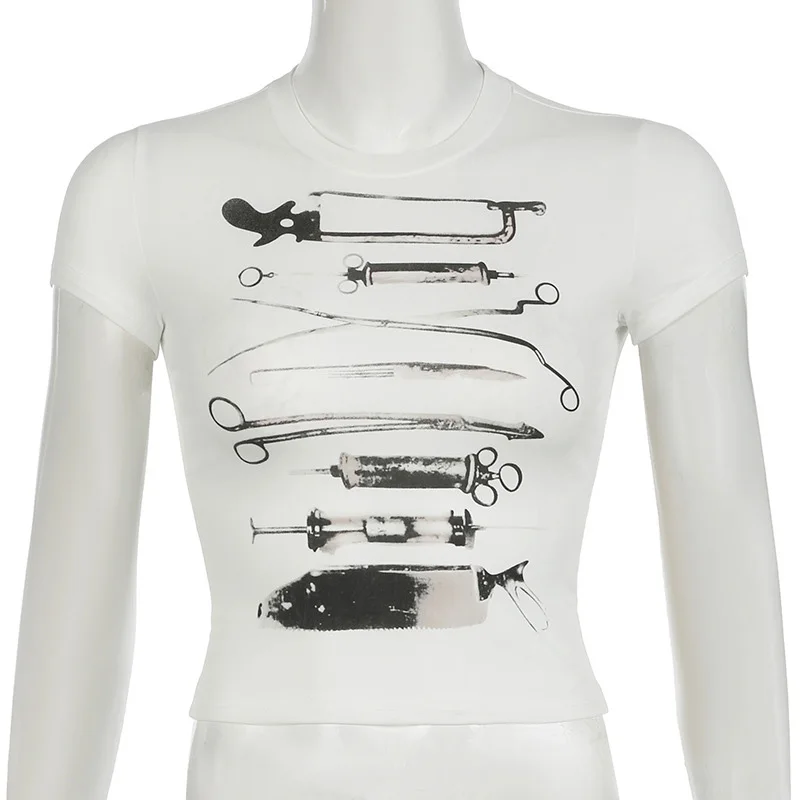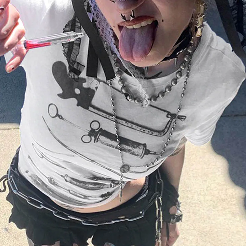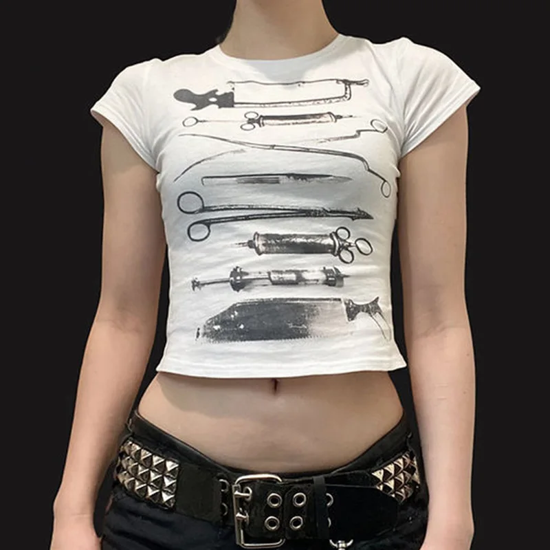 Dark Printed Cropped T Shiirt Gothic Casual Slim O-Neck Short Sleeve Tees Women 2024 Summer Fashion Streetwear Ladies