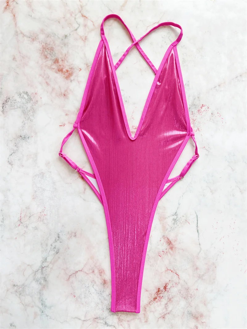 Deep V One Piece Swimsuit Women 2025 Sexy High Cut Swimwear Backless Bathing Suit for Women Thong Monokini