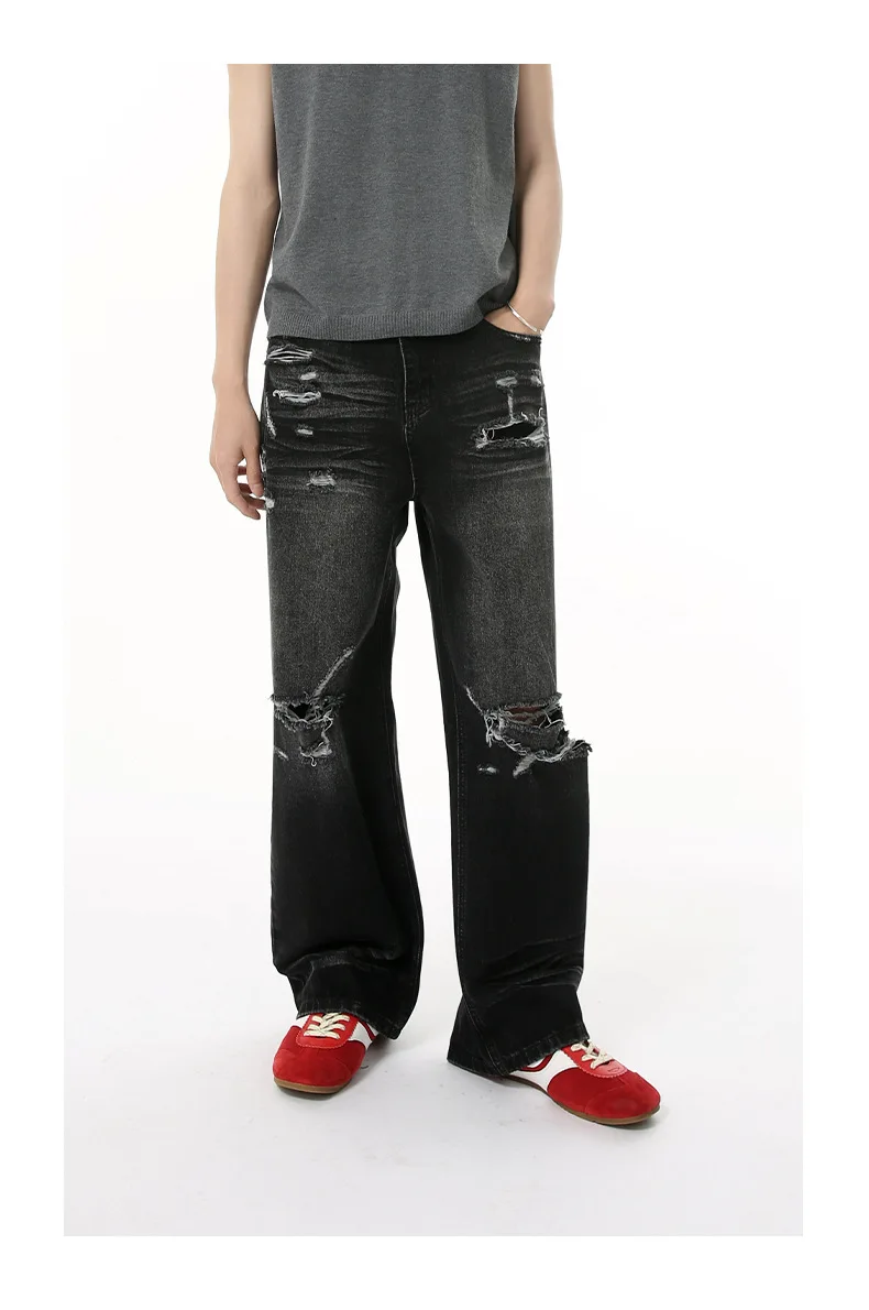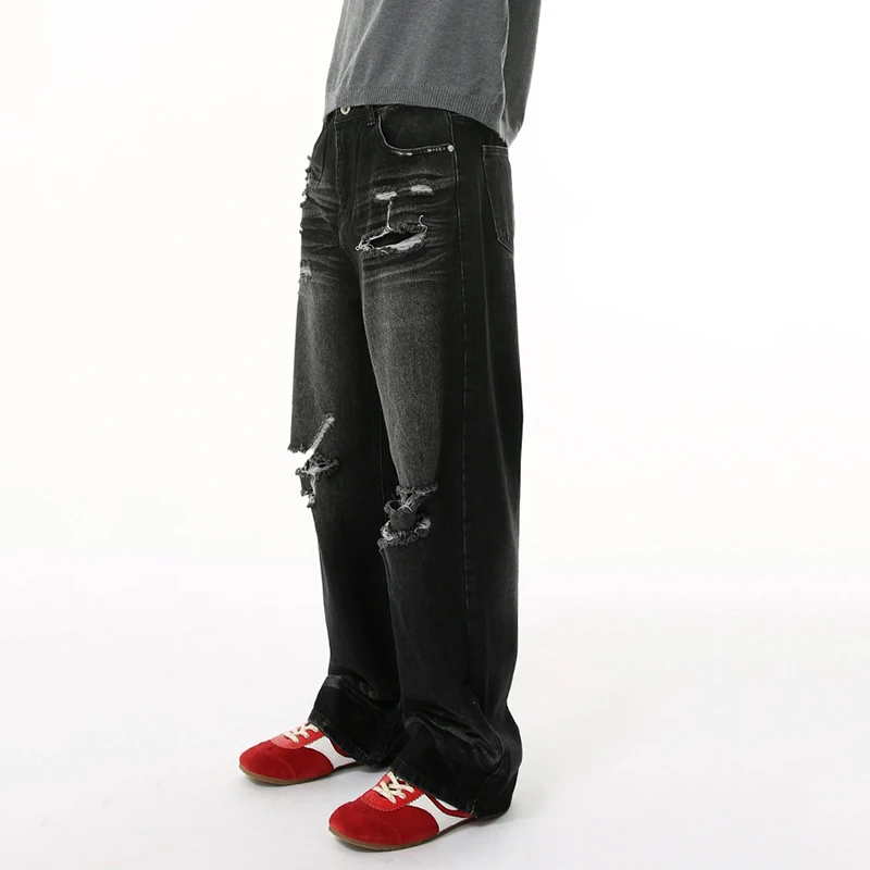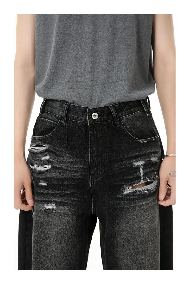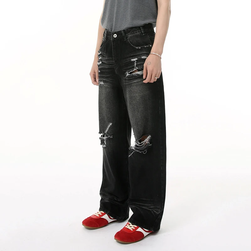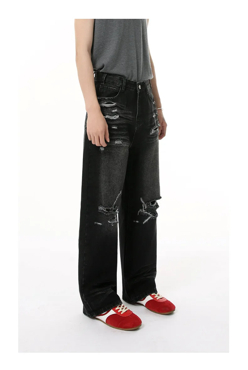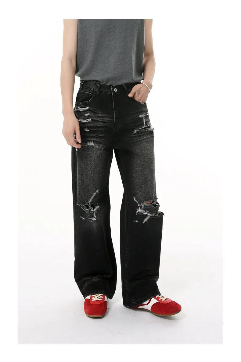 Distressed Men's Jeans New Summer American Style Hole Design Loose Denim Pants Casual Trendy Streetwear Trend 9W1690