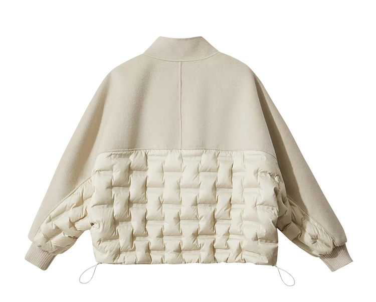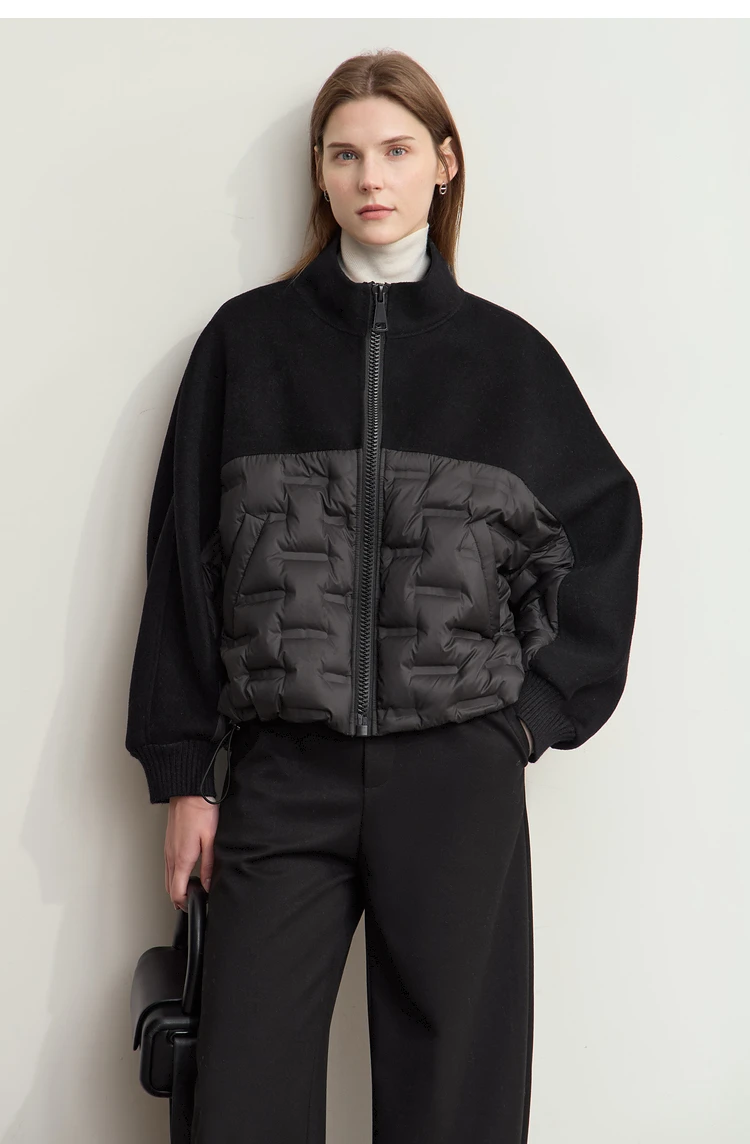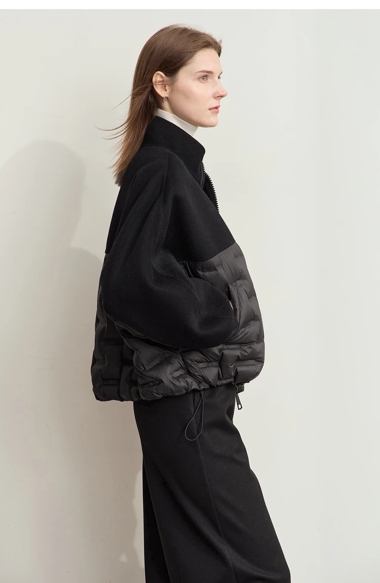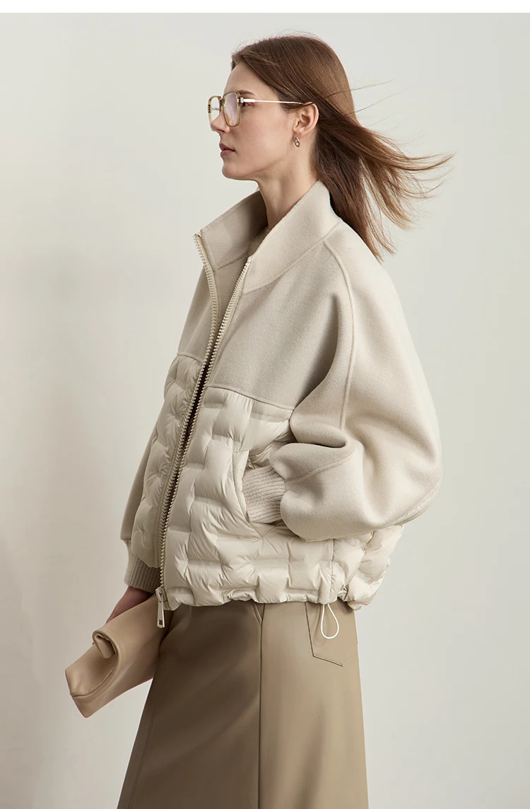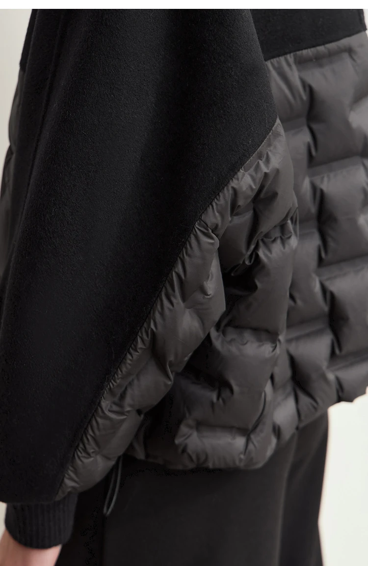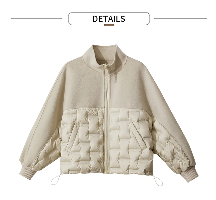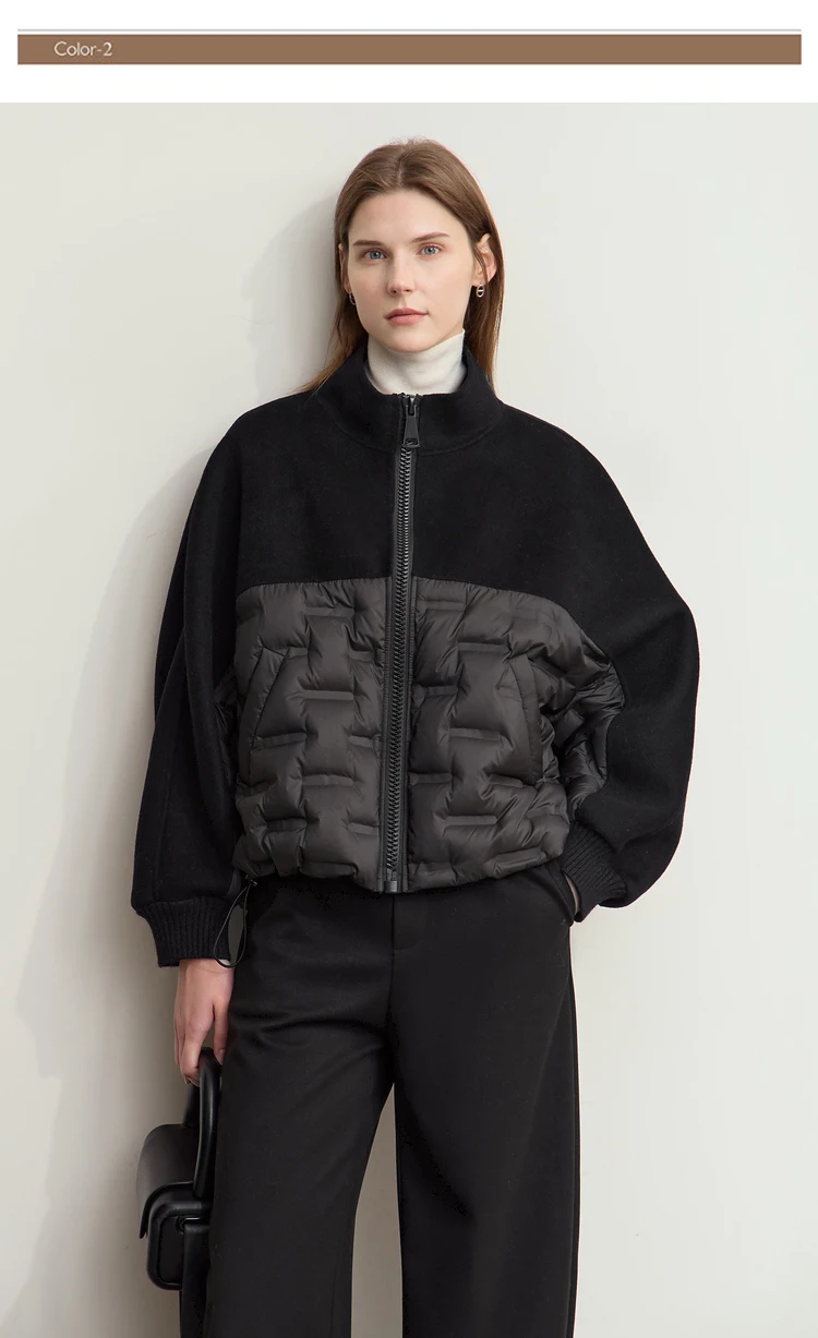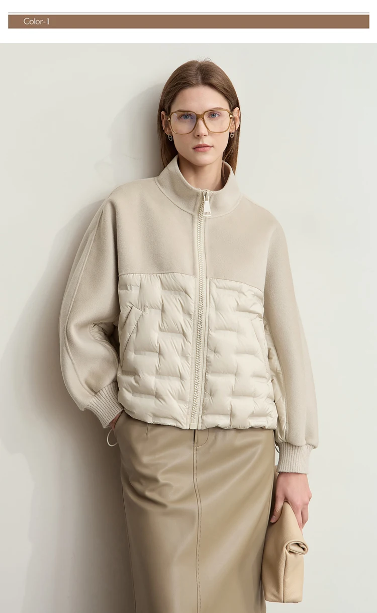 Down Coats 100% Wool Stand Collar Loose Spliced Jackets for Woman 2024 Winter Warm New Casual Versatile Jacket 12454007