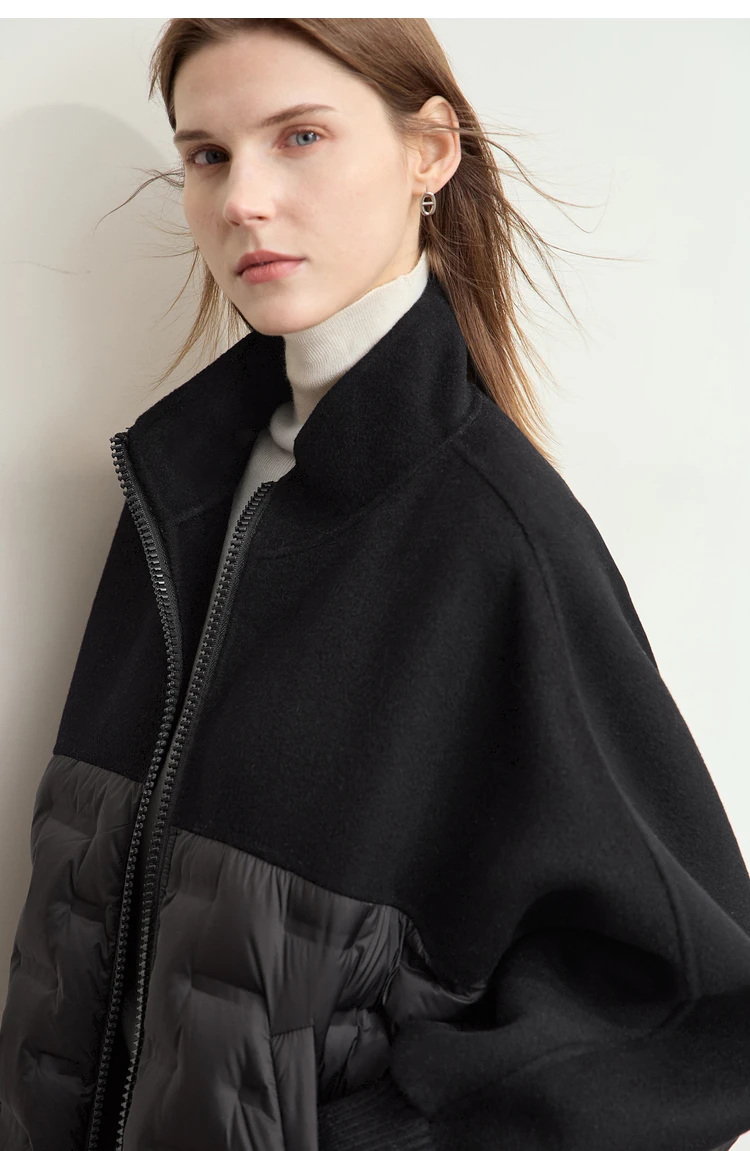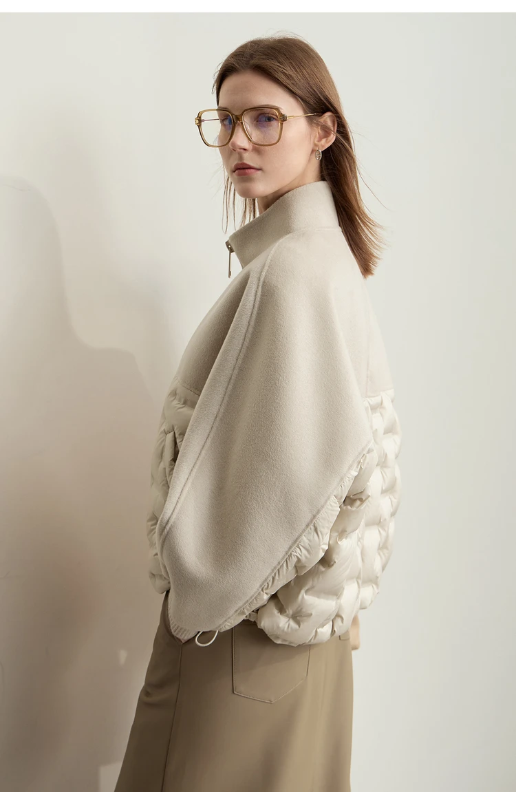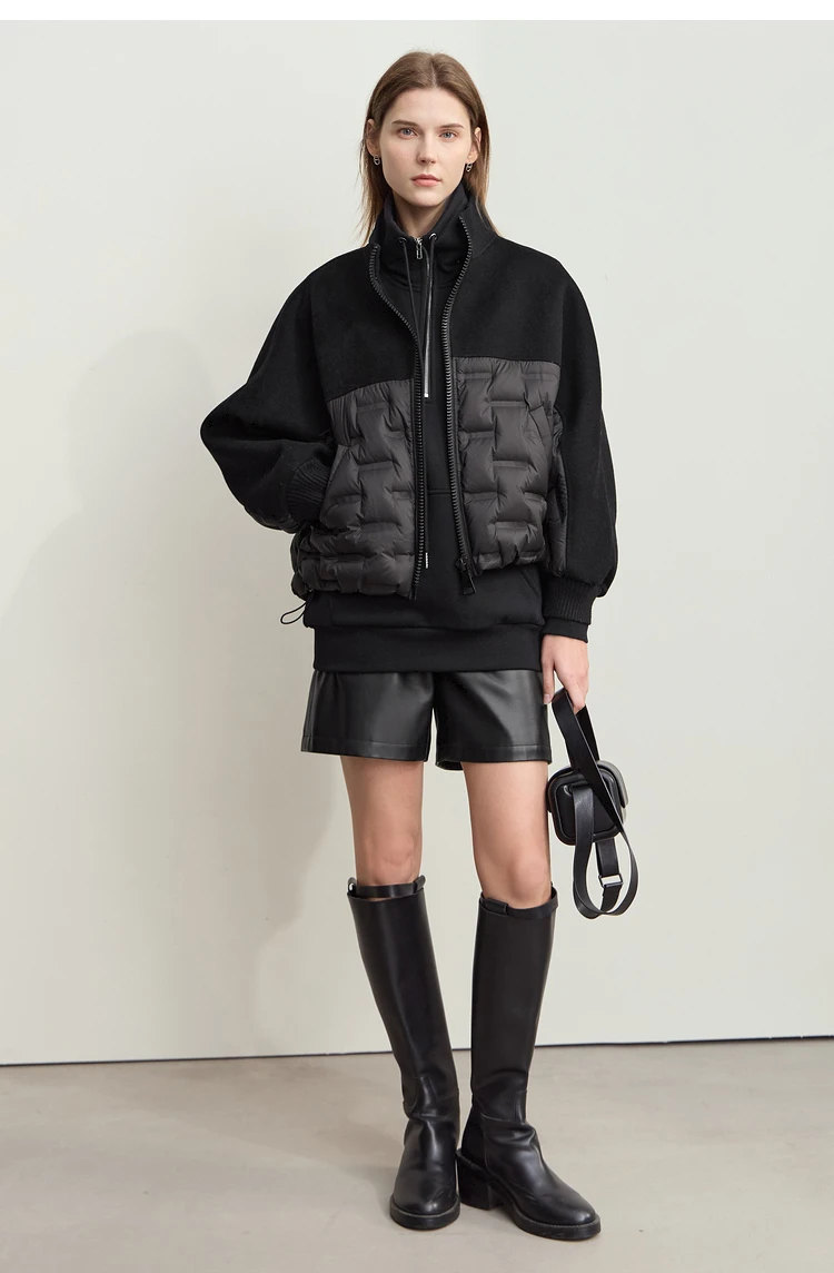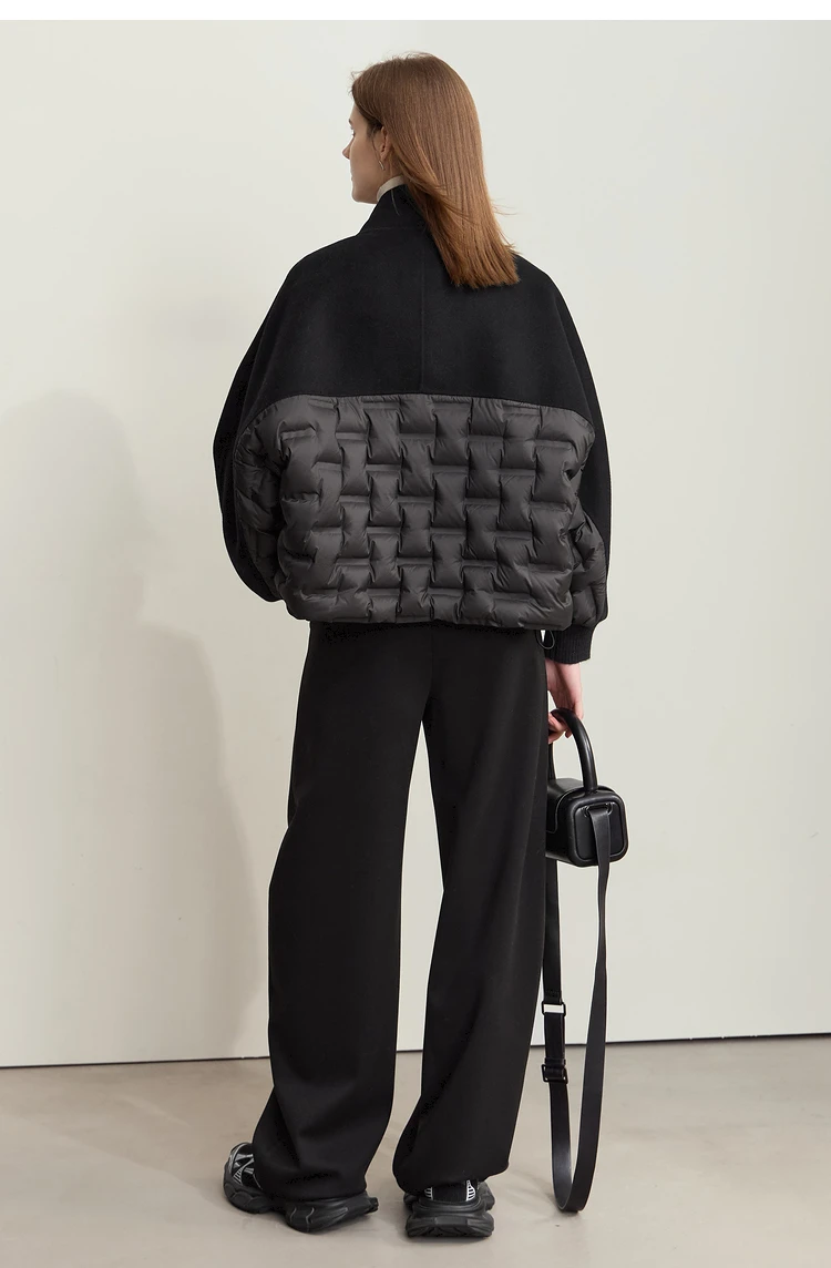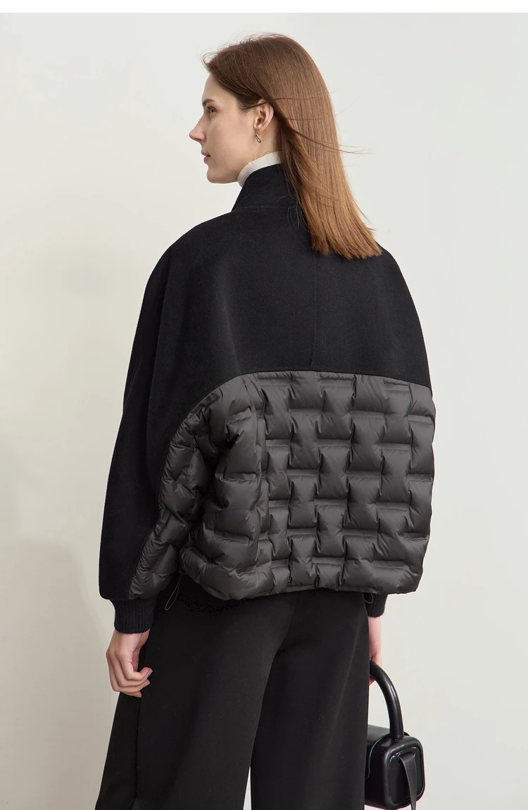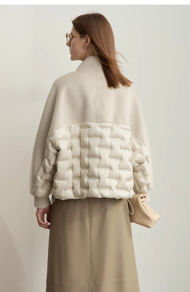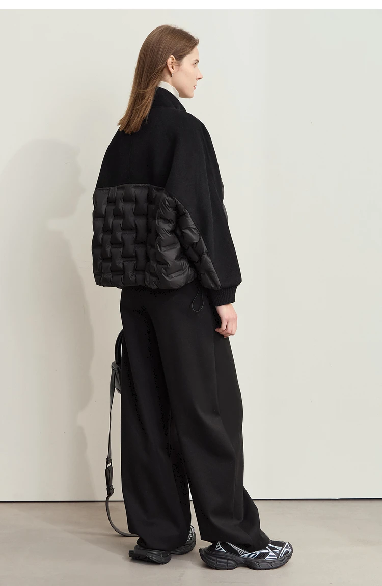 Down Coats 100% Wool Stand Collar Loose Spliced Jackets for Woman 2024 Winter Warm New Casual Versatile Jacket 12454007