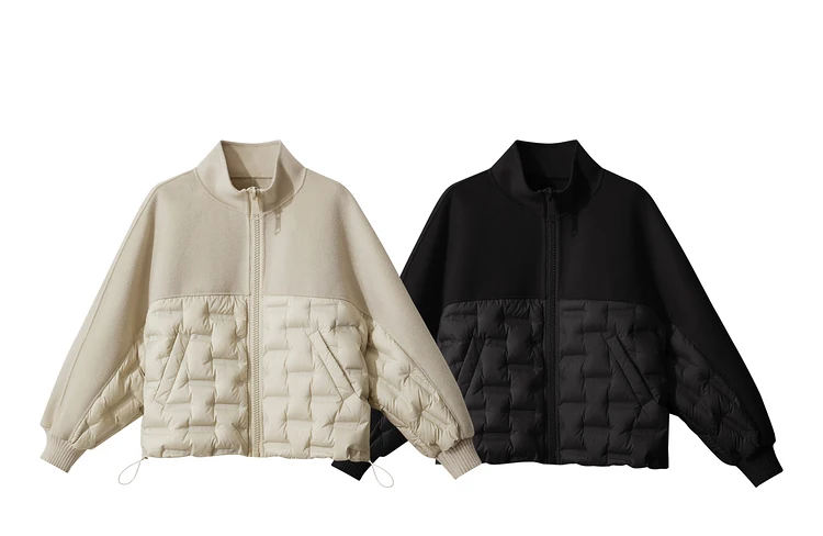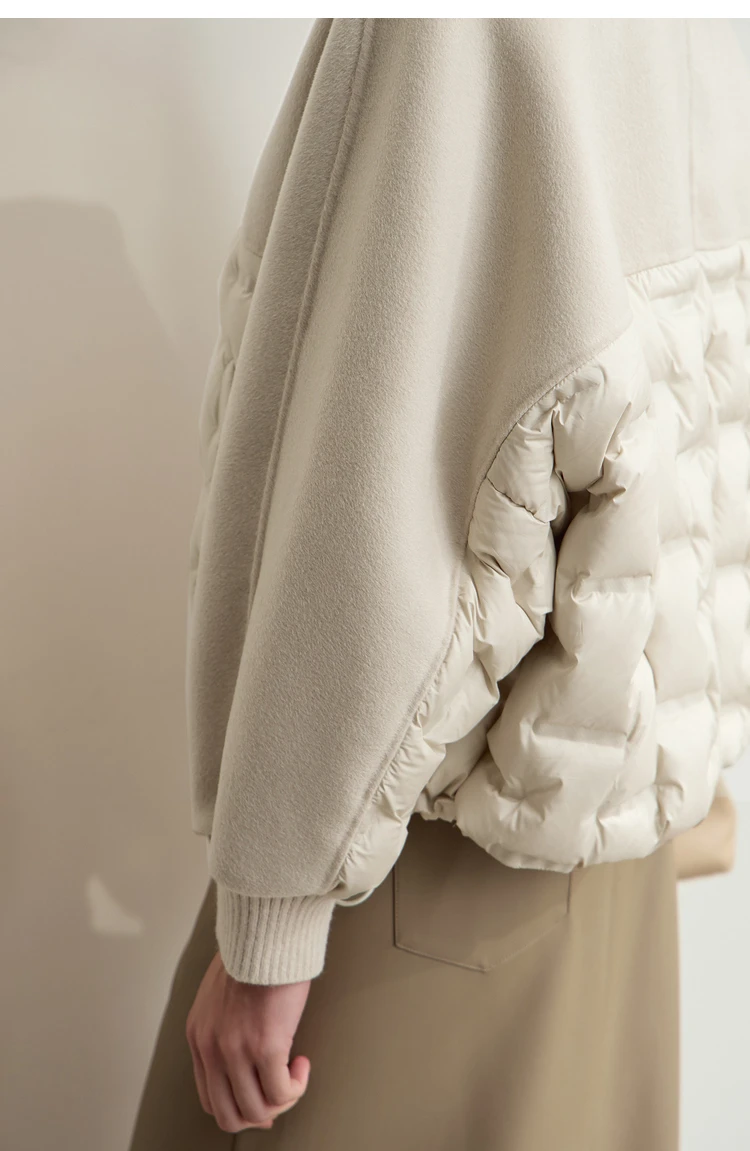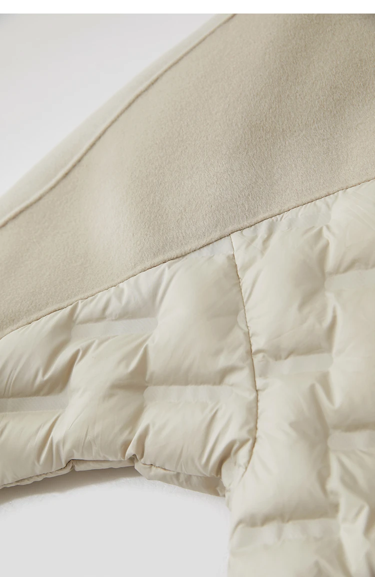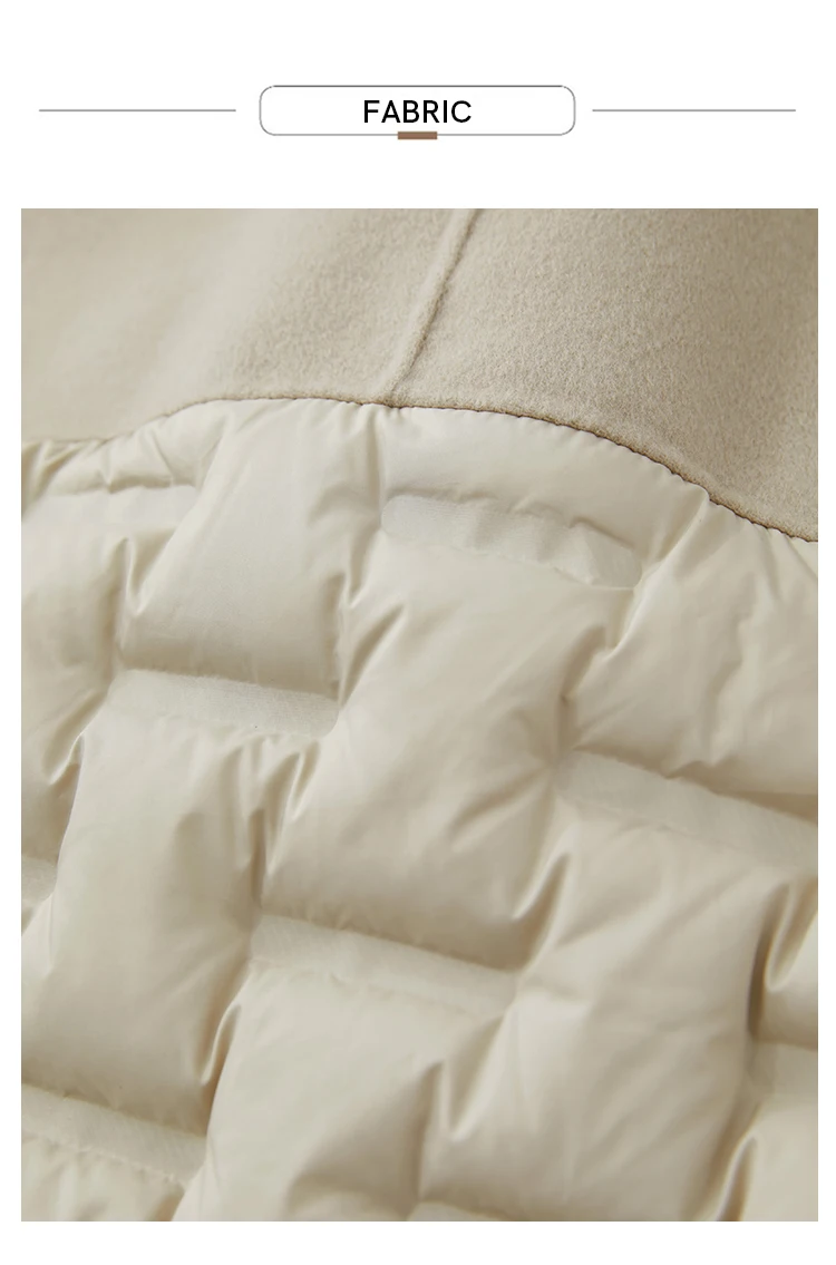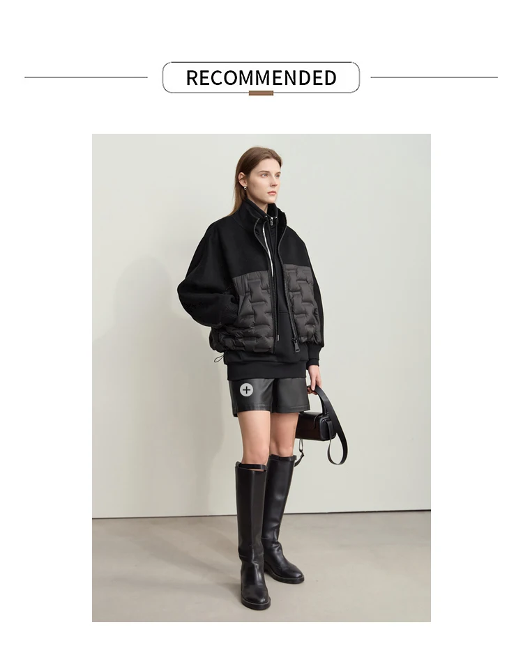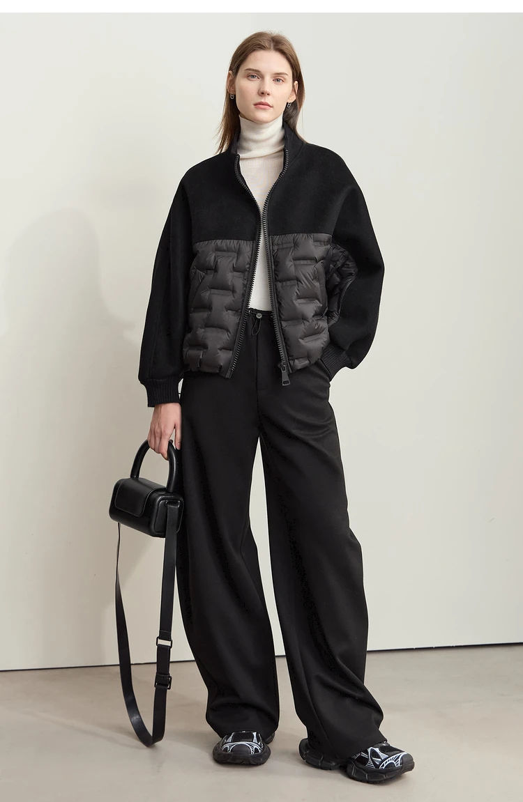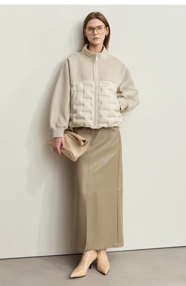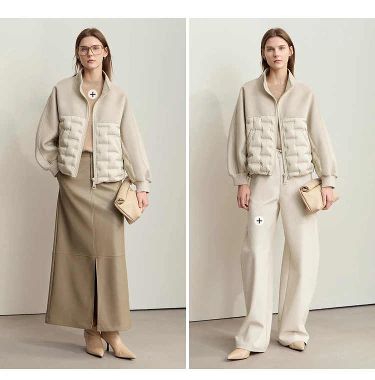Down Coats 100% Wool Stand Collar Loose Spliced Jackets for Woman 2024 Winter Warm New Casual Versatile Jacket 12454007