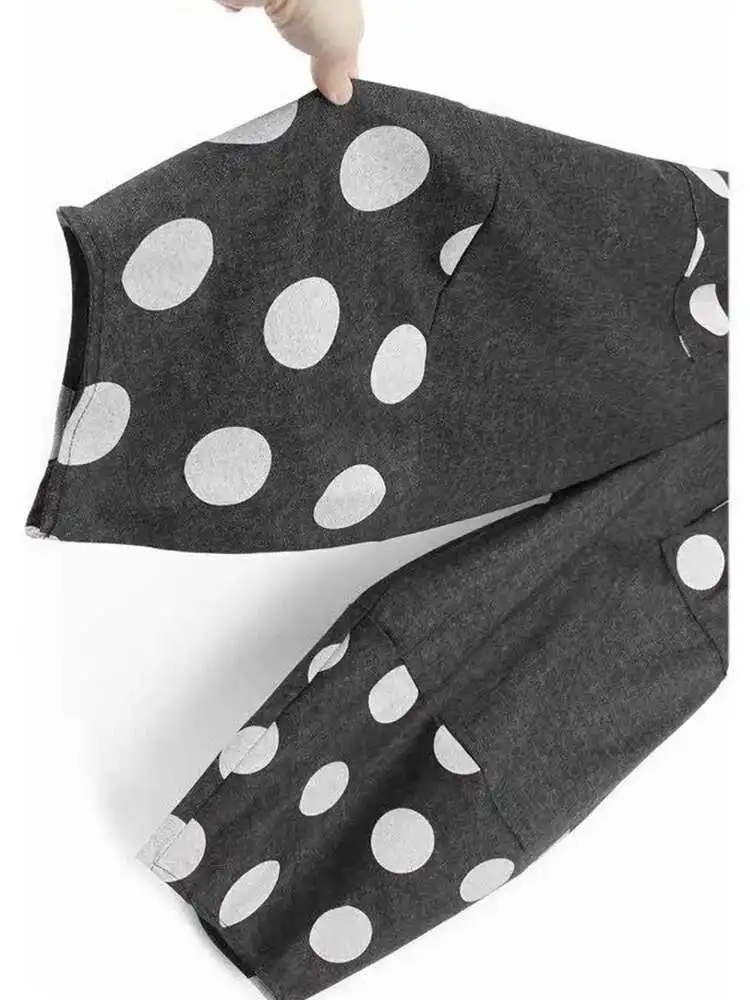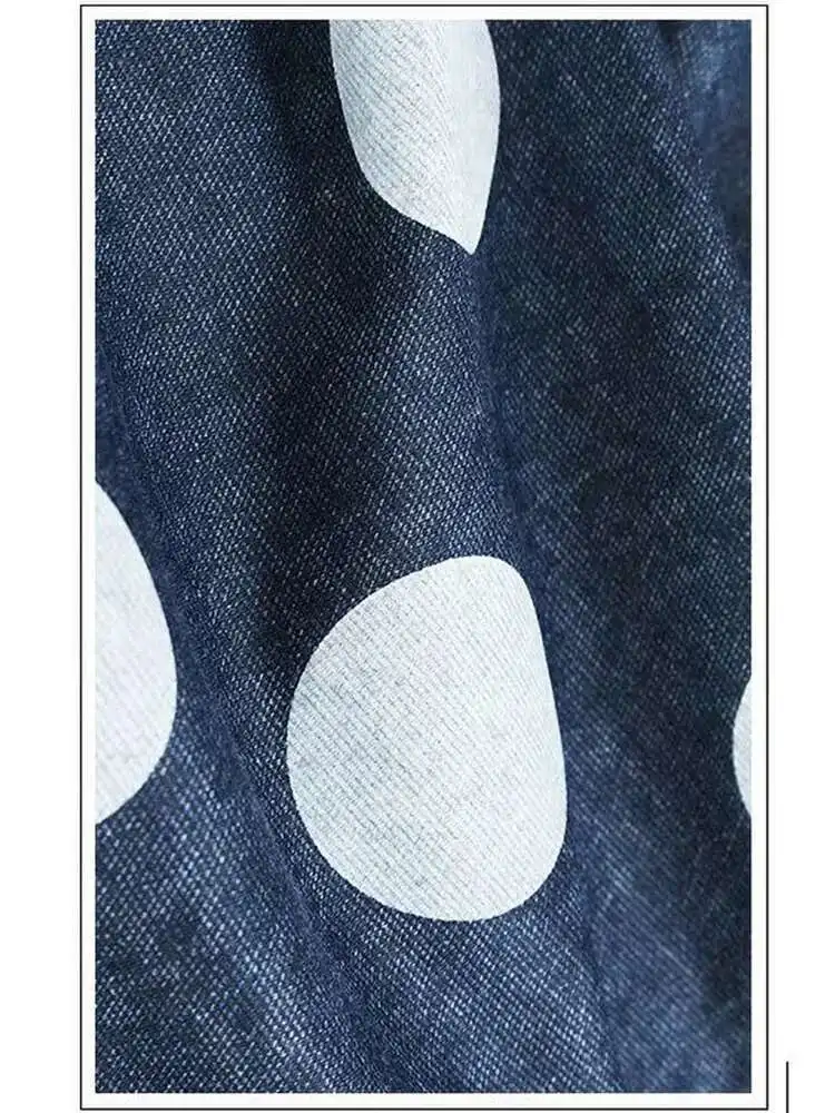 High Elastic Waist Blue Dot Printed Denim Casual Harem Pants New Trousers Women Fashion Tide Spring Autumn 2025 1DJ0083