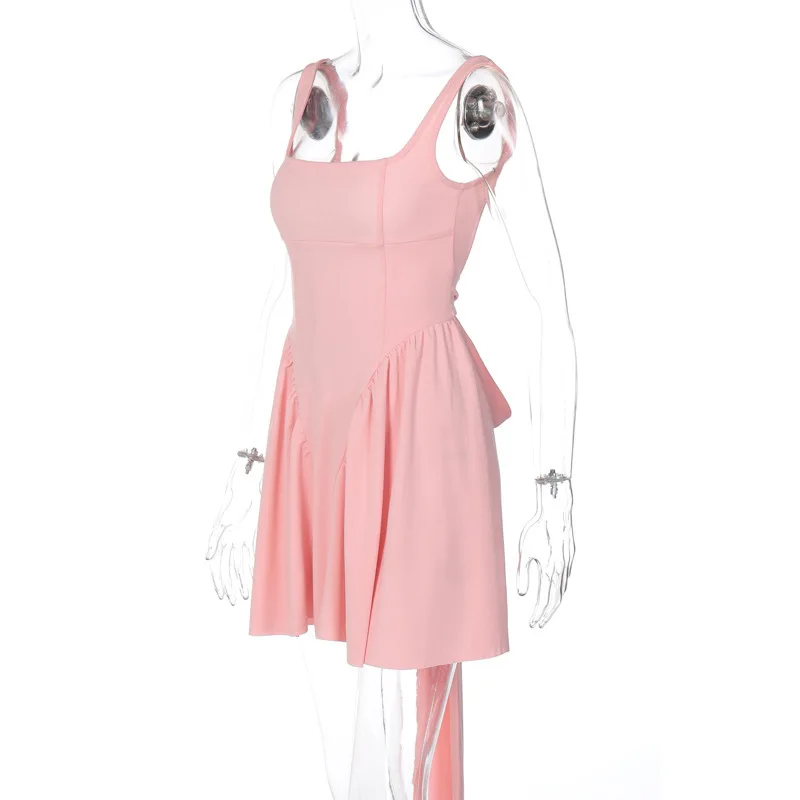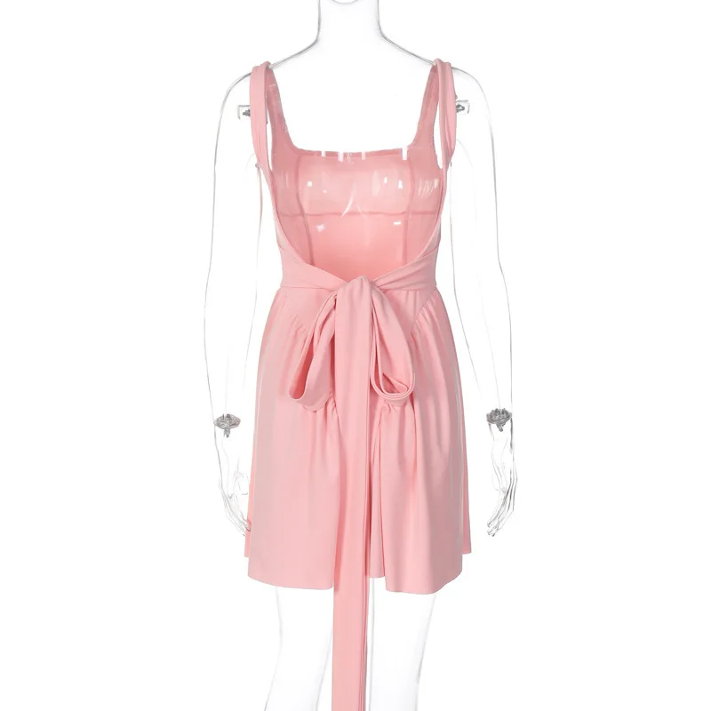 Elegant Backless Bow Mini Dress For Women 2023 Autumn New Square Collar Sleeveless Ruffles Sexy Dress Vintage Fashion