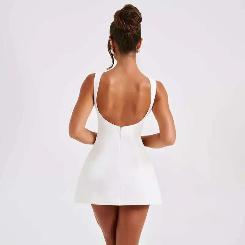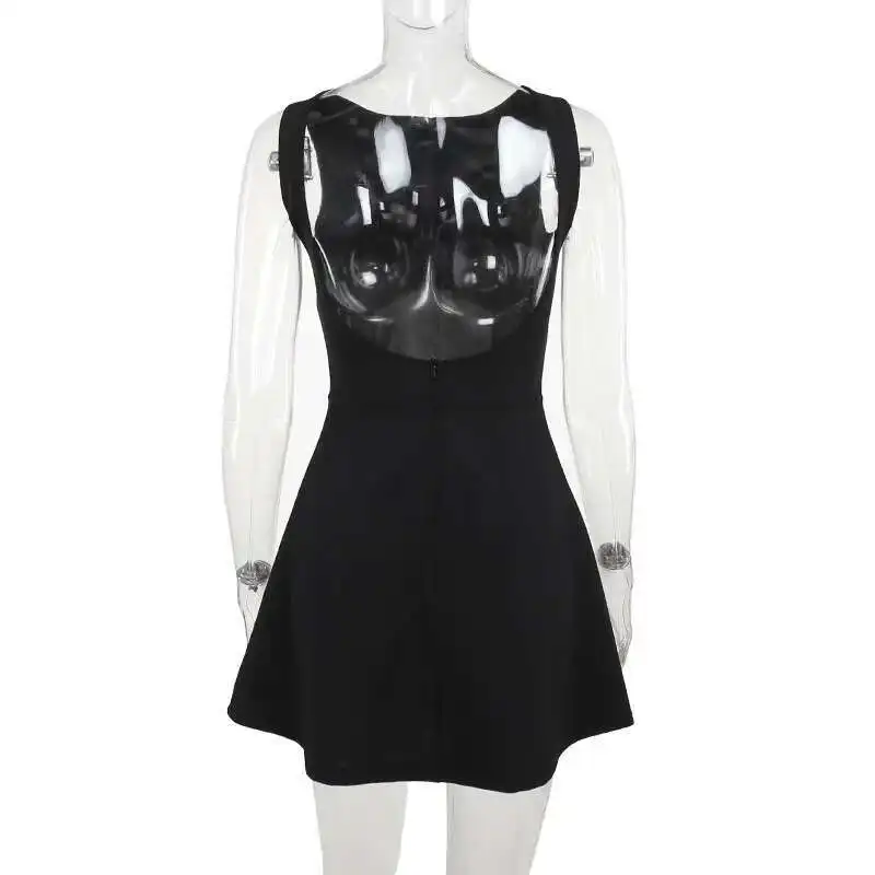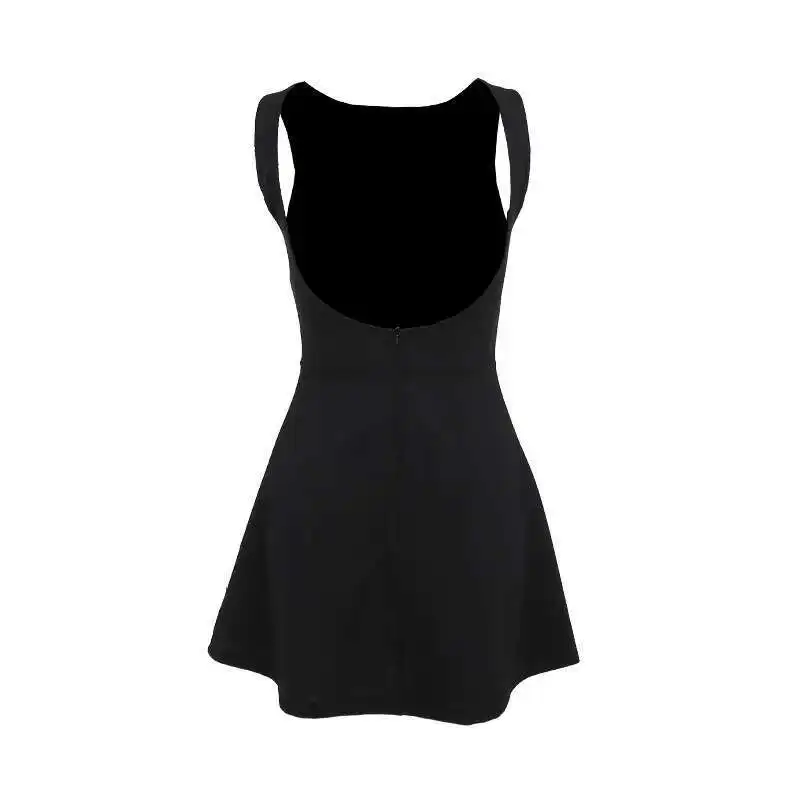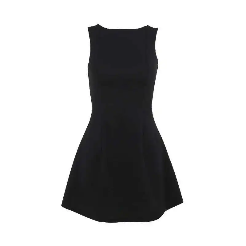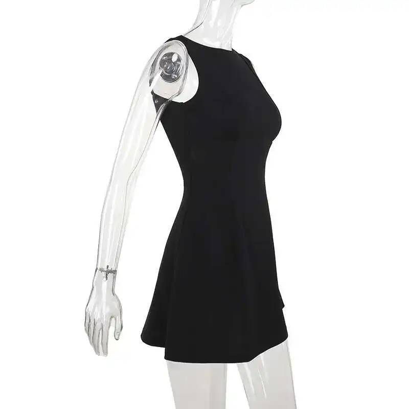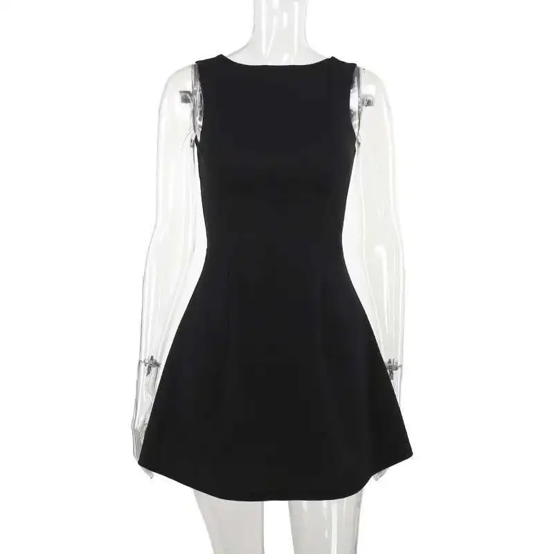 Elegant Backless Mini Tank Dress For Women Fashion Black O Neck Sleeveless Club Party A-line Basics Sexy Dress New