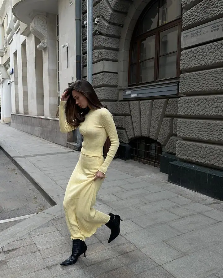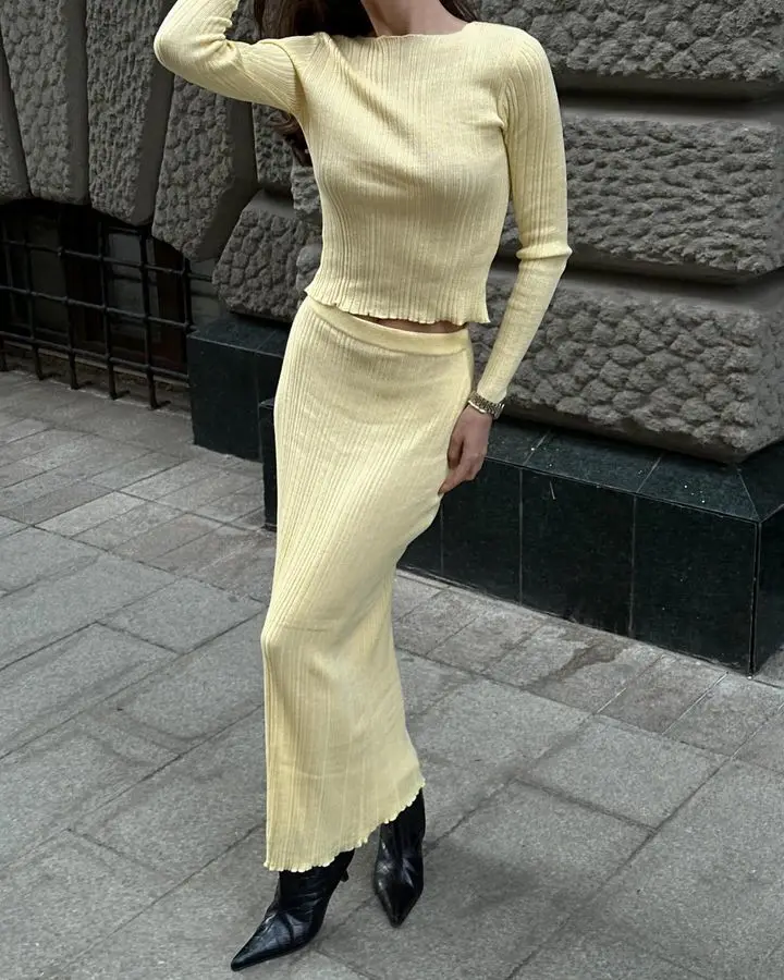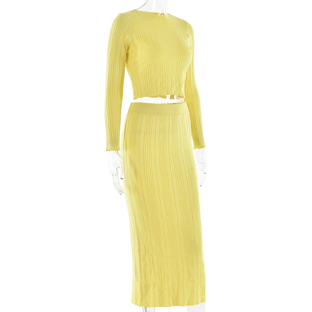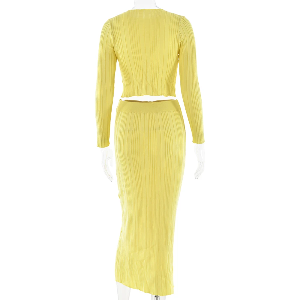 Elegant Knitted Sweater Long Sleeve Skirt Set Fashion Autumn/Winter New Women Two Piece Set Party Club Street Clothing