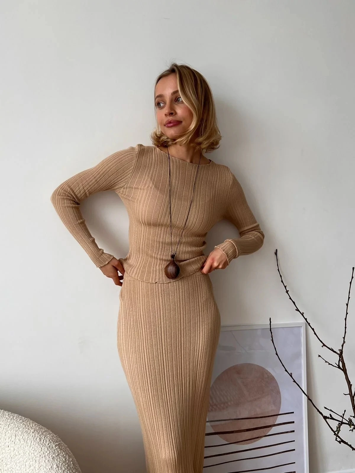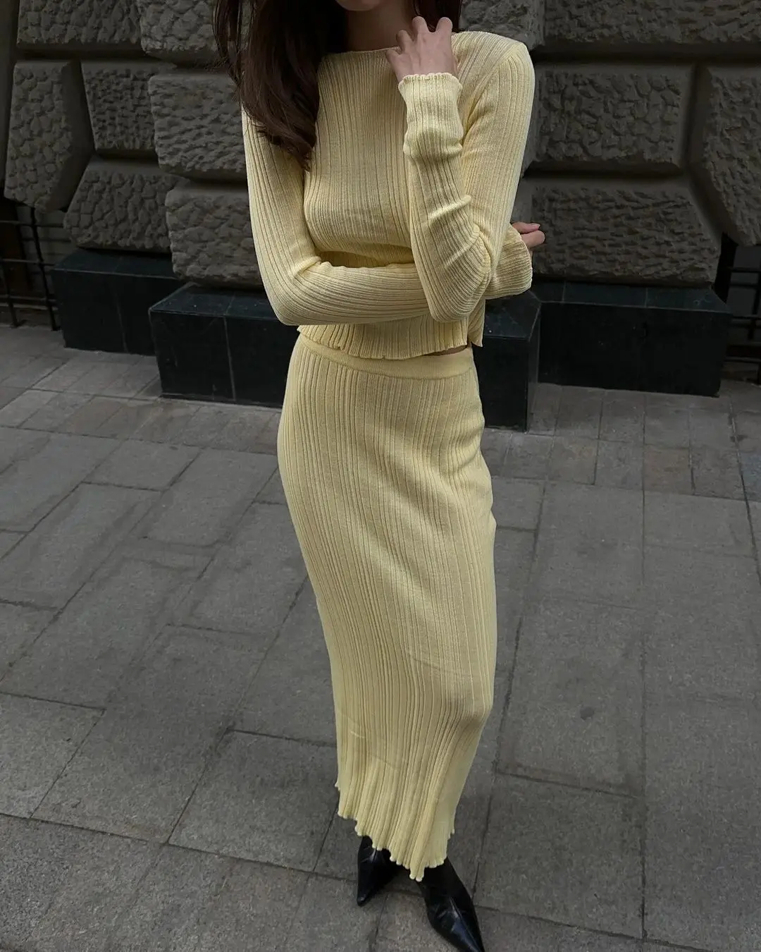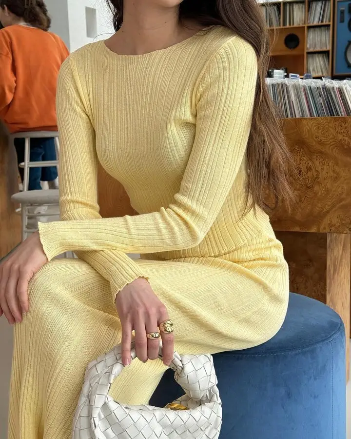 Elegant Knitted Sweater Long Sleeve Skirt Set Fashion Autumn/Winter New Women Two Piece Set Party Club Street Clothing