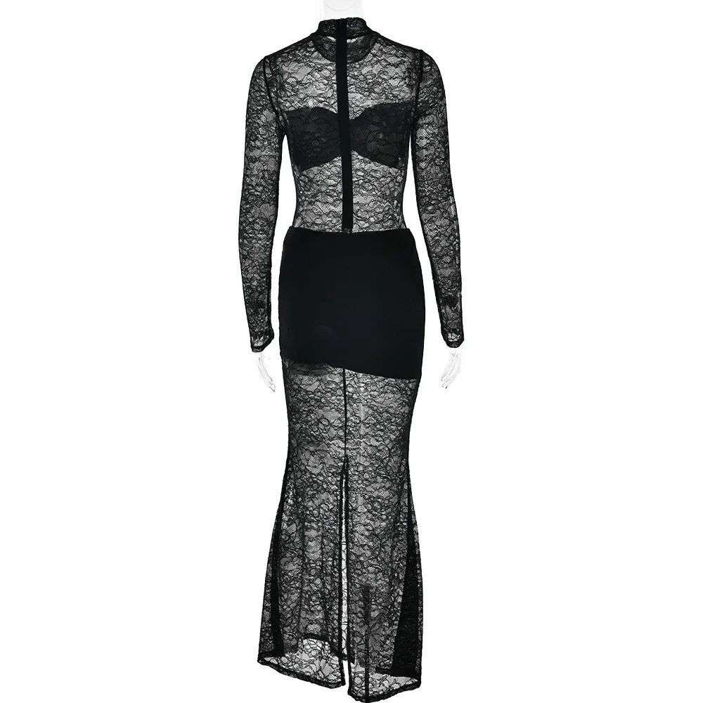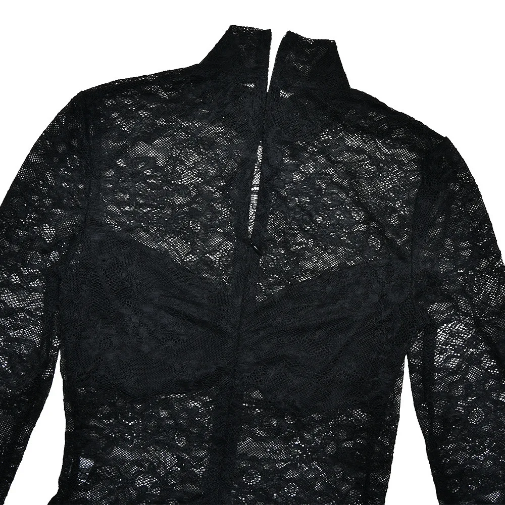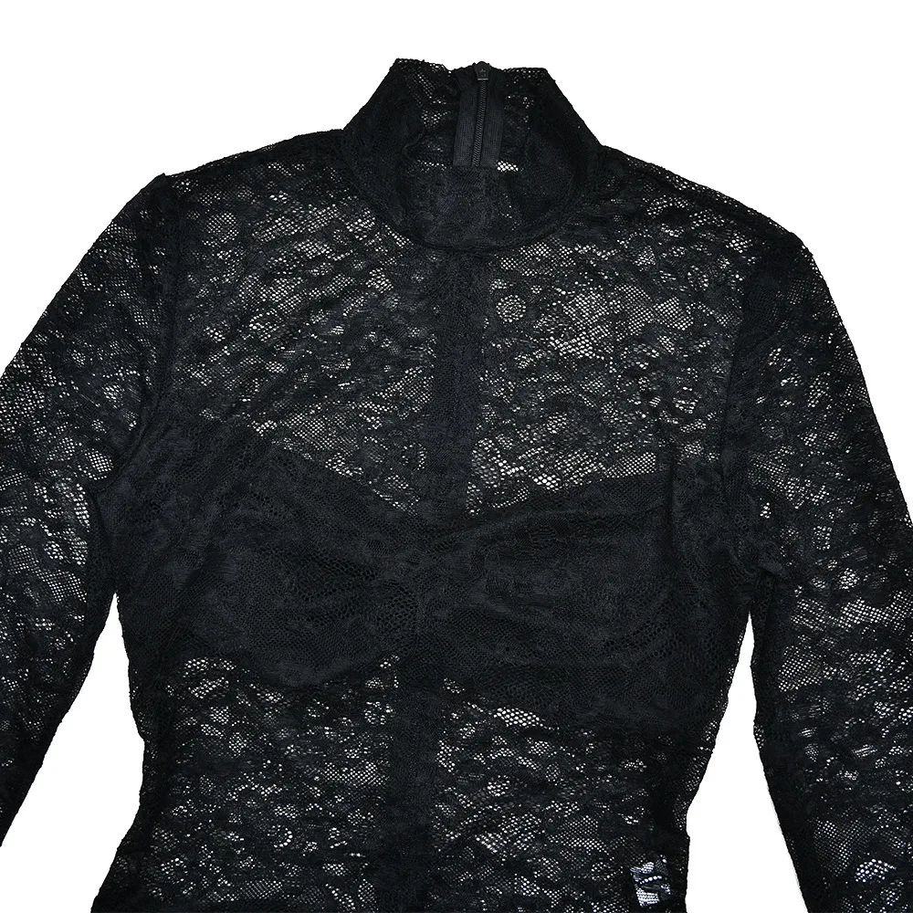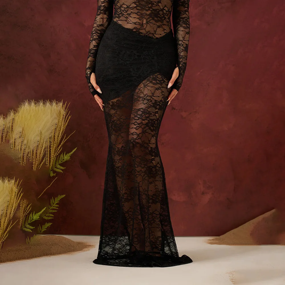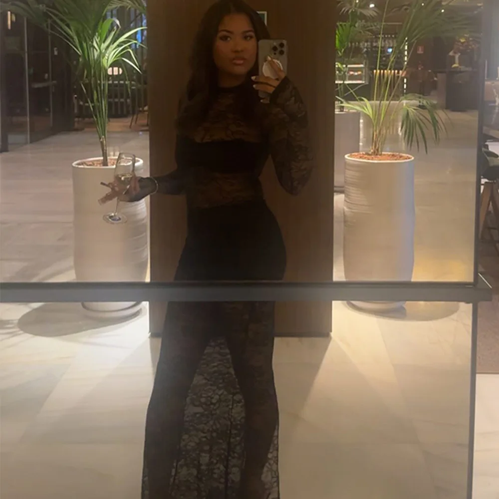 Elegant Lace Long Sleeved Bodysuit Half Skirt Two-piece Set Women Sexy Perspective Slim Set Winter New 2025 Clothing