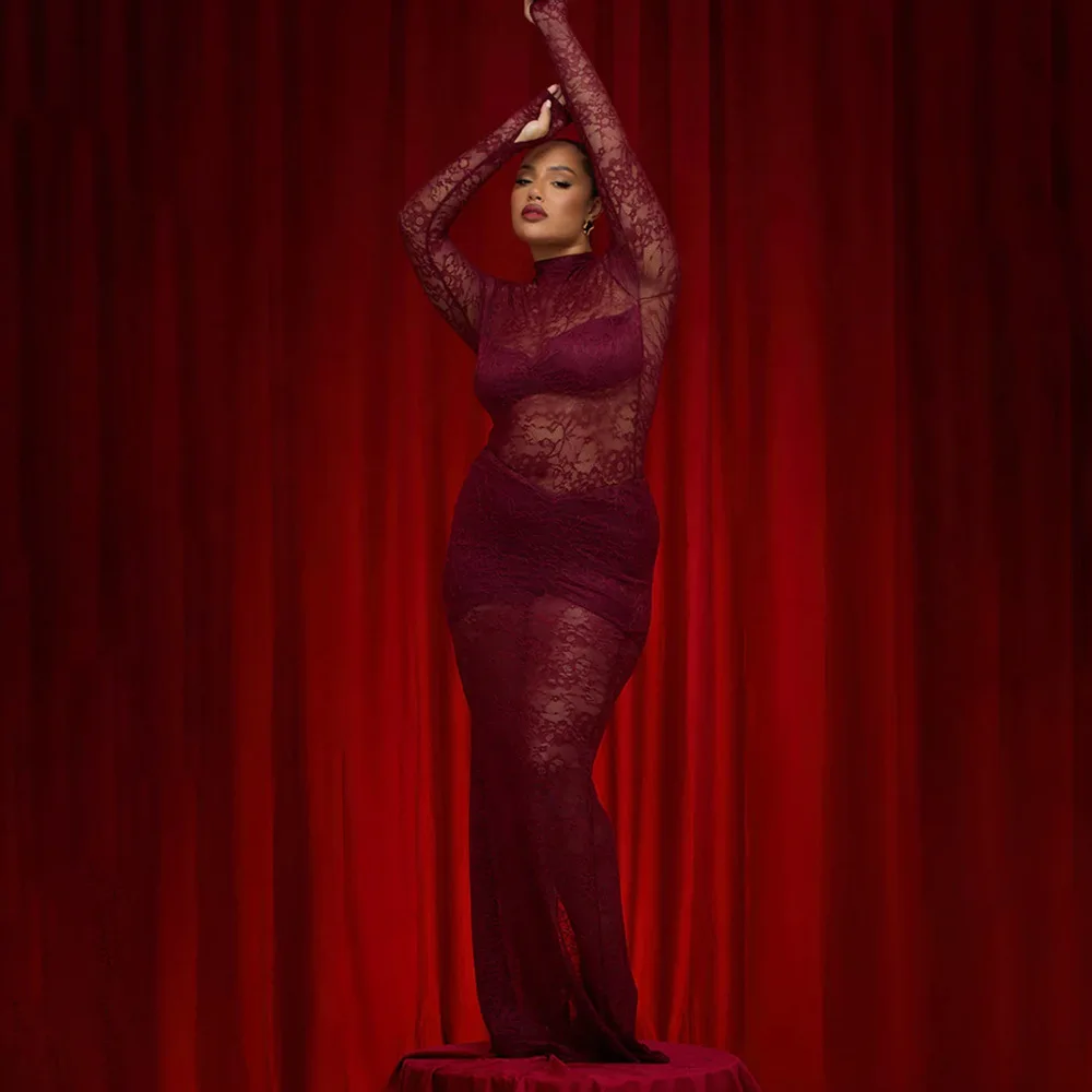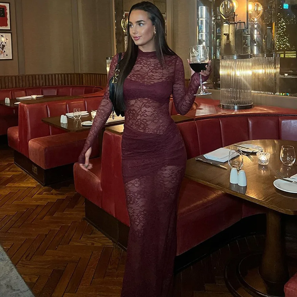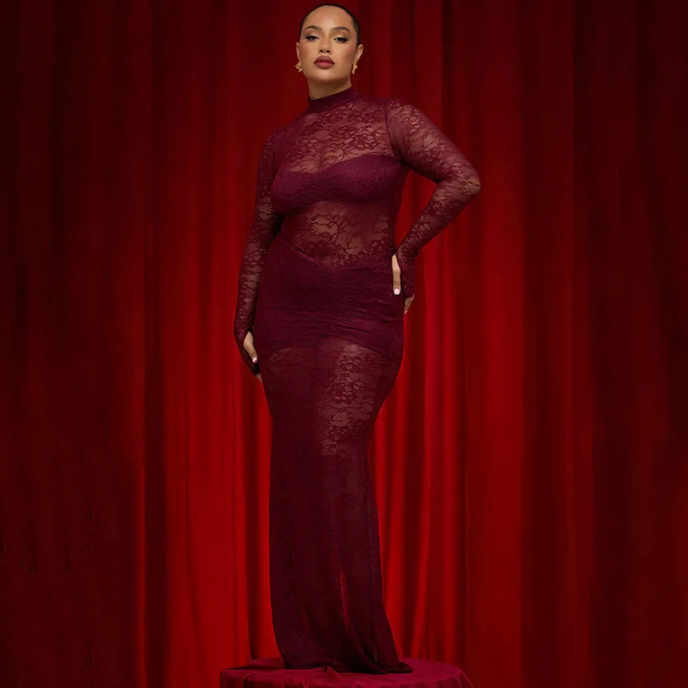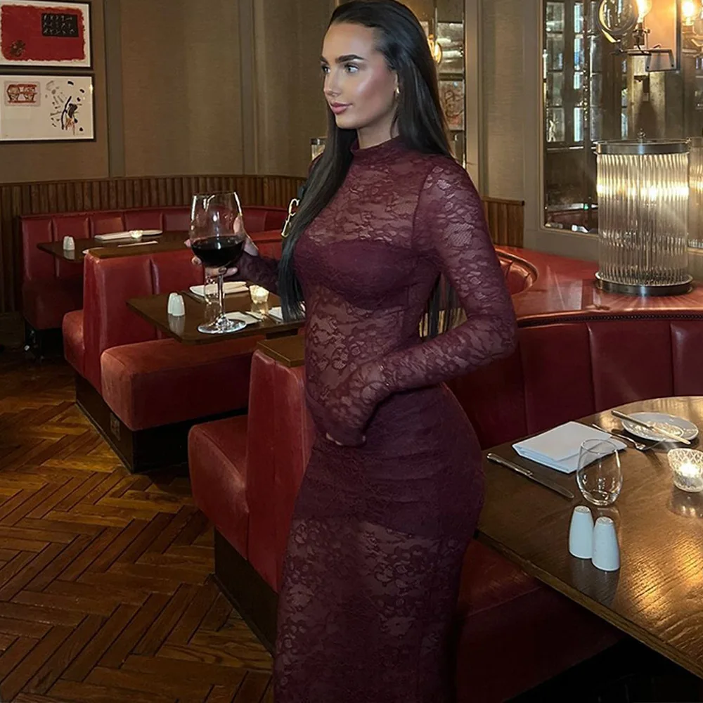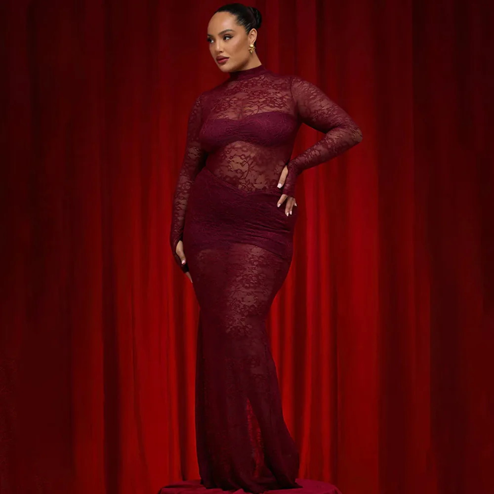 Elegant Lace Long Sleeved Bodysuit Half Skirt Two-piece Set Women Sexy Perspective Slim Set Winter New 2025 Clothing