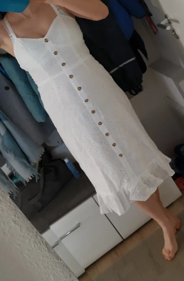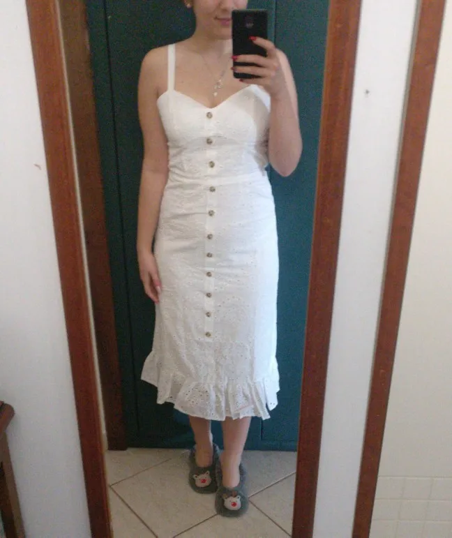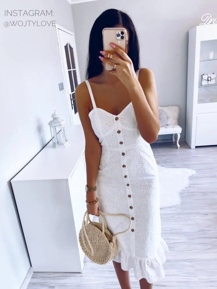 Feature: spaghetti strap, cotton embroidery, midi length