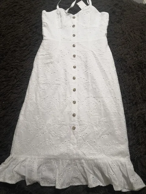Dress: hollow out white cotton dress