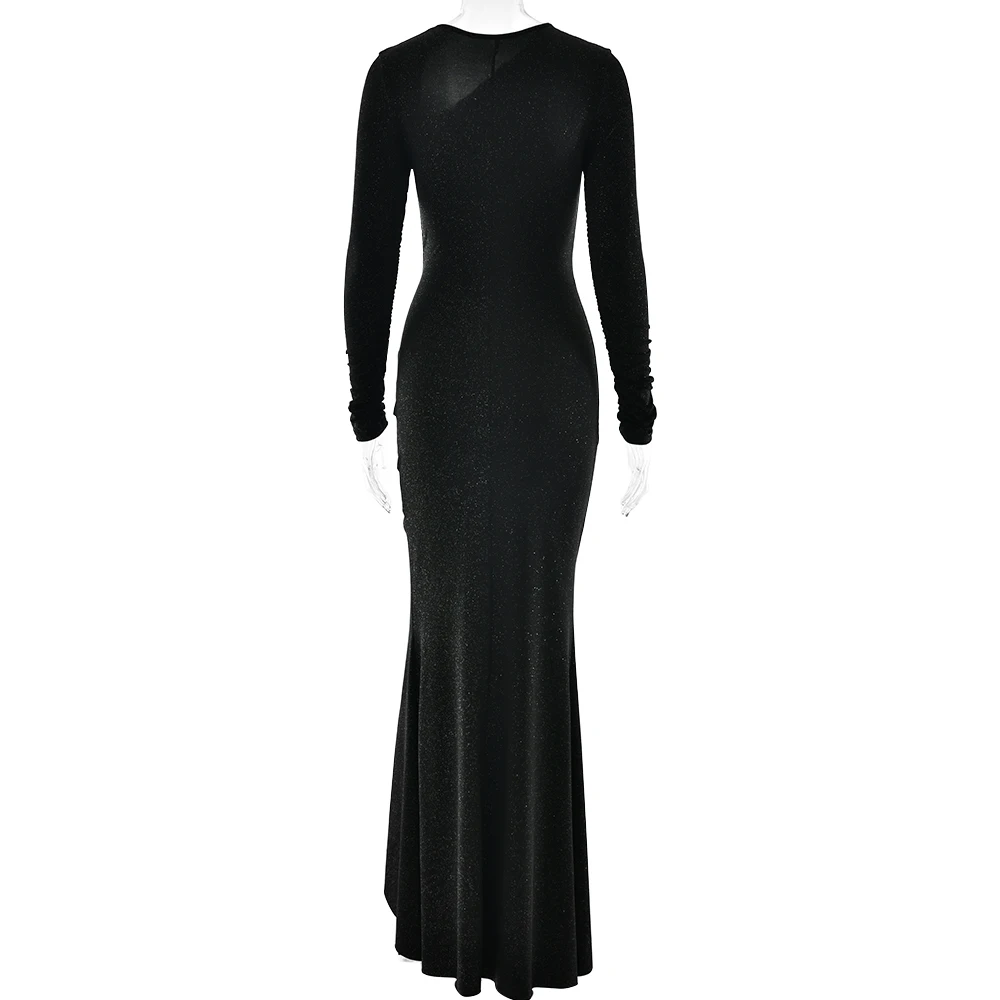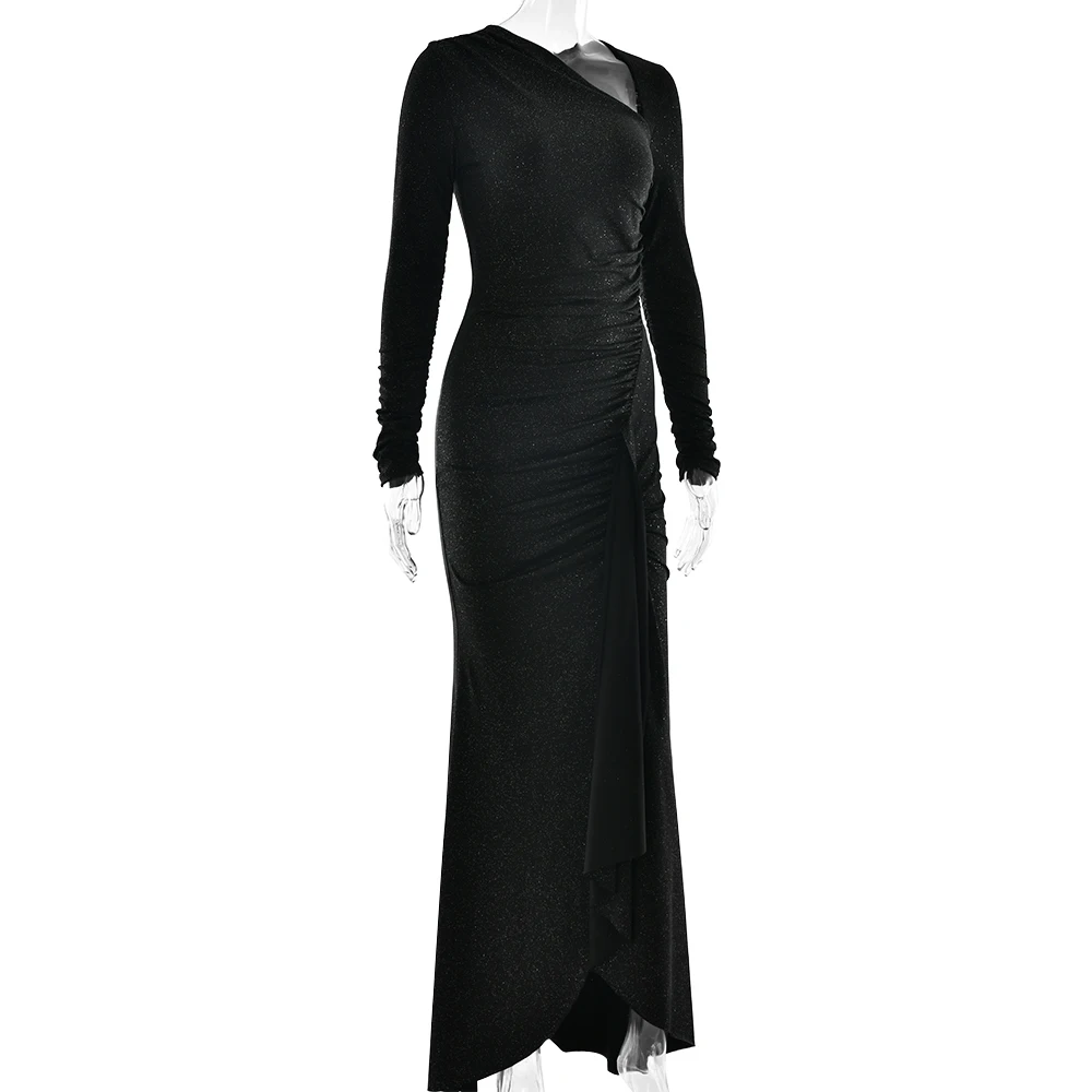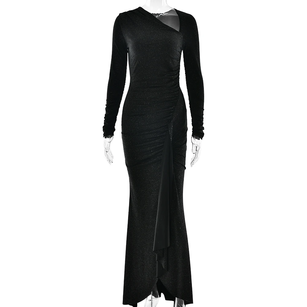 Elegant Long Sleeve Elastic Tight Irregular Party Evening Dress Women Winter New 2025 Bodycon Vestdos Maxi Slim Dress