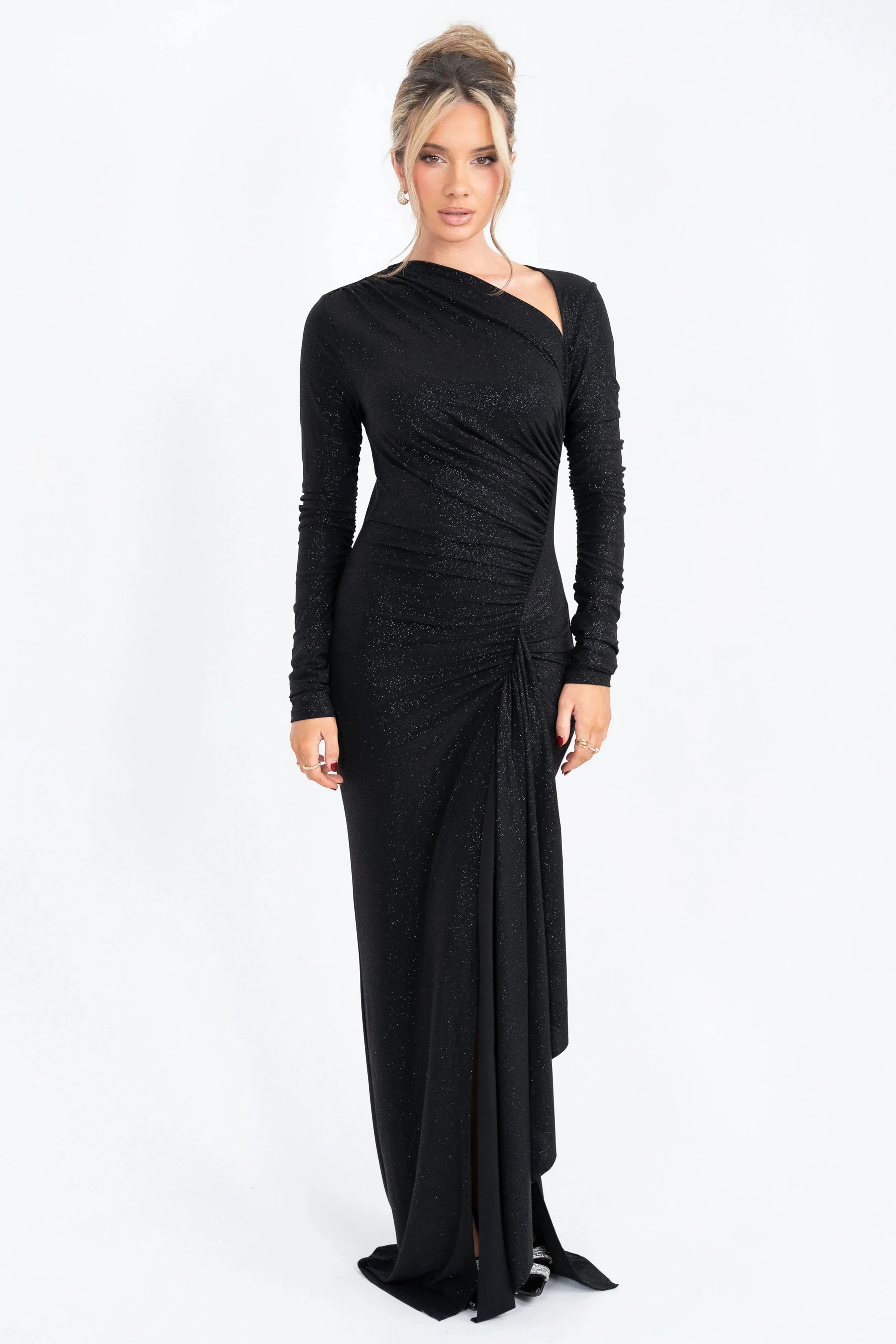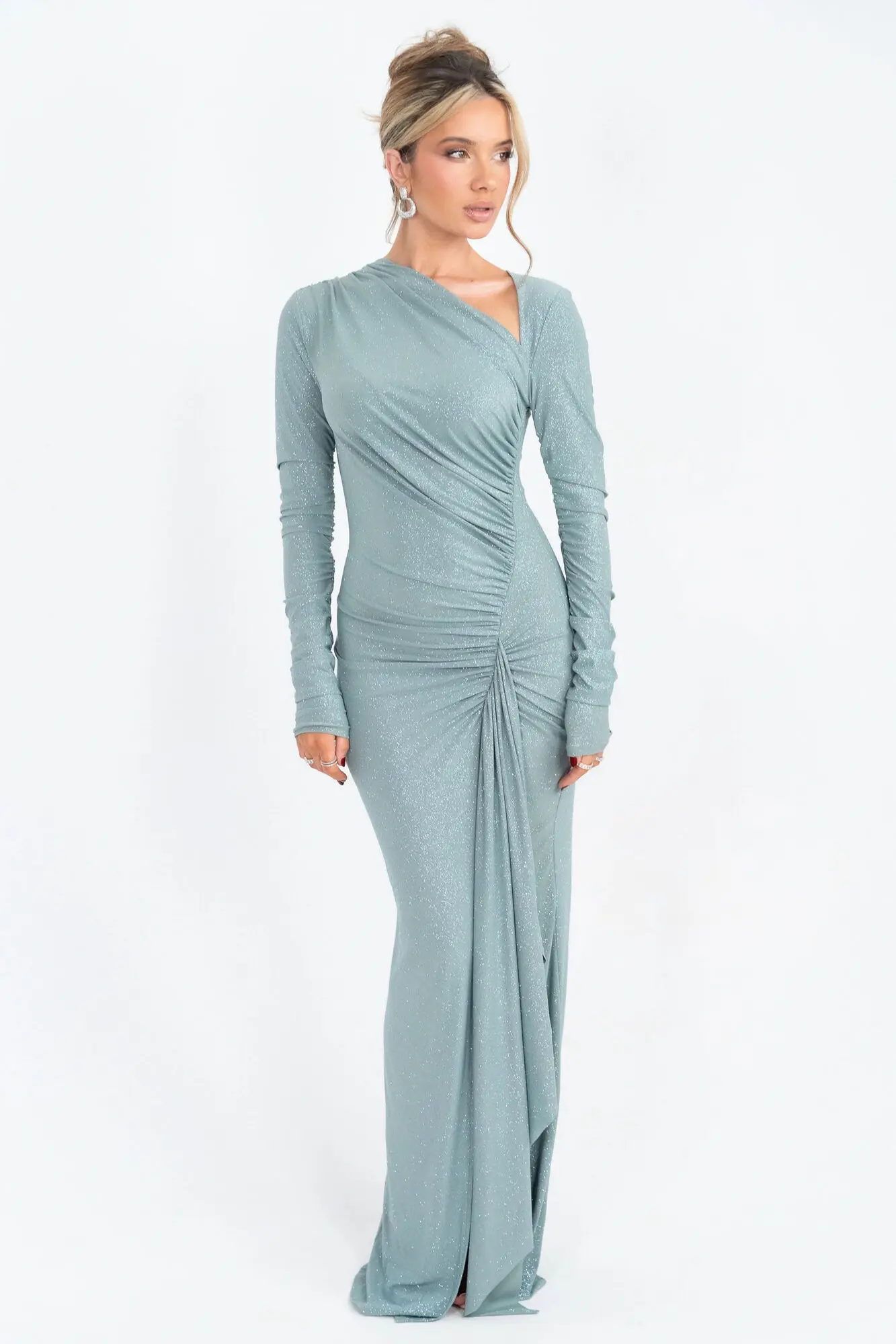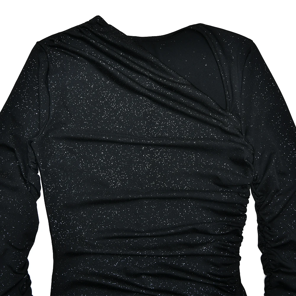 Elegant Long Sleeve Elastic Tight Irregular Party Evening Dress Women Winter New 2025 Bodycon Vestdos Maxi Slim Dress