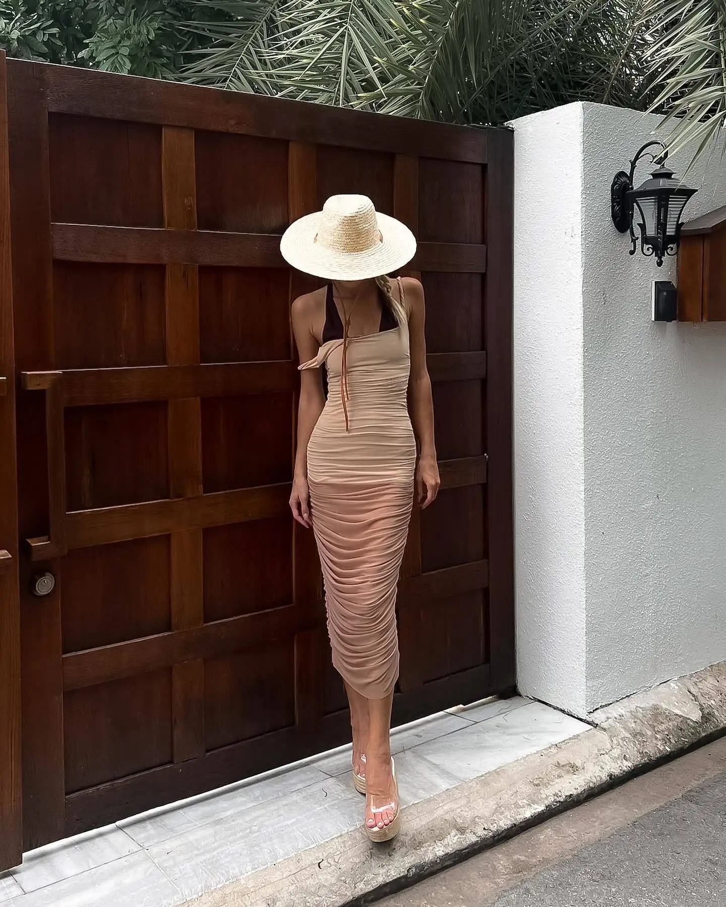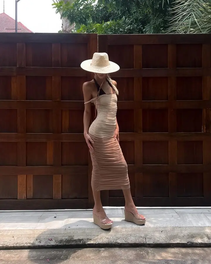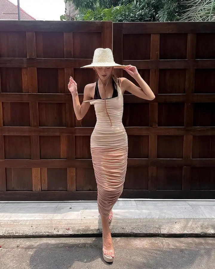 Elegant Mesh Patchwork Elastic Tight Dress Women Sexy Open Back Pleated Female Dress Slim Fit Party Vacation Club 2024