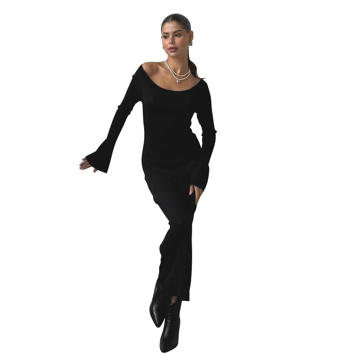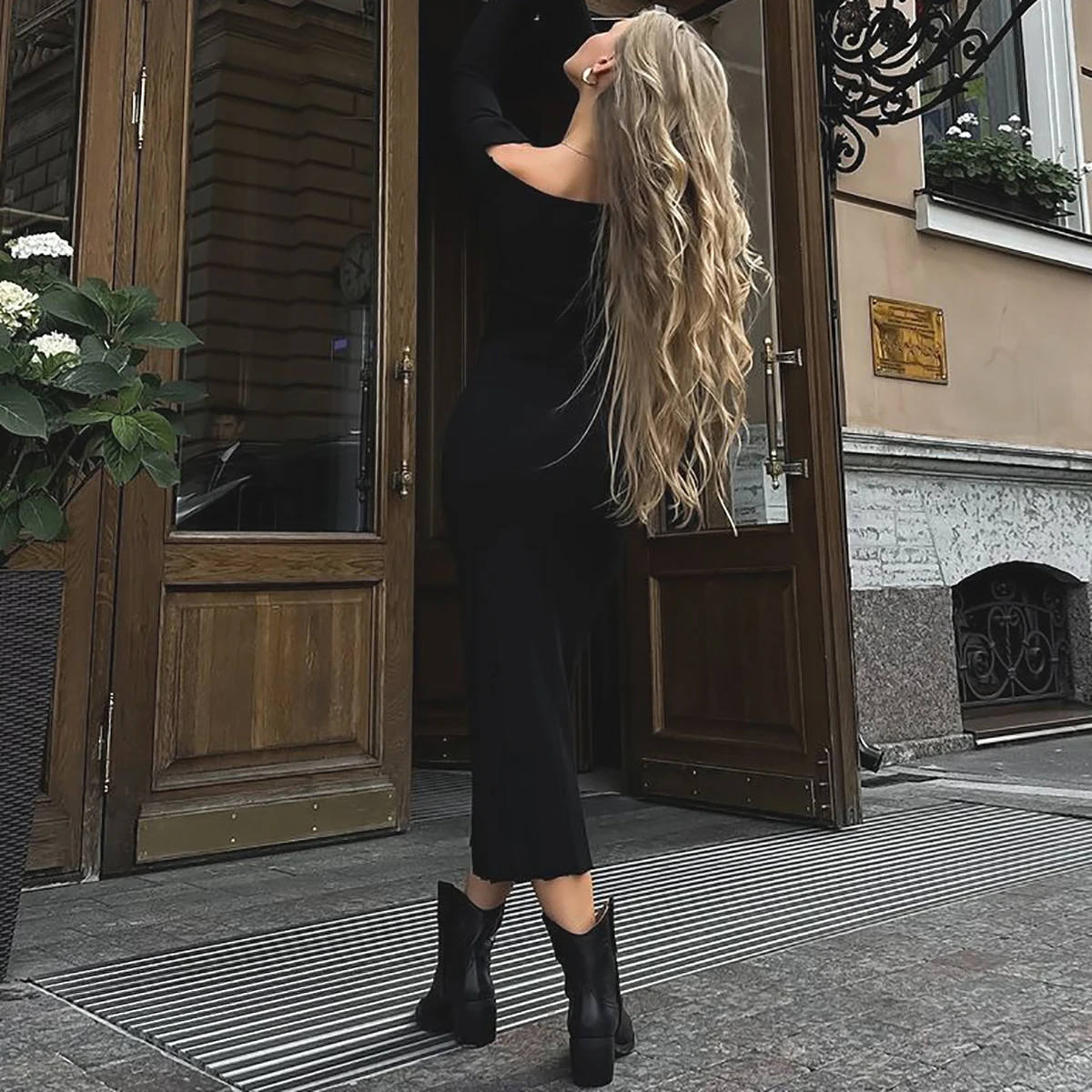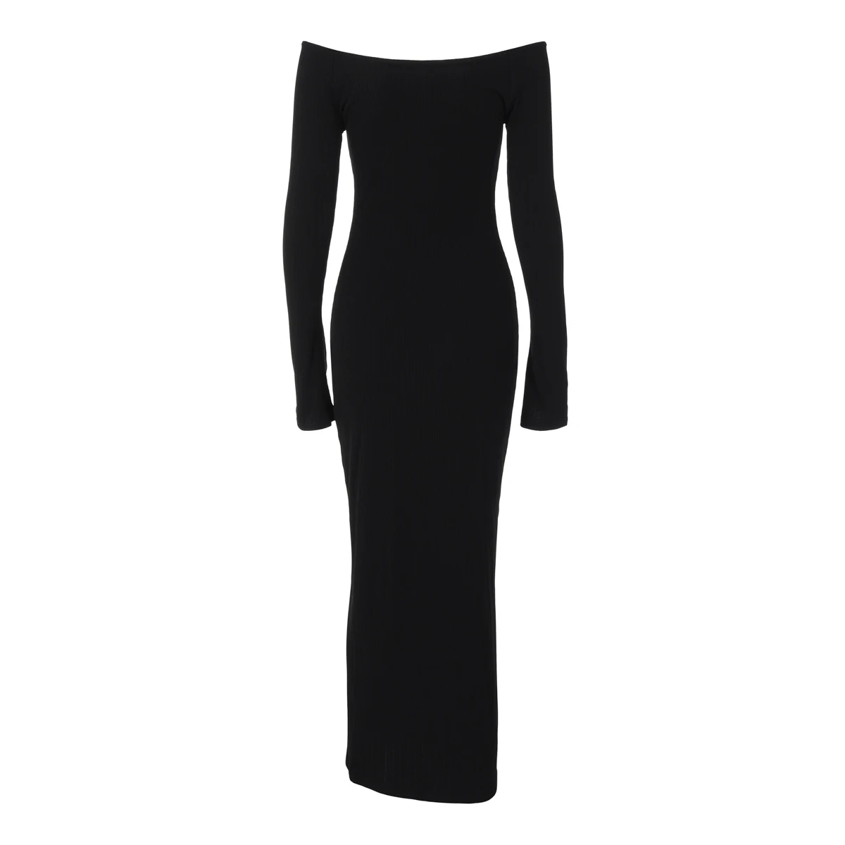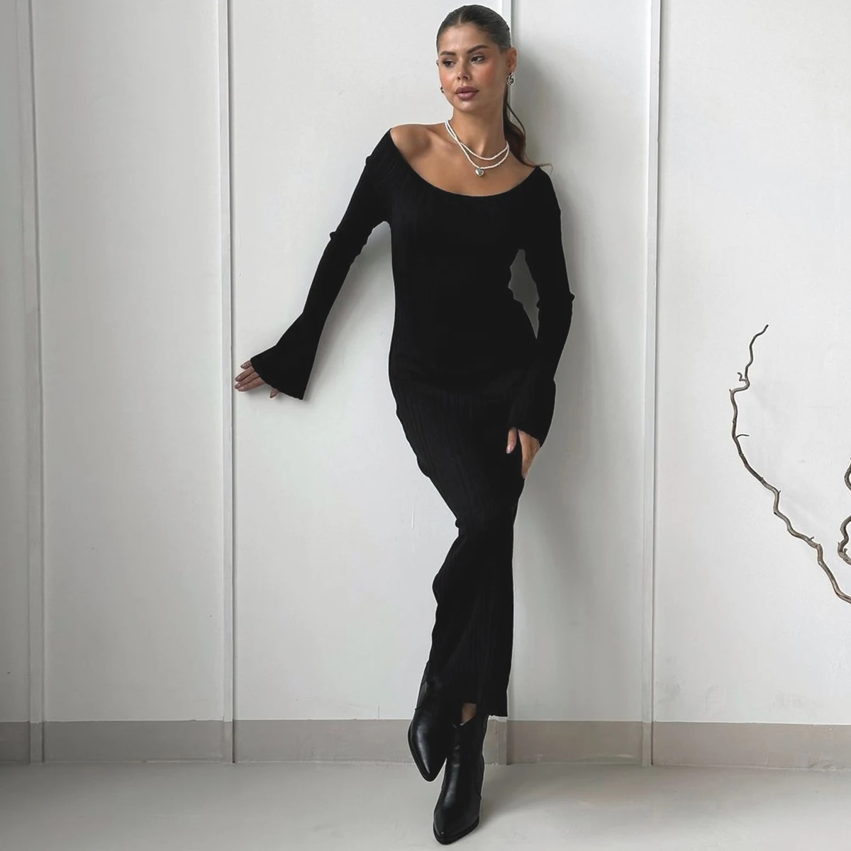 Elegant Slash Neck Long Sleeve Solid Sexy Bodycon Maxi Prom Dress Fall Women Y2K Clothes Birthday Party Festival