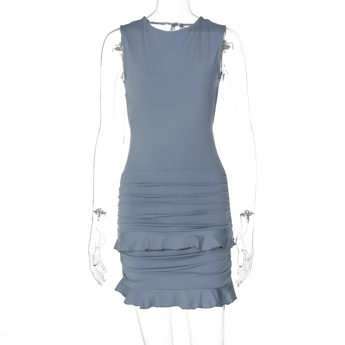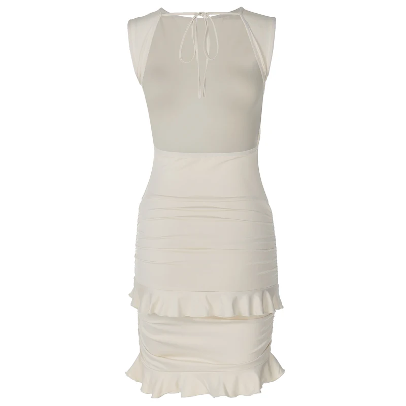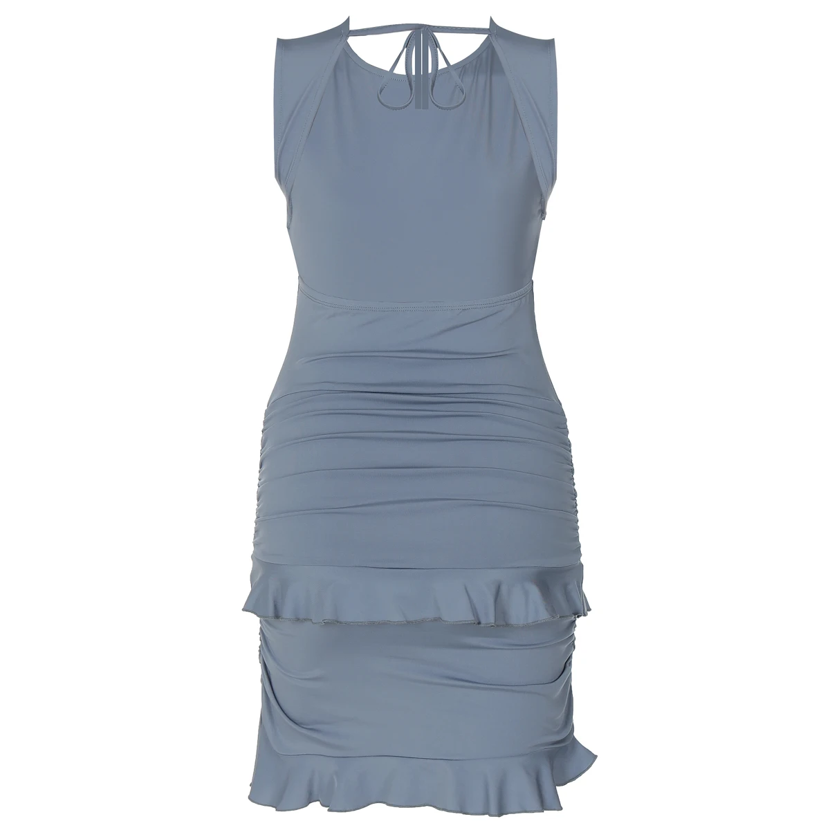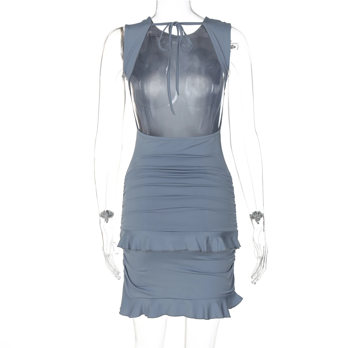 Elegant Solid Sleeveless Backless Lace Up Sexy Pleated Mini Dress Summer Cute Women Outfit Party Beach Vacation