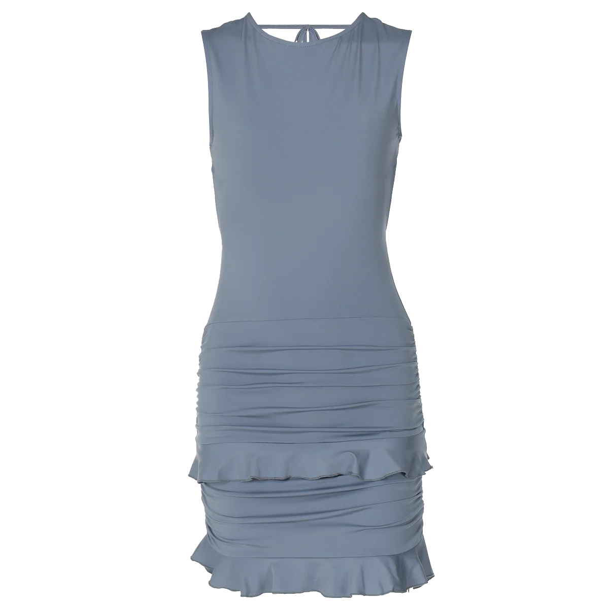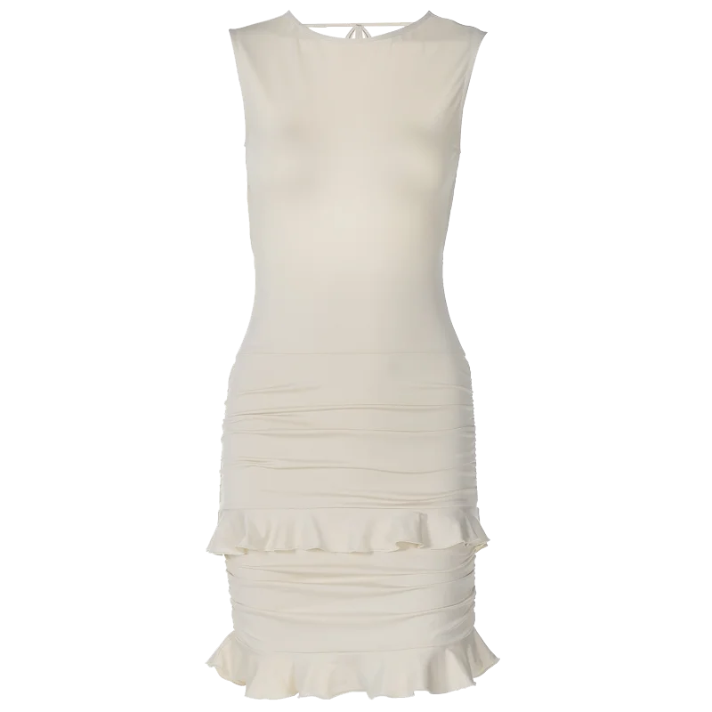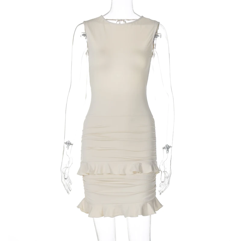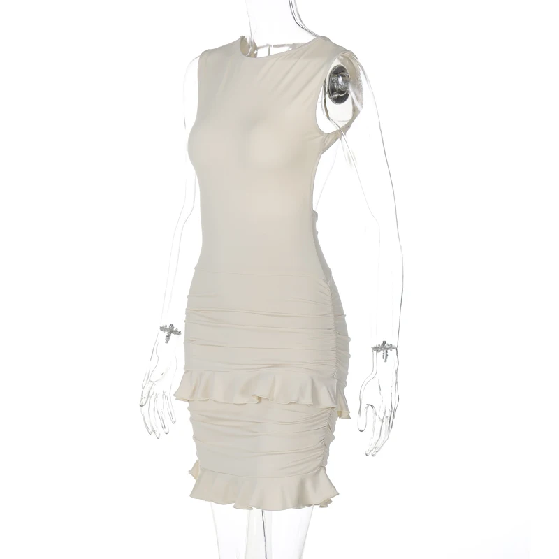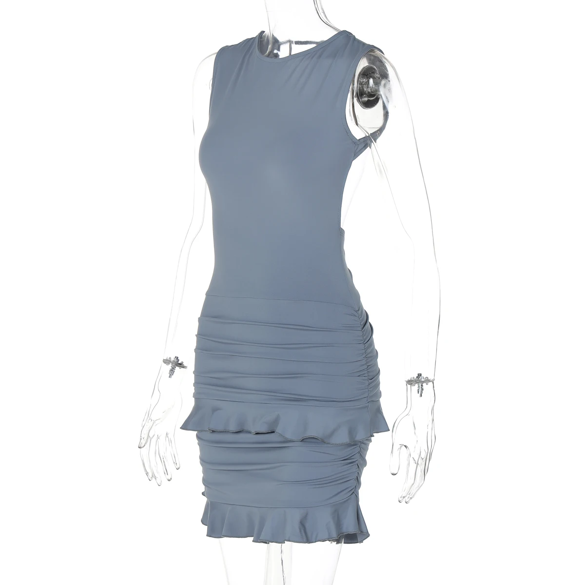Elegant Solid Sleeveless Backless Lace Up Sexy Pleated Mini Dress Summer Cute Women Outfit Party Beach Vacation