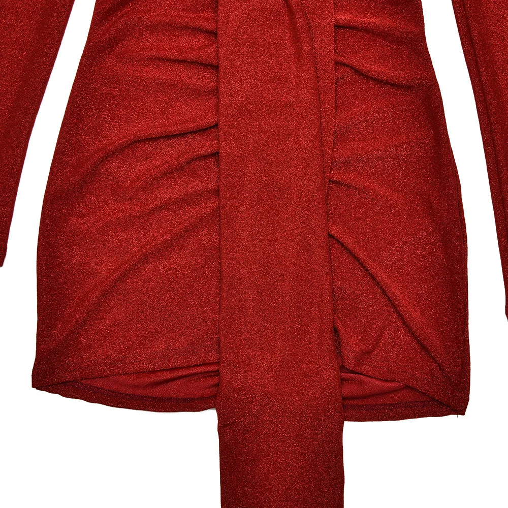 Elegant Sparkling Women's Dress Sexy V-neck Bodycon Party Club Evening Dress Winter New 2025 Long-sleeved Tight Vestido