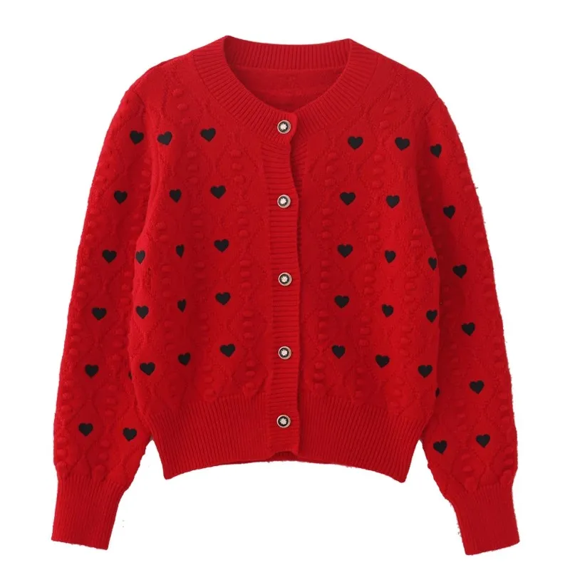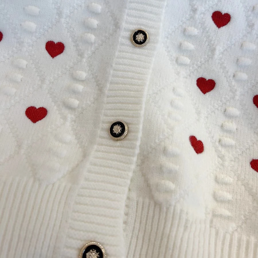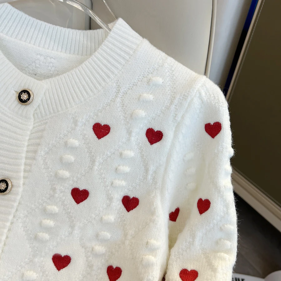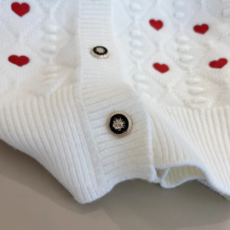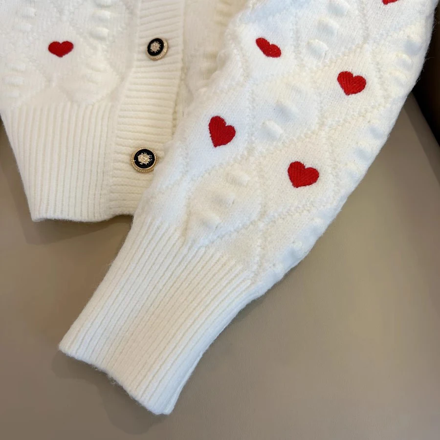 Embroidery Heart Knit Women Cardigan Sweater V Neck Single Breasted Knit Jumpers Top Autumn Winter Female Jacket Coat C-152