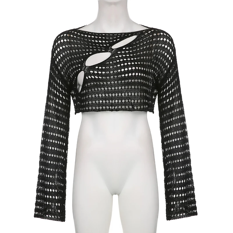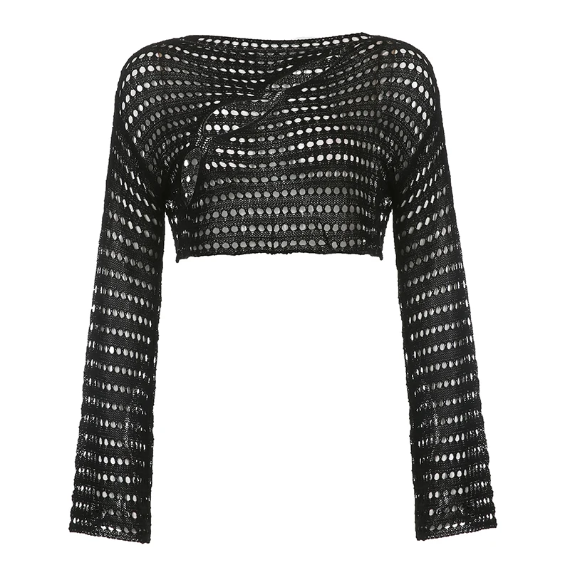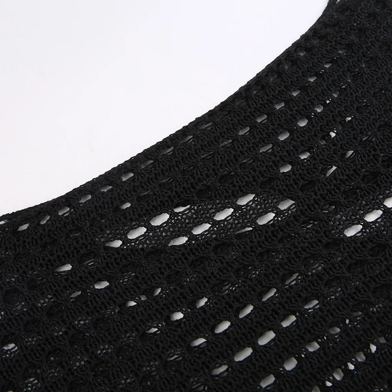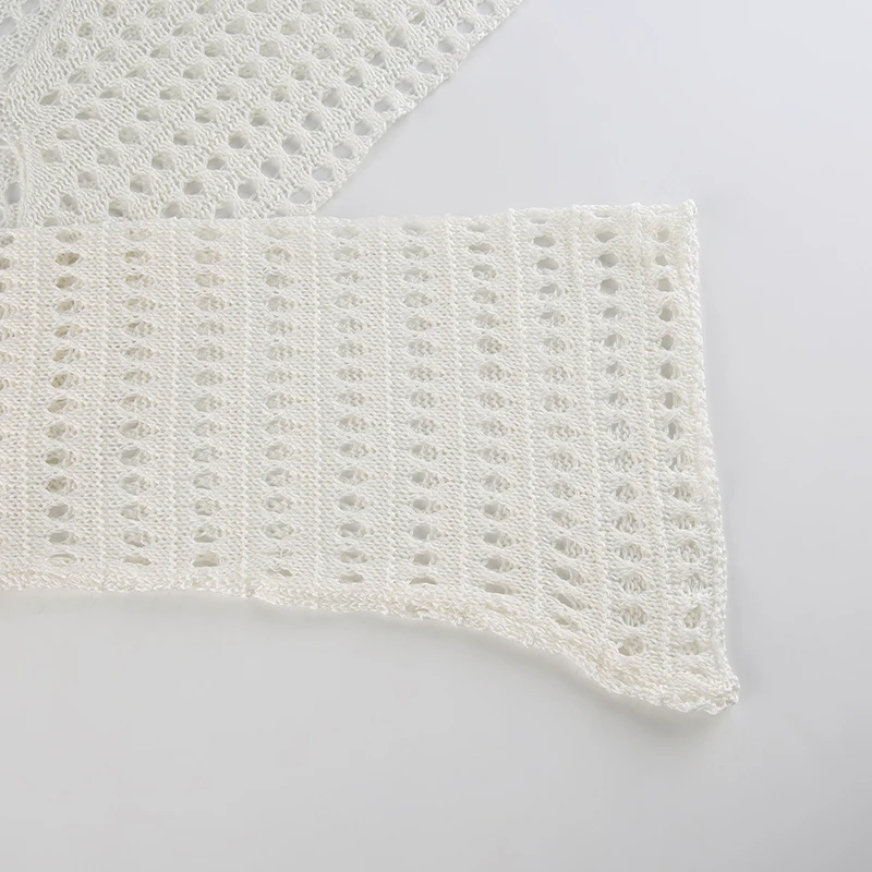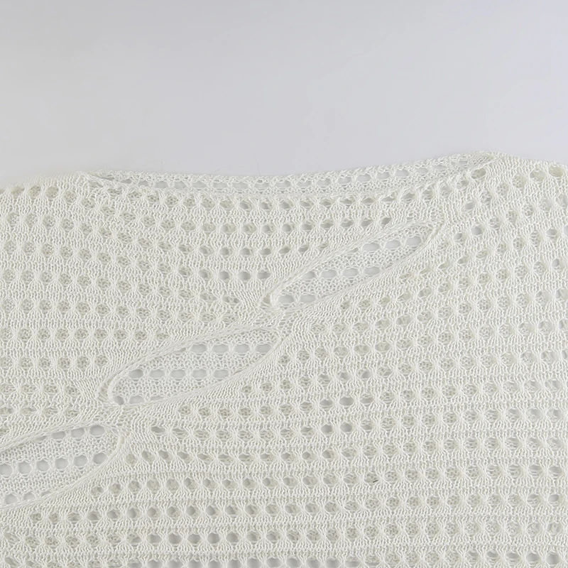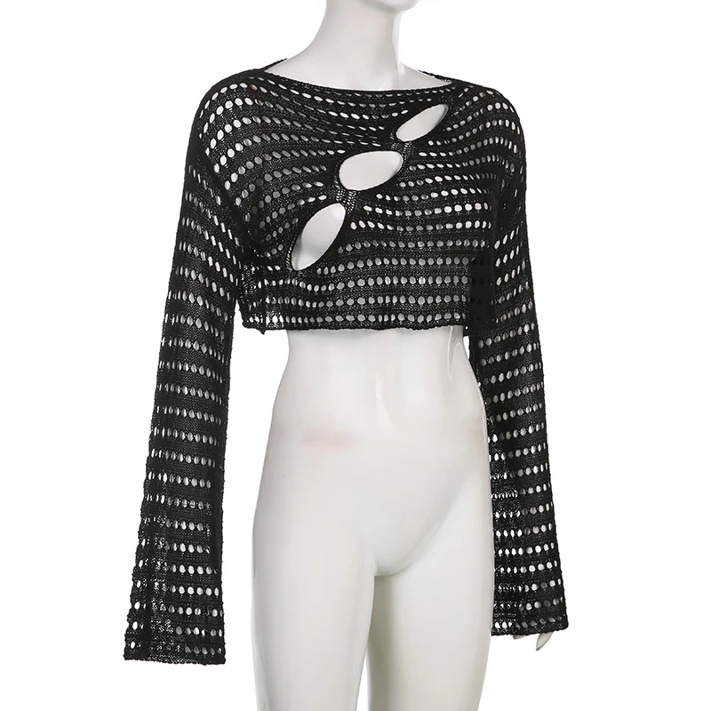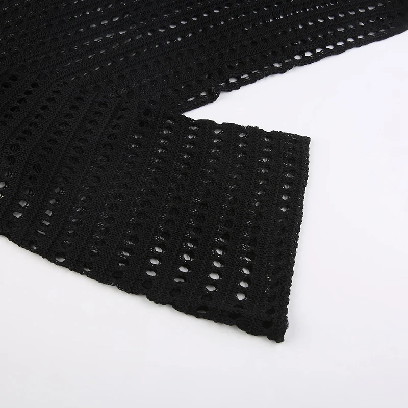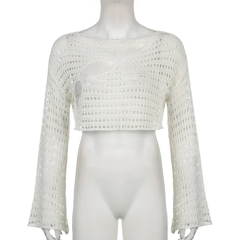 Fairycore Beach Holidays Knit Crochet Smock Summer Pullover Tops Flare Sleeve Casual T shirt Women Hollow Out Outfits