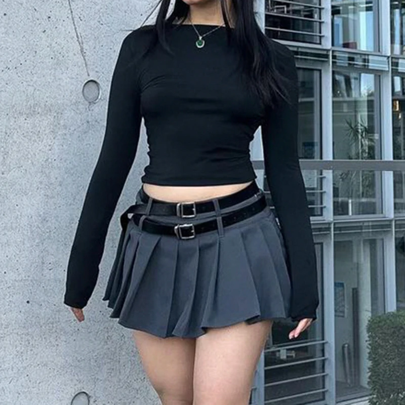 Fashion Design Off Shoulder Tshirts Women Crop Top Basic Tight Solid Sexy Autumn Tee Shirt Cut Out Party Clubwear New