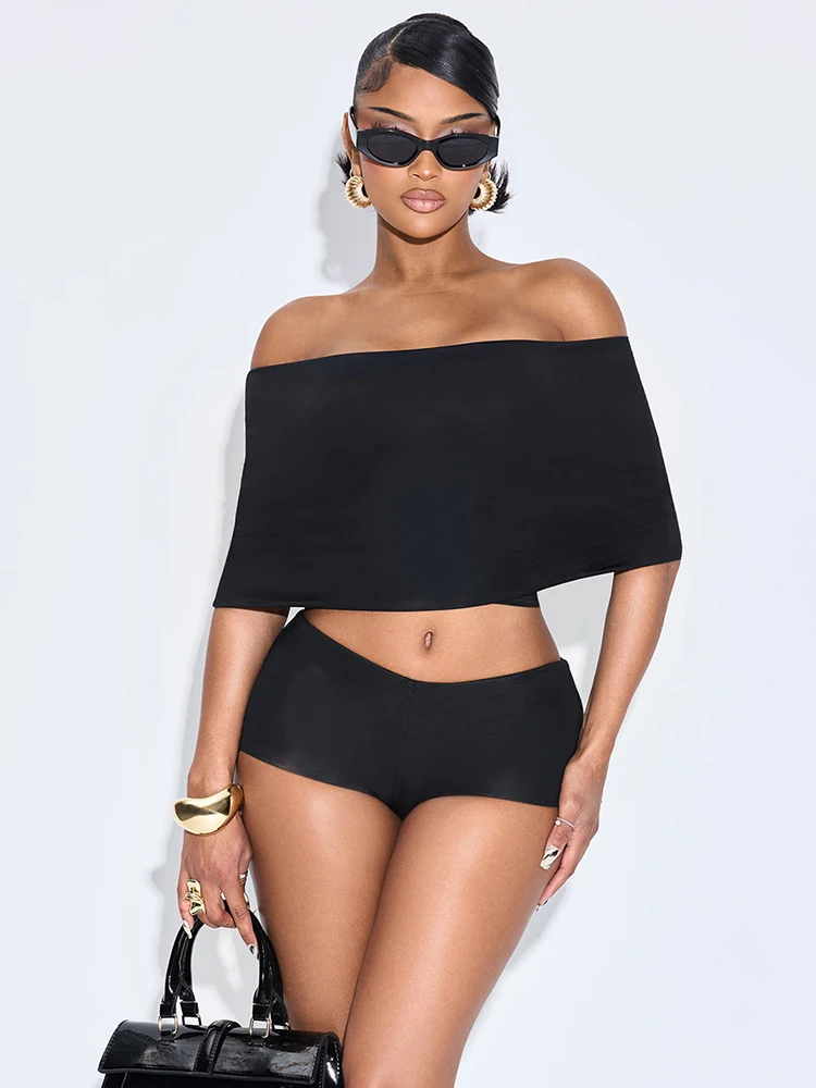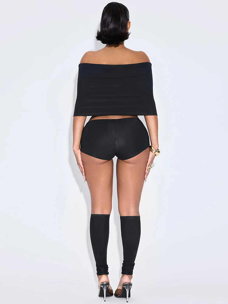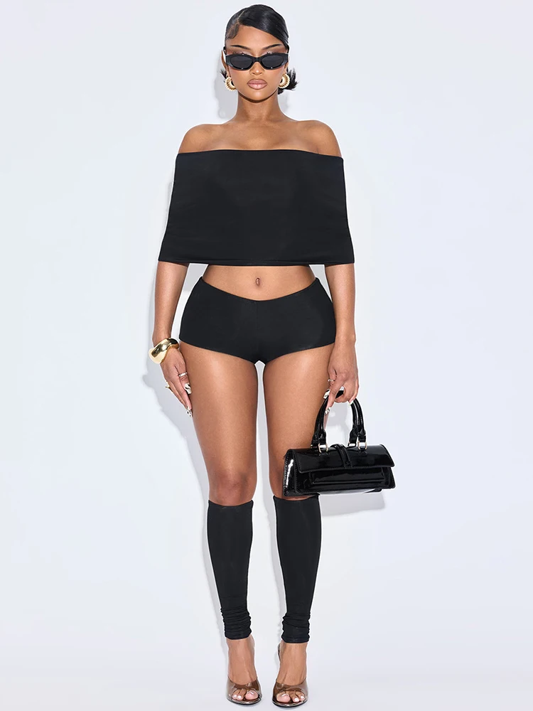 Fashion Hipster 3 Piece Set Women Slash Neck Mid Sleeve Crop Tops+Shorts+Foot Cover Simple Summer Matching Streetwear