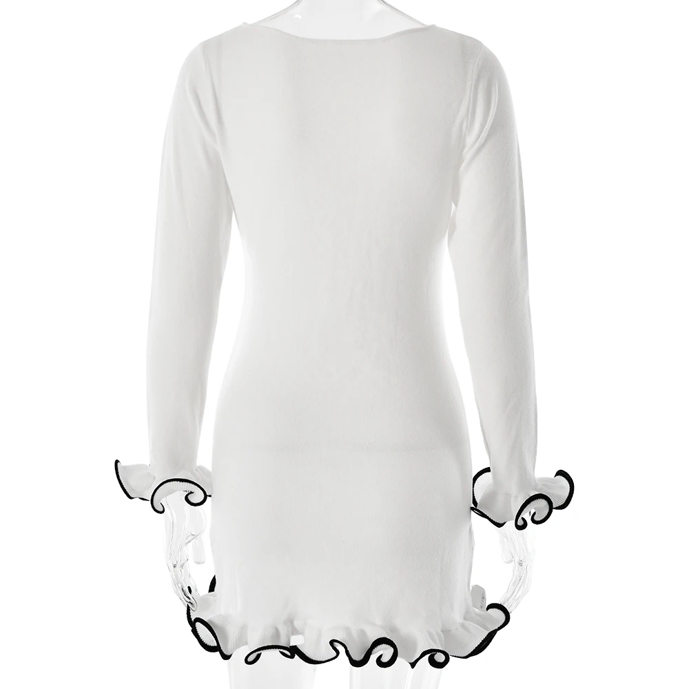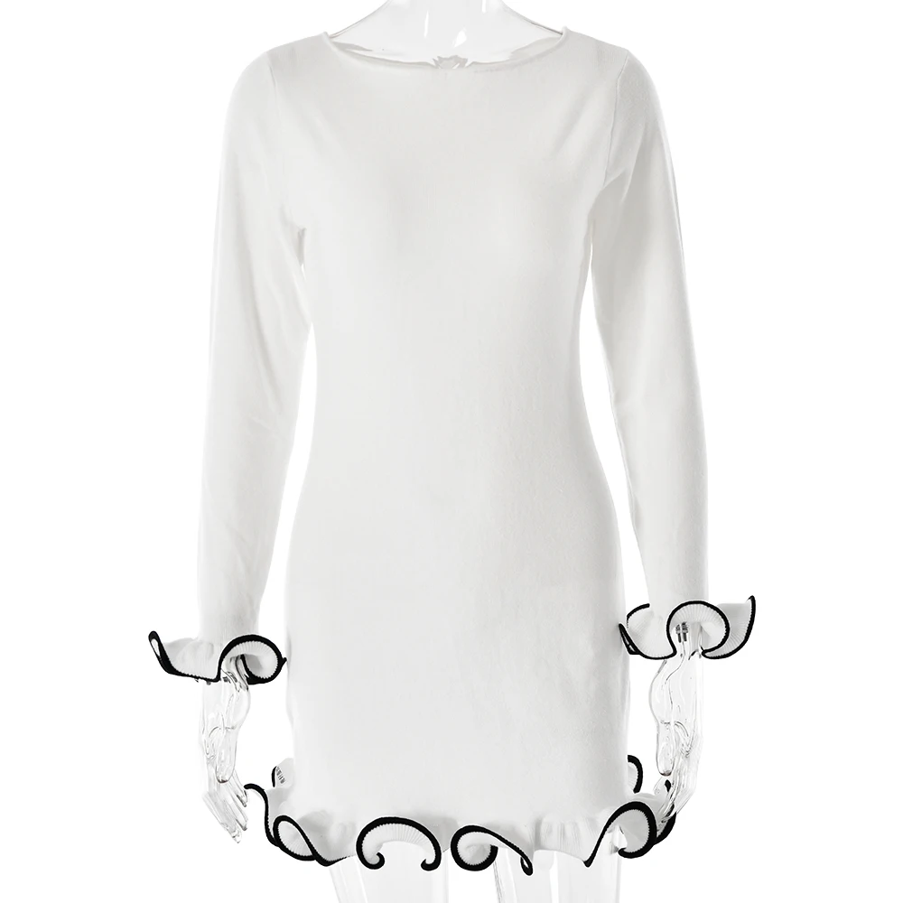 Fashion Knitted Sweater Long Sleeve Elastic Tight Dress Women Bodycon Skirt Female Autumn/Winter New Street Clothing