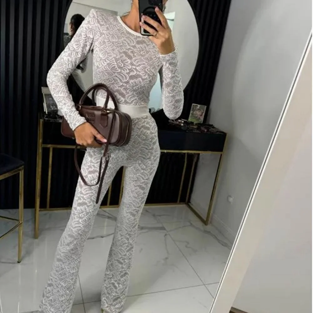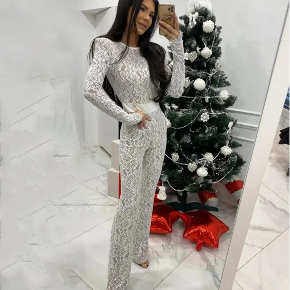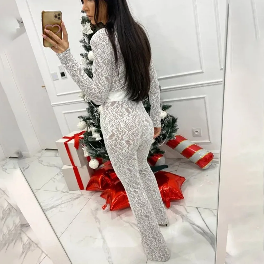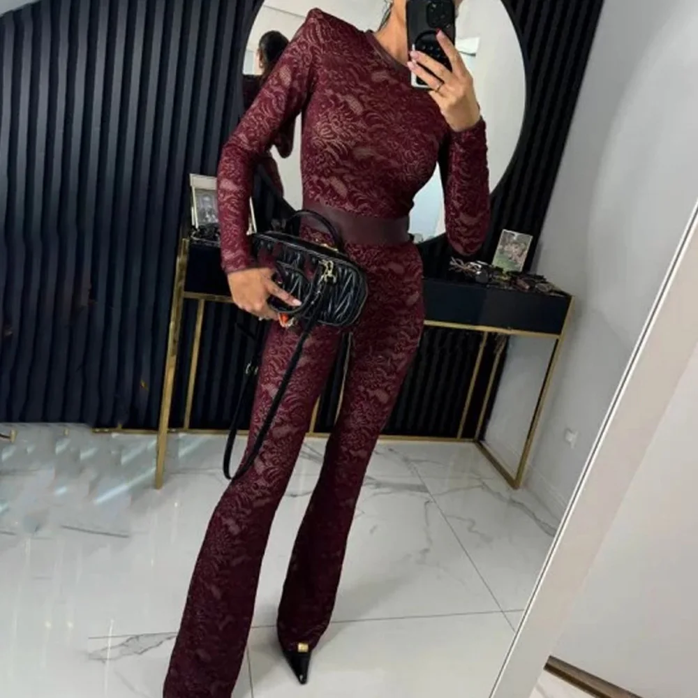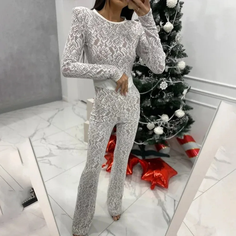 Fashion Lace Leather Patchwork Long Sleeved Jumpsuit Women's 2025 Autumn/Winter Sexy Patchwork New Elastic Tight Rompers