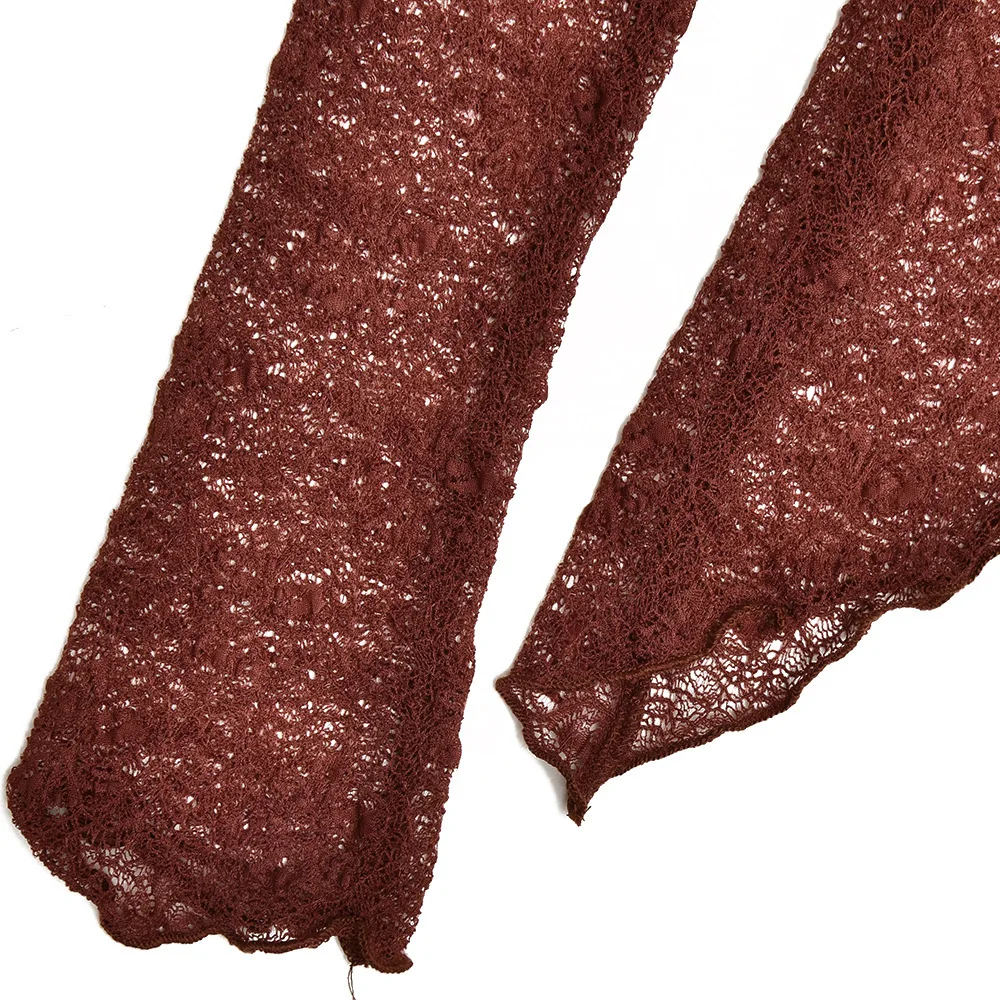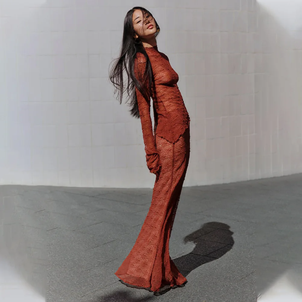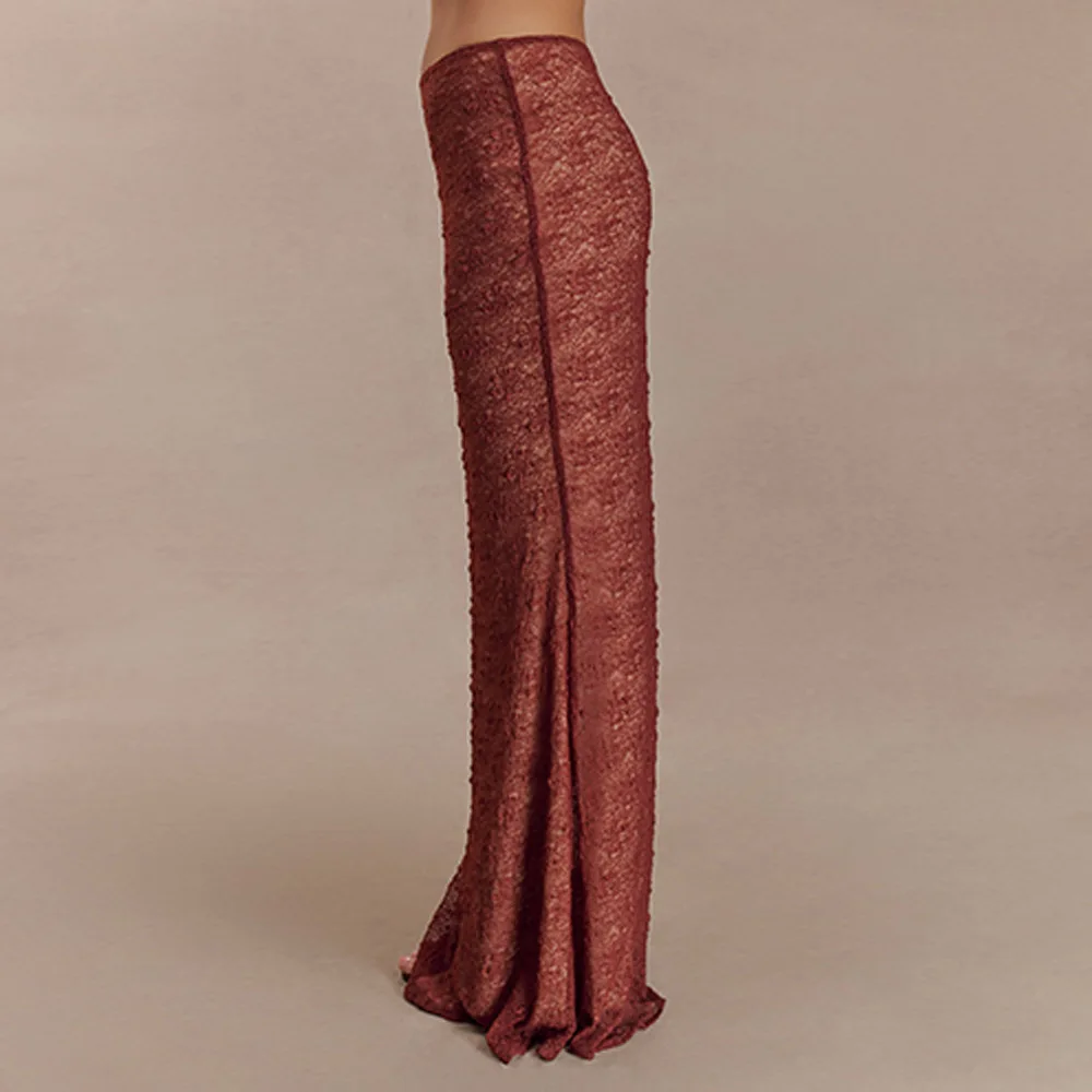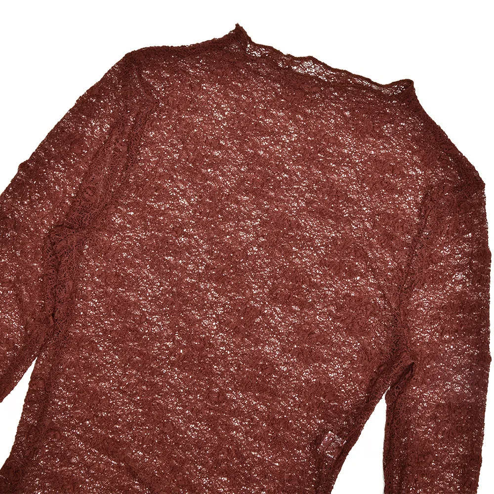 Fashion Lace Long Sleeved Round Neck Top Skirt Two-piece Set For Women 2024 Autumn Winter New Transparent T-shirt Set