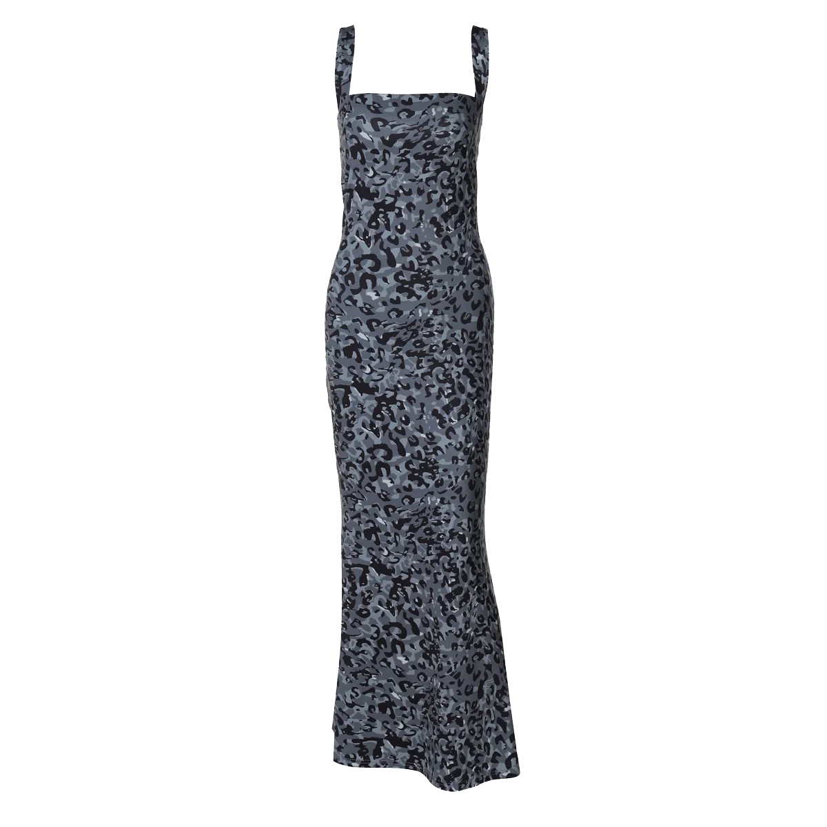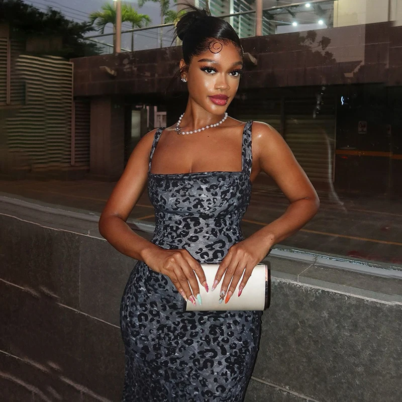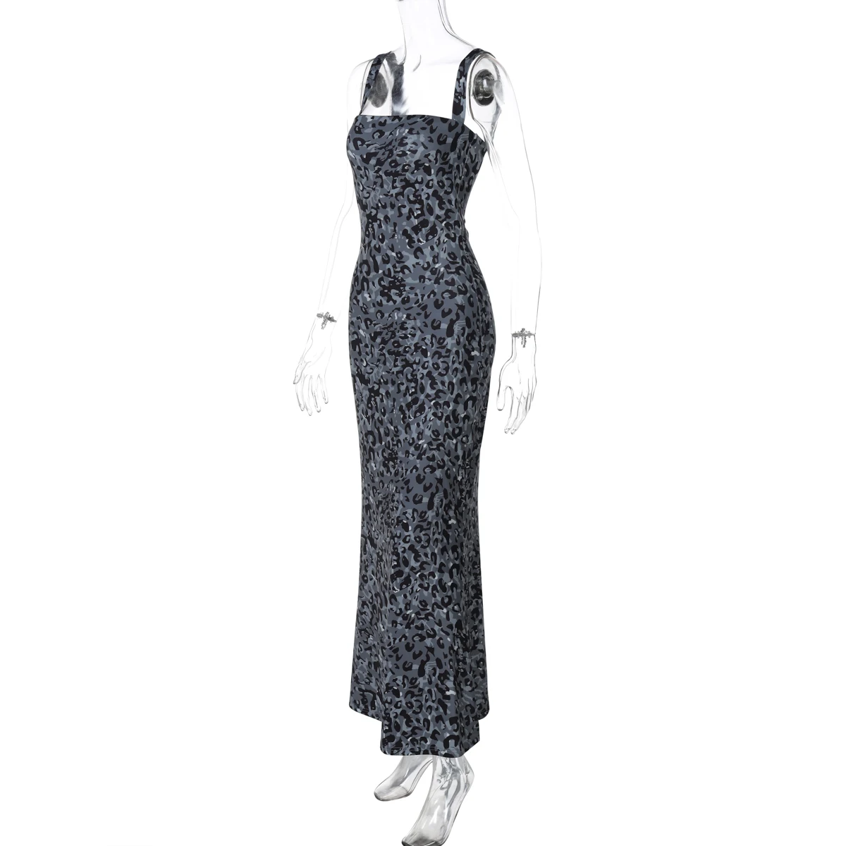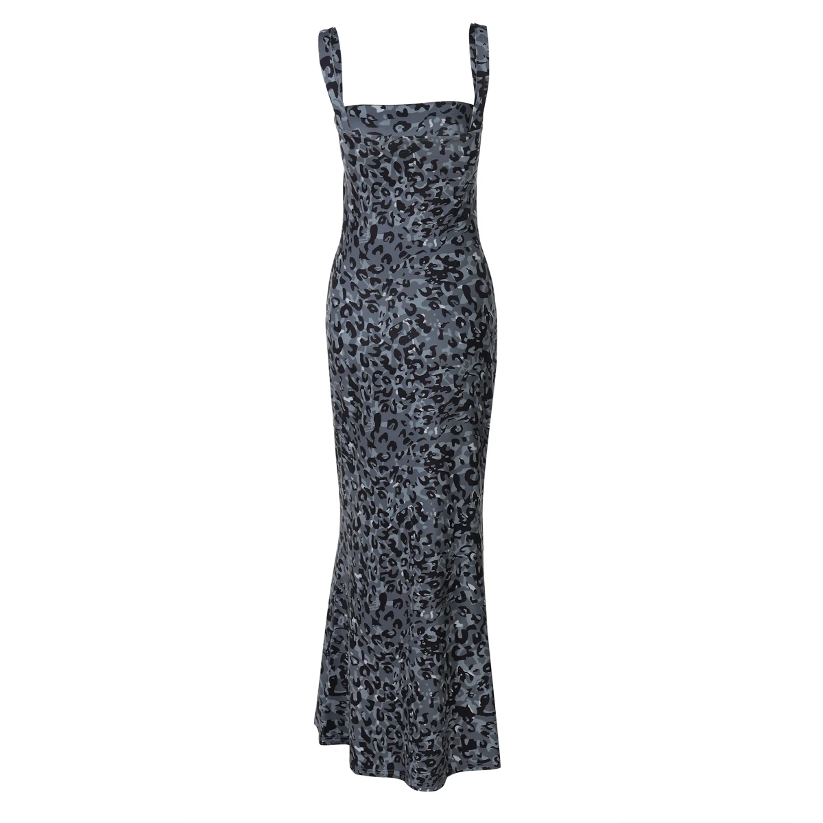 Fashion Leopard Print Straps Backless Sexy Bodycon Maxi Prom Dress Summer Women Casual Clothes Evening Party Vacation