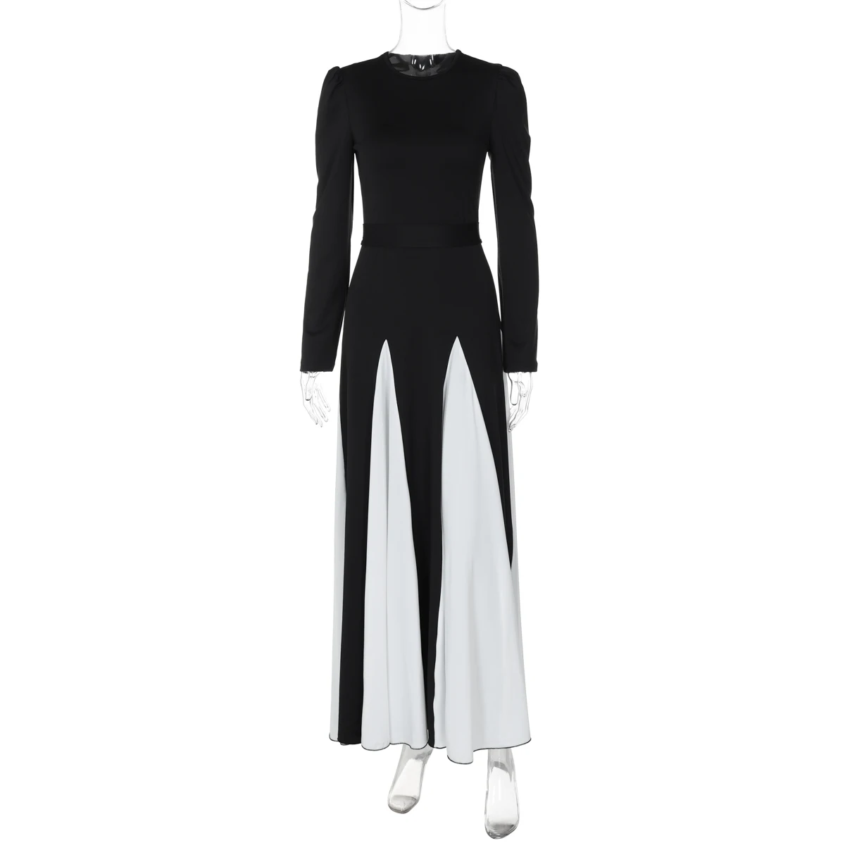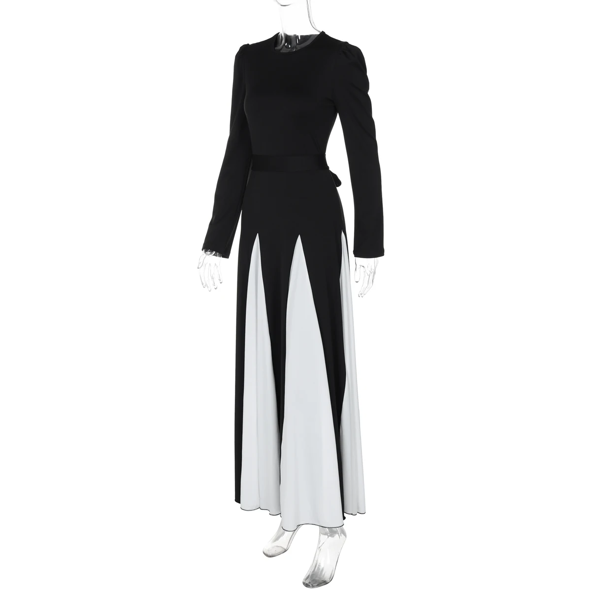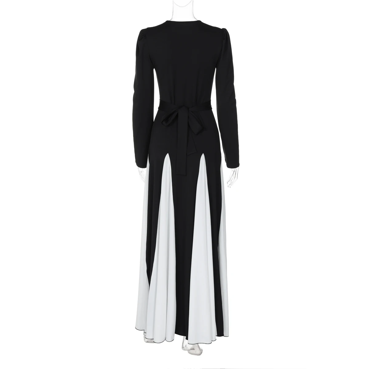Fashion Long Sleeve Patchwork Bandage Sexy Slim Maxi Dress Fall Winter Women Y2K Outfits Streetwear Party Vacation