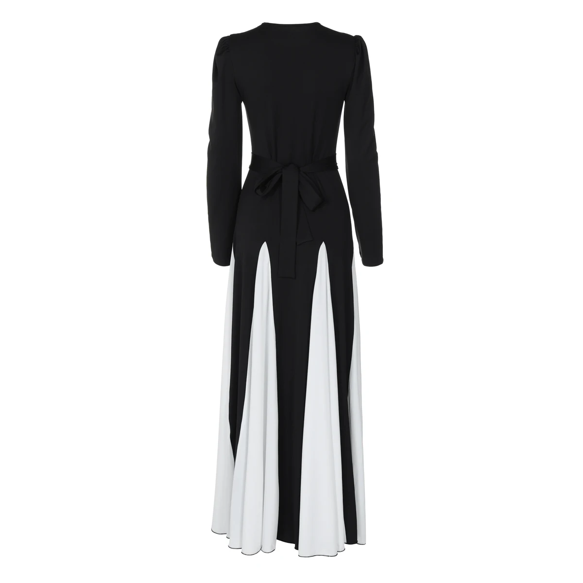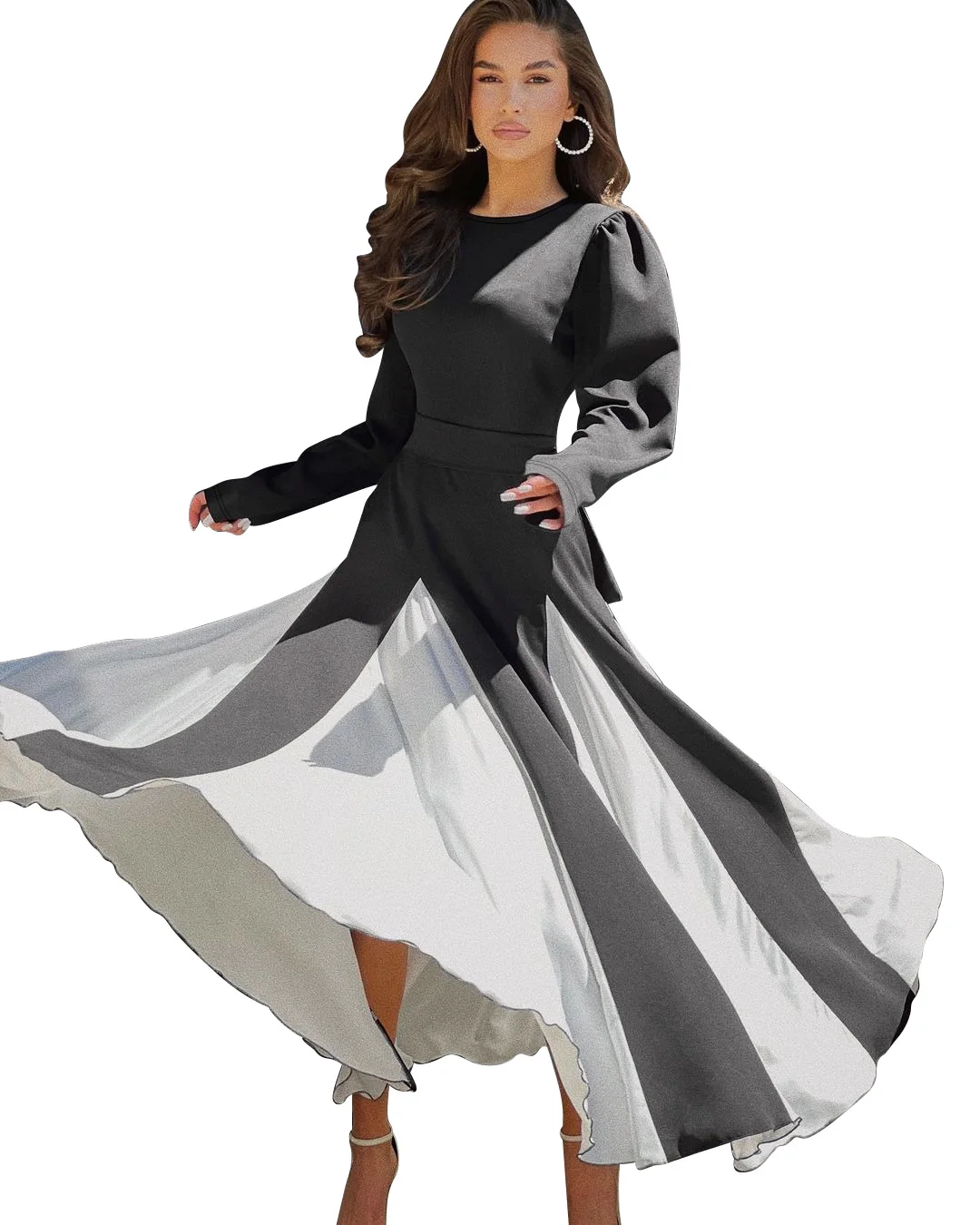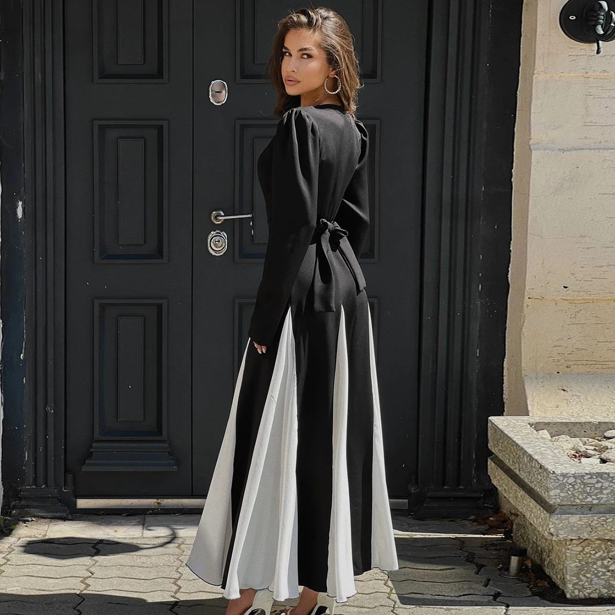 Fashion Long Sleeve Patchwork Bandage Sexy Slim Maxi Dress Fall Winter Women Y2K Outfits Streetwear Party Vacation